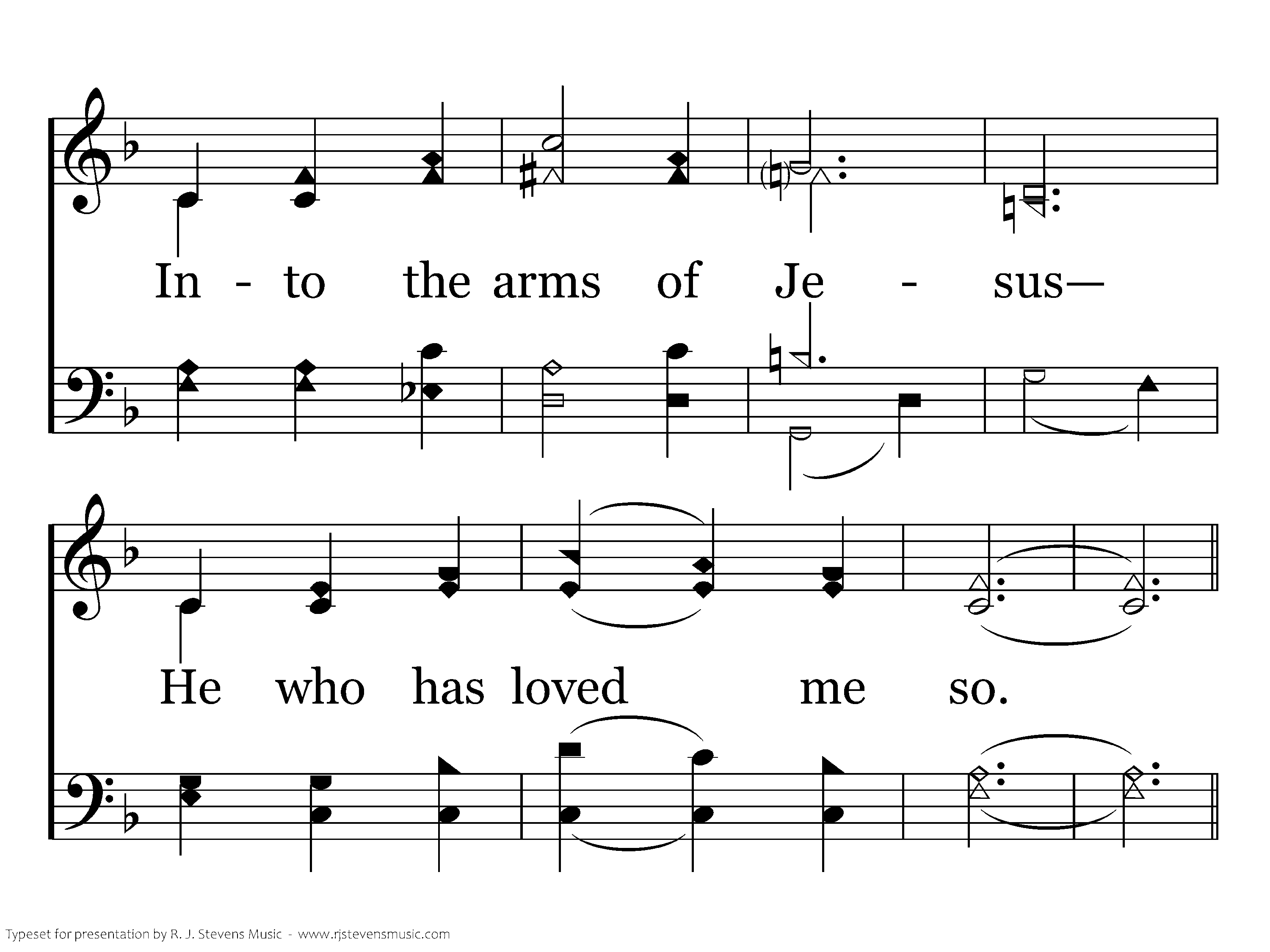 Over the sunset mountains Someday I'll softly go, Into the arms of Jesus He who has loved me so.
