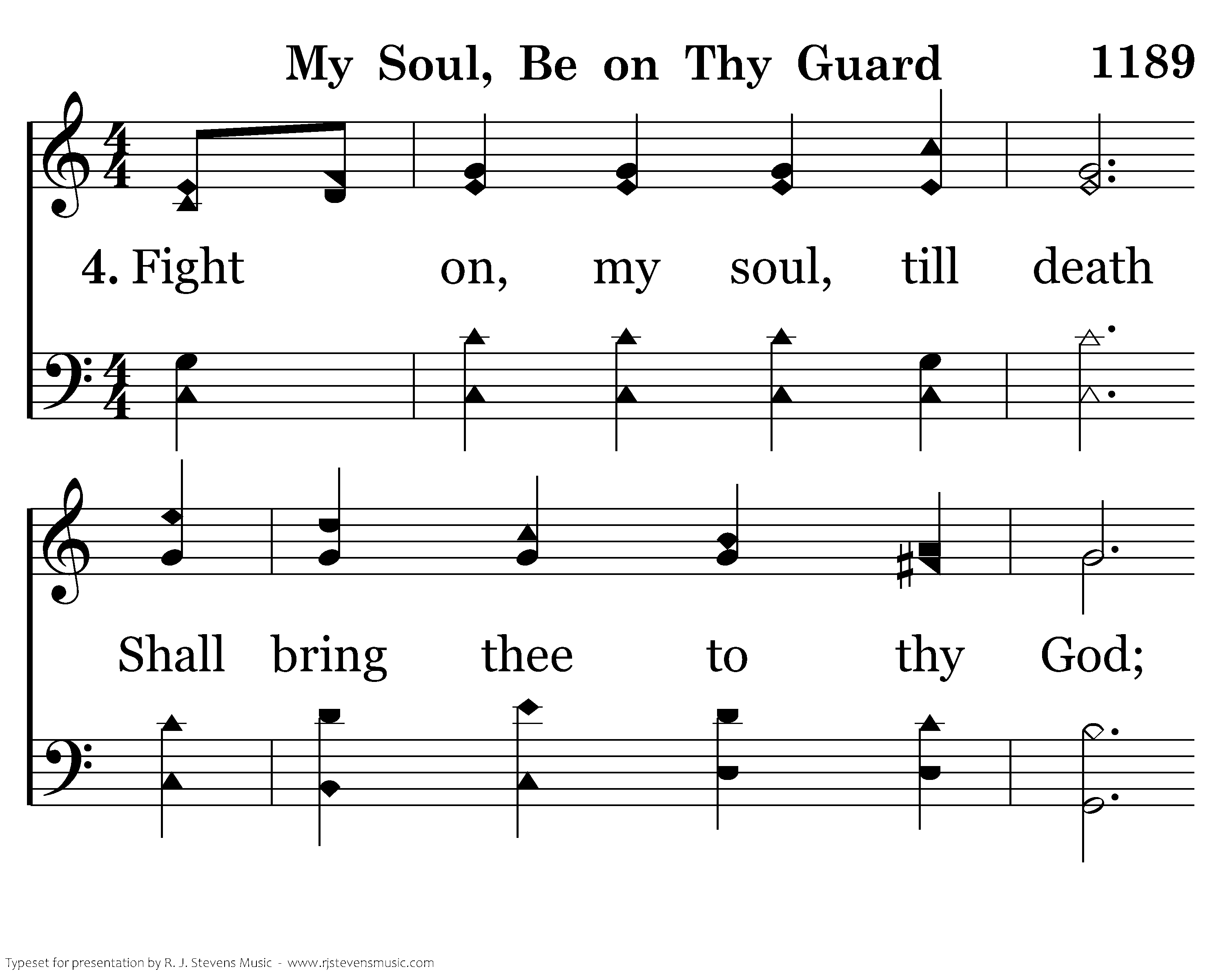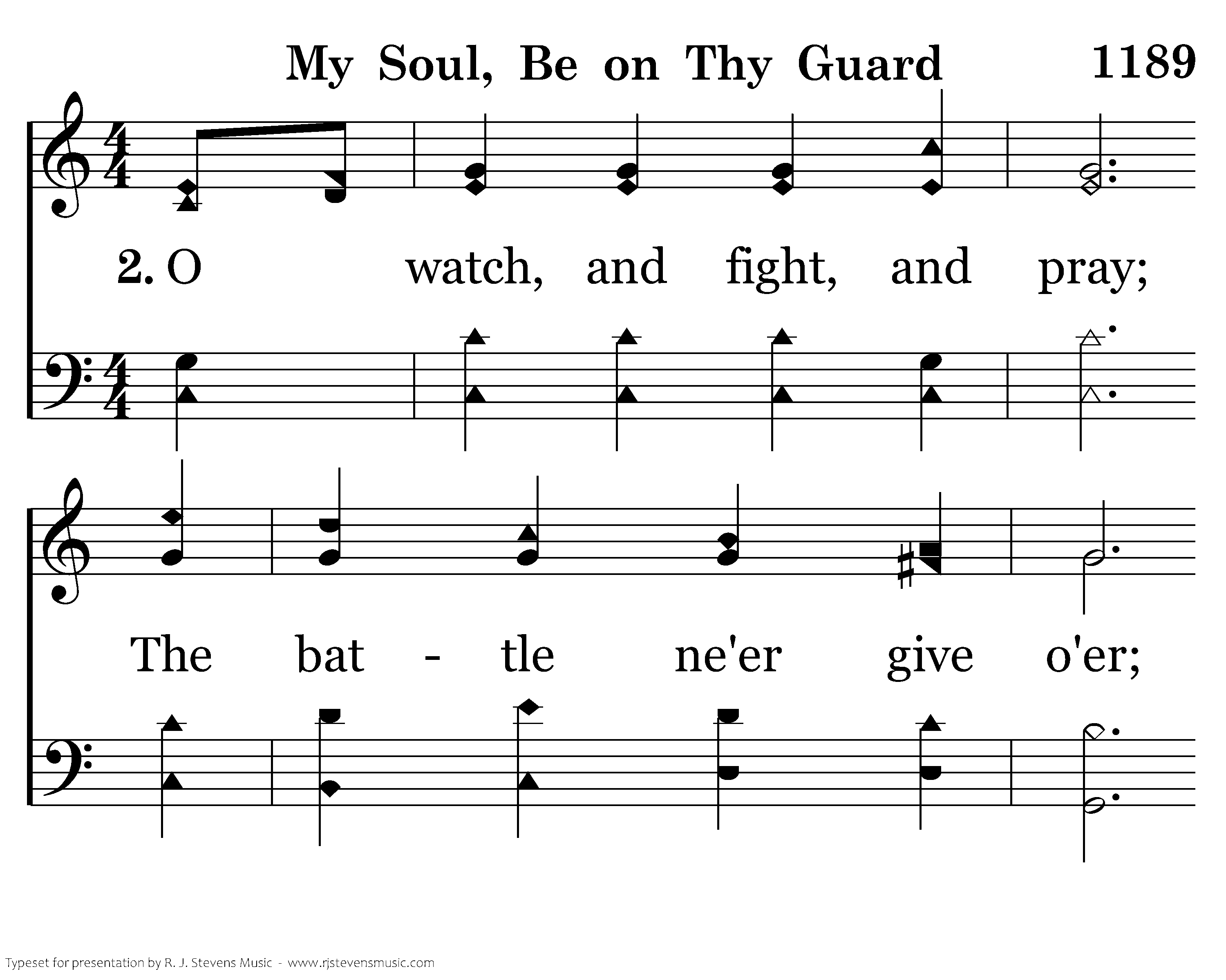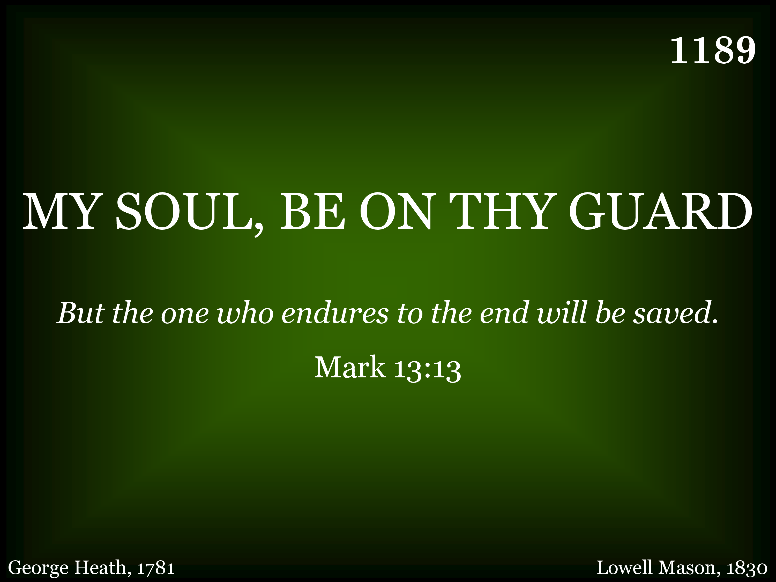 My soul, be on thy guard; Ten thousand foes arise; The hosts of sin are pressing hard To draw thee from the skies.