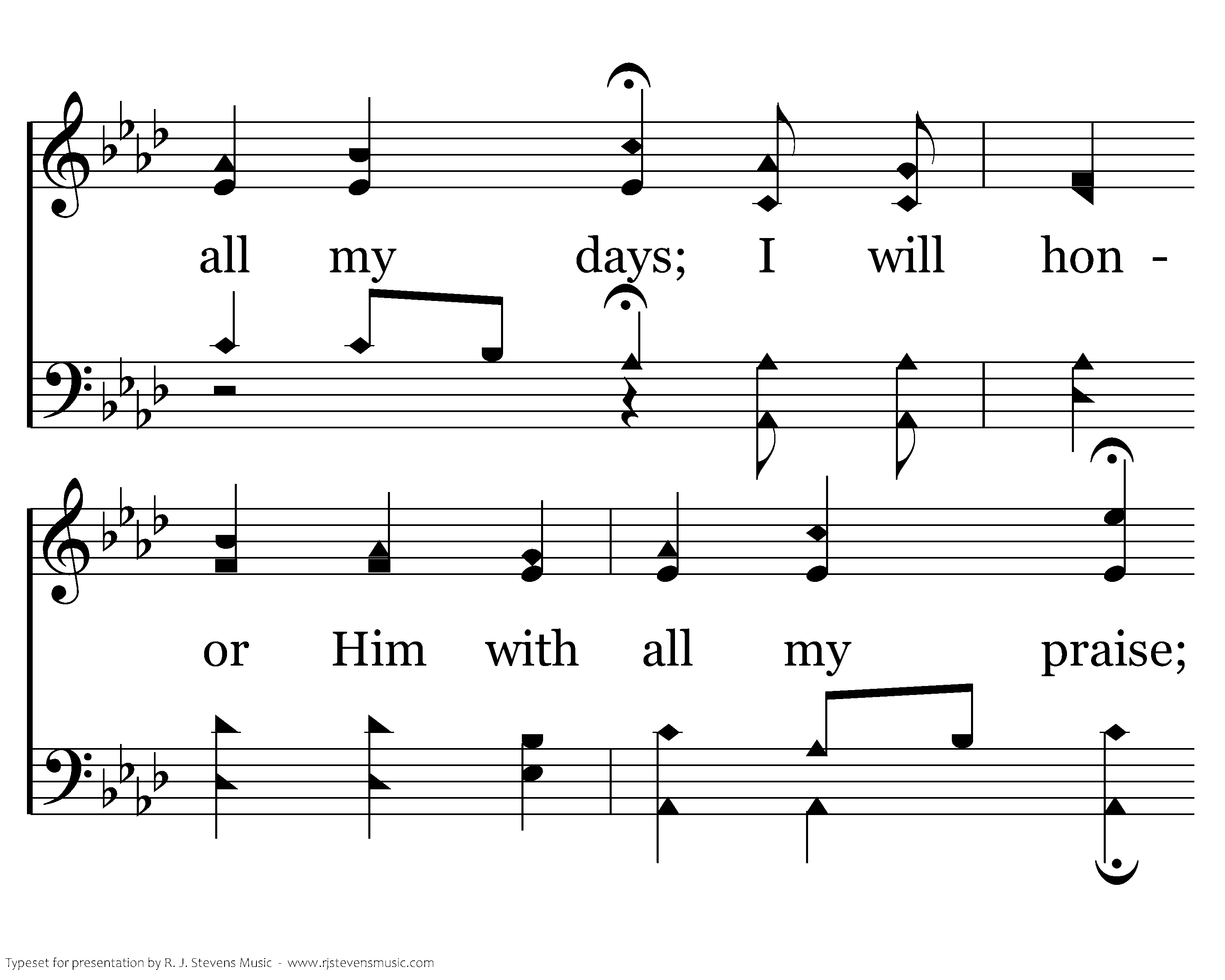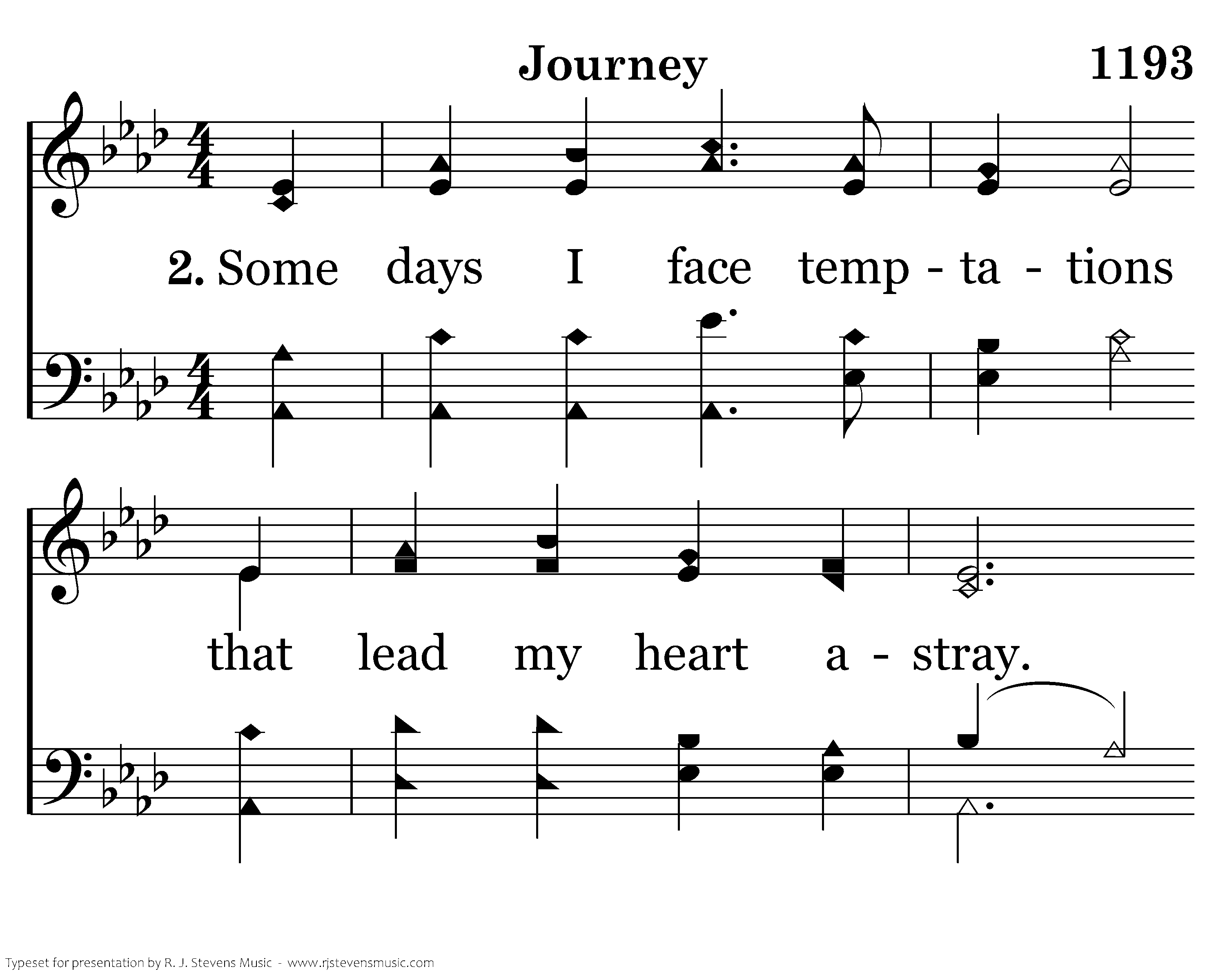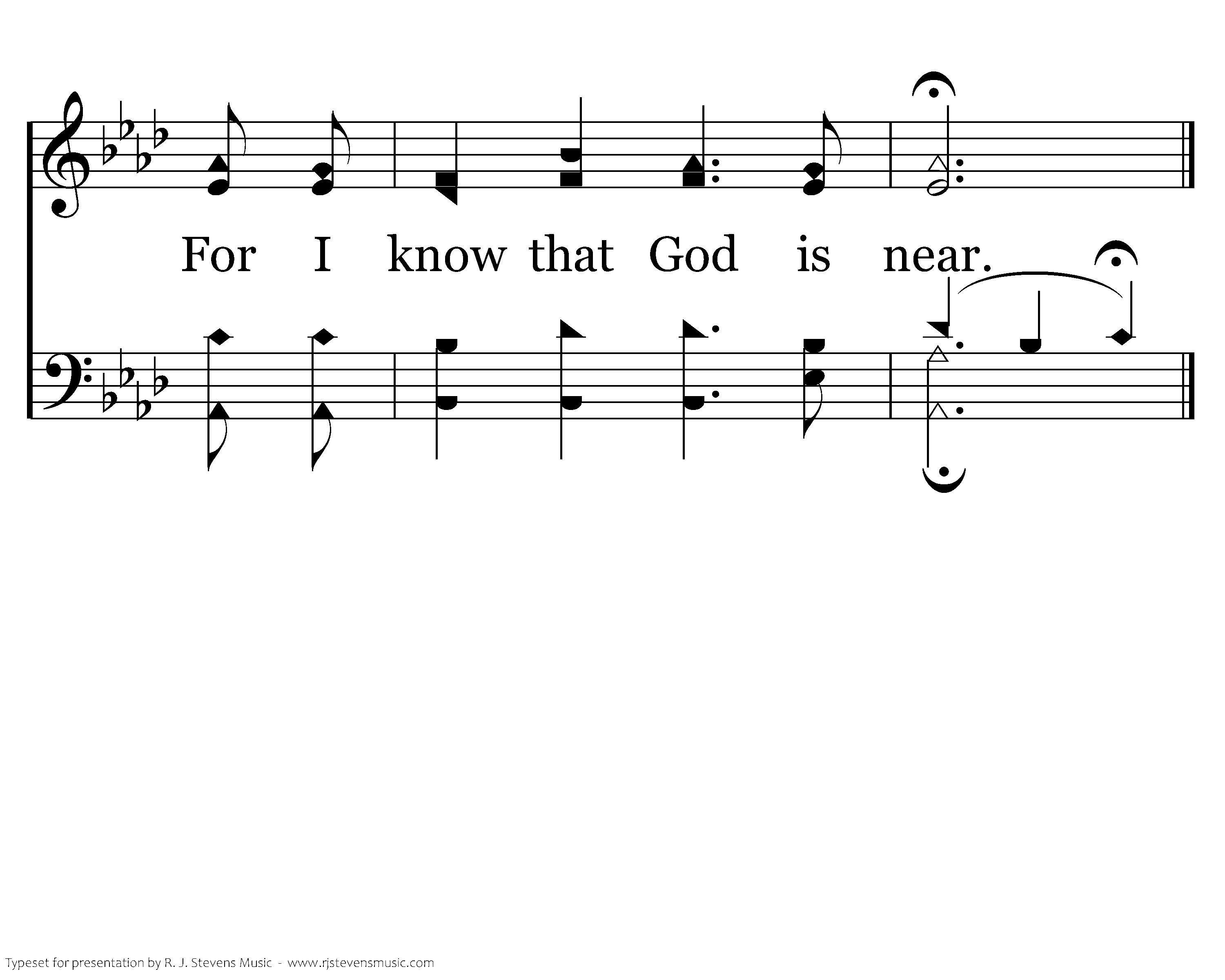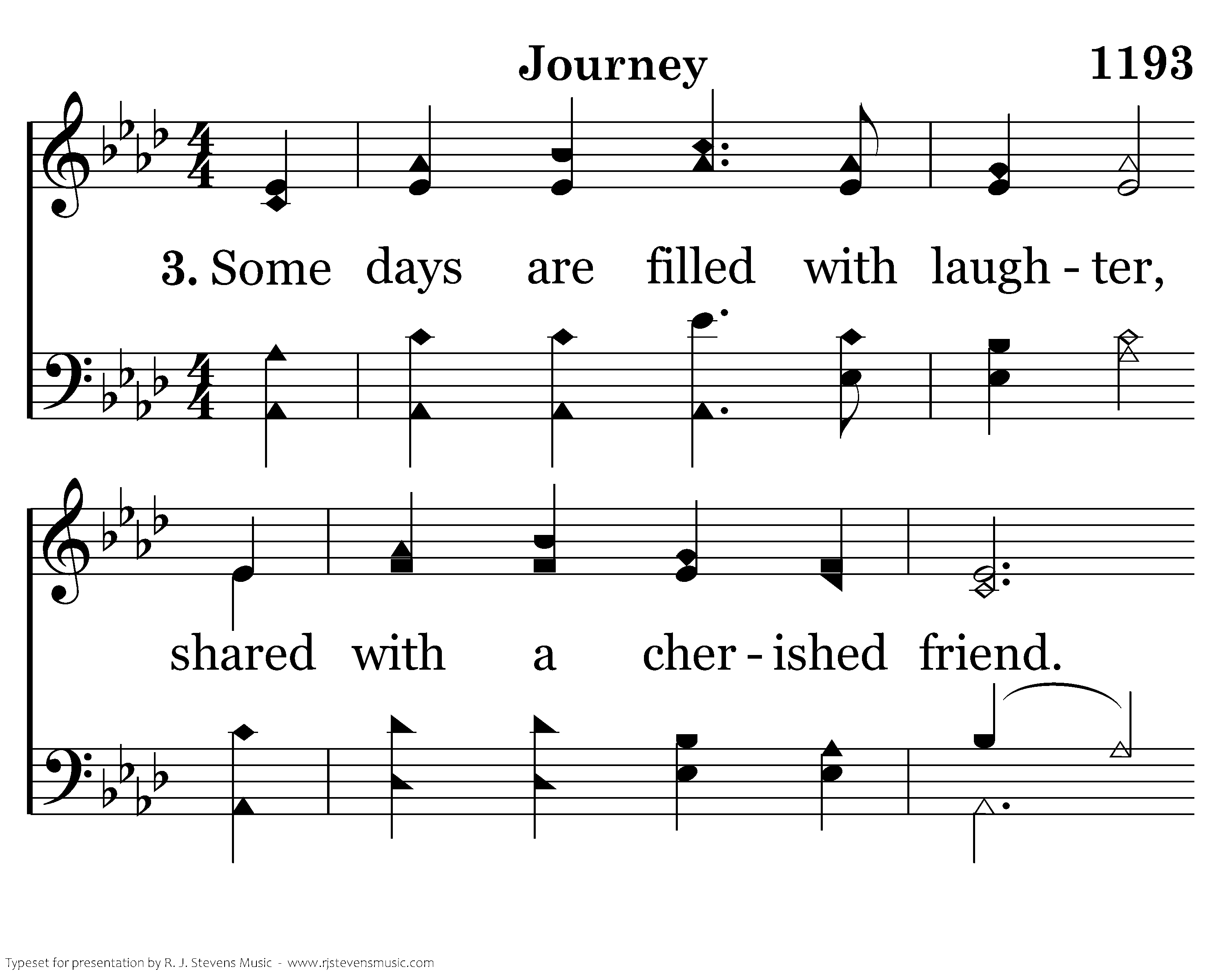 My life is like a journey that calls me to embark. Each day might pass thru sunlight, or lead where paths are dark. And tho' I walk the valley where shades of death appear, I will fear no harm from force or foe; I will lie down where green pastures grow; I will rest where gentle waters flow; For I know that God is near.