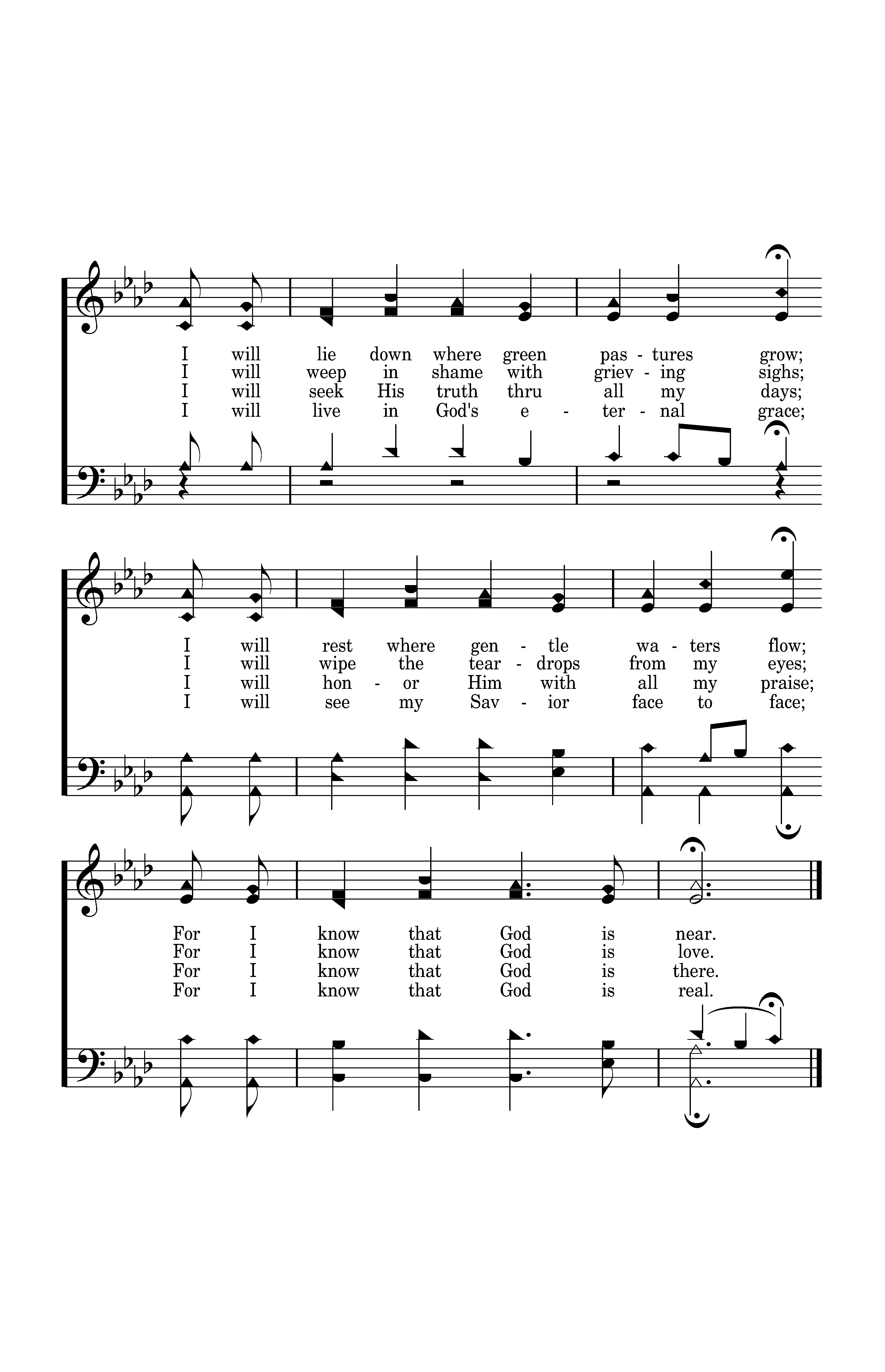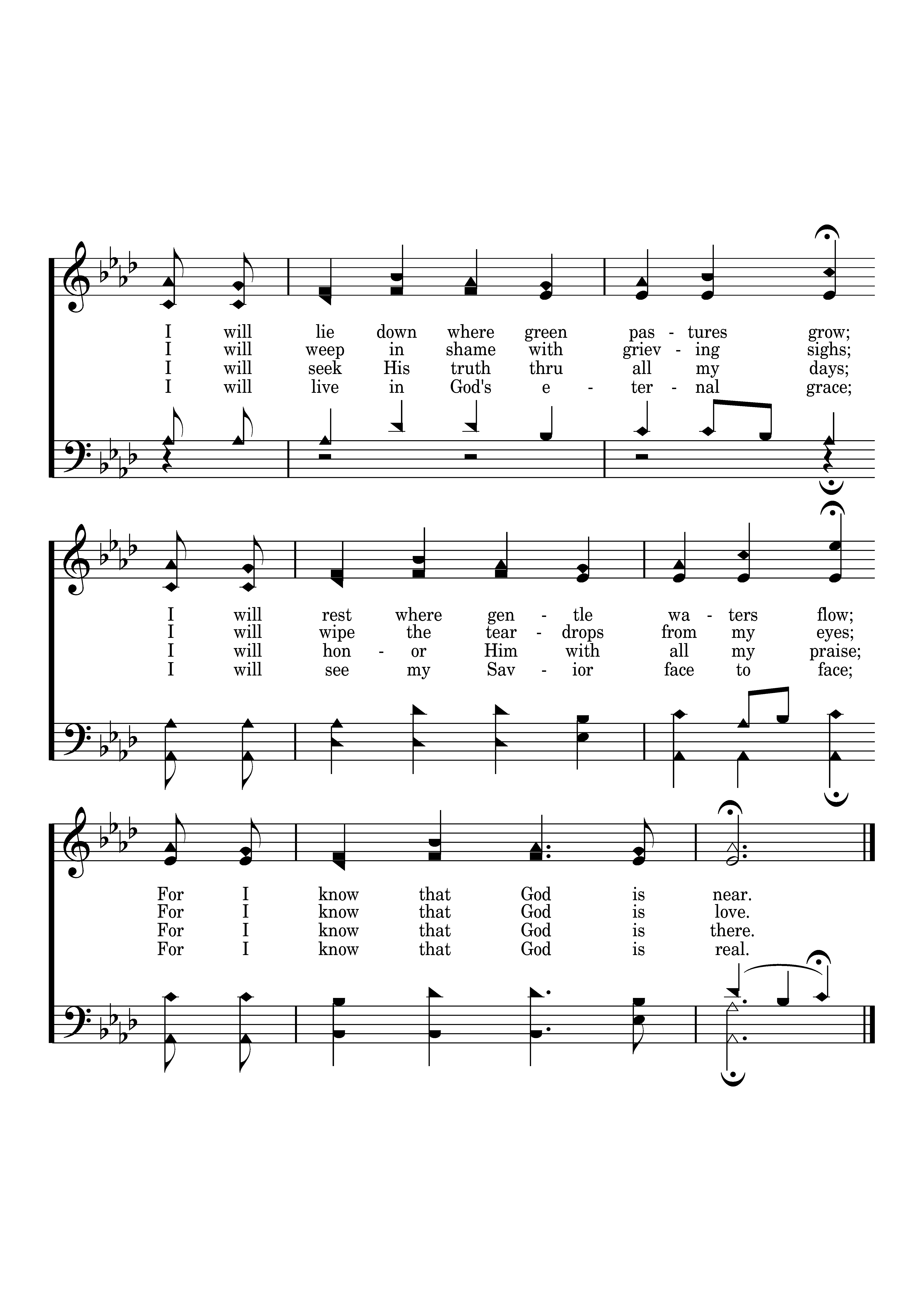 Some days bring ease and comfort, with pleasures sweet and dear. Then suffering or sickness will bring a mournful tear. But when my journey's over, its ending will reveal: I will pass on to my resting place; I will live in God's eternal grace; I will see my Savior face to face; For I know that God is real.