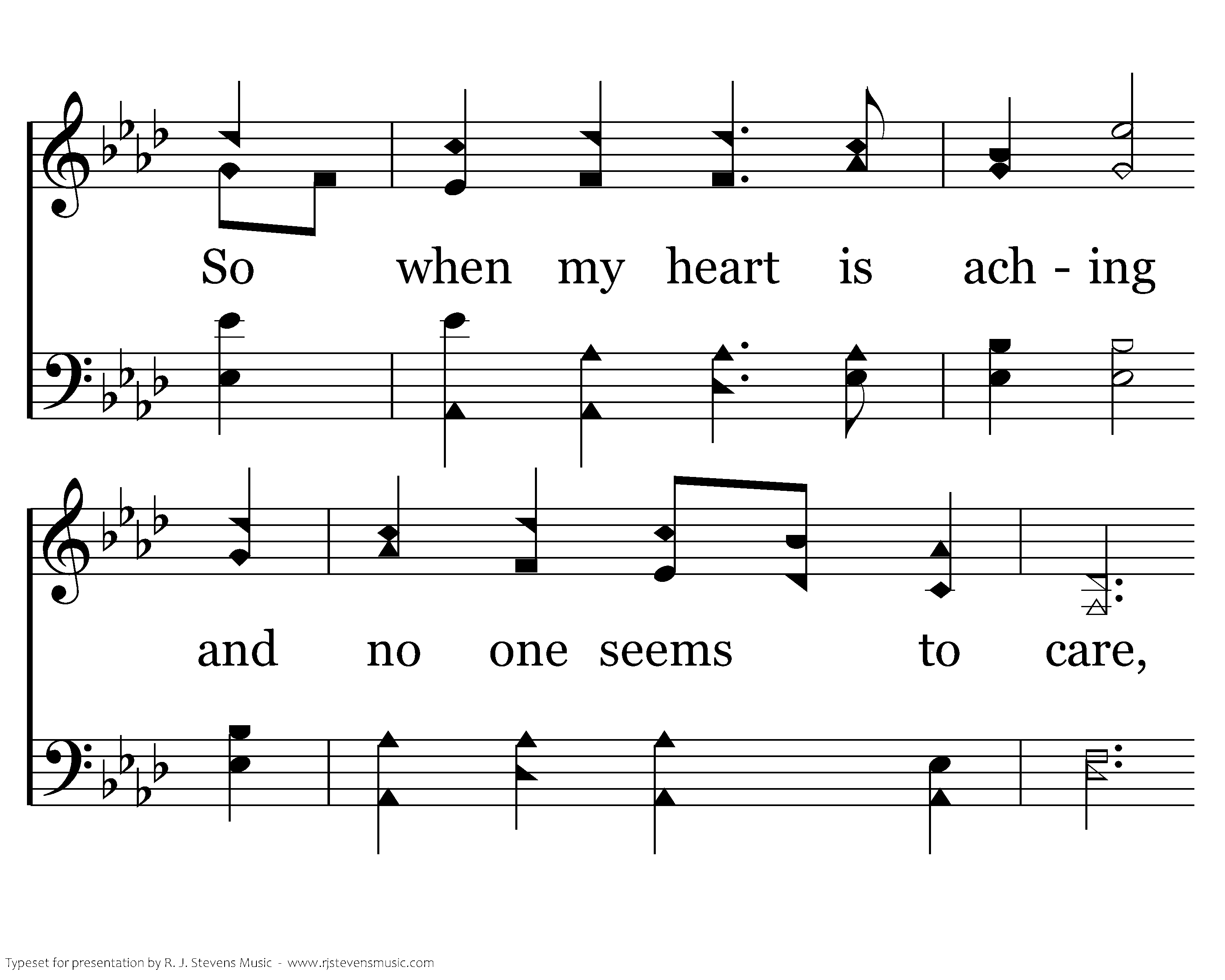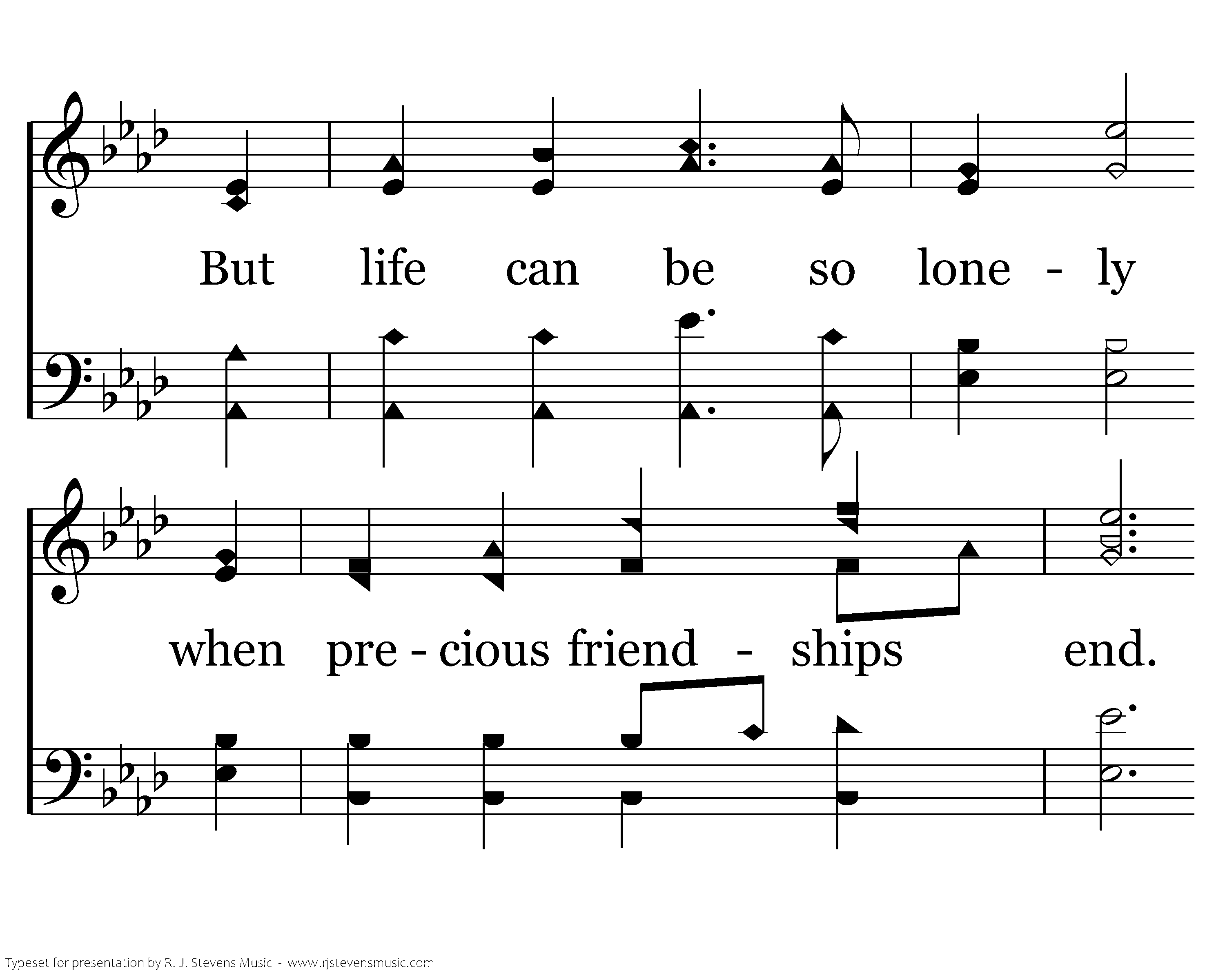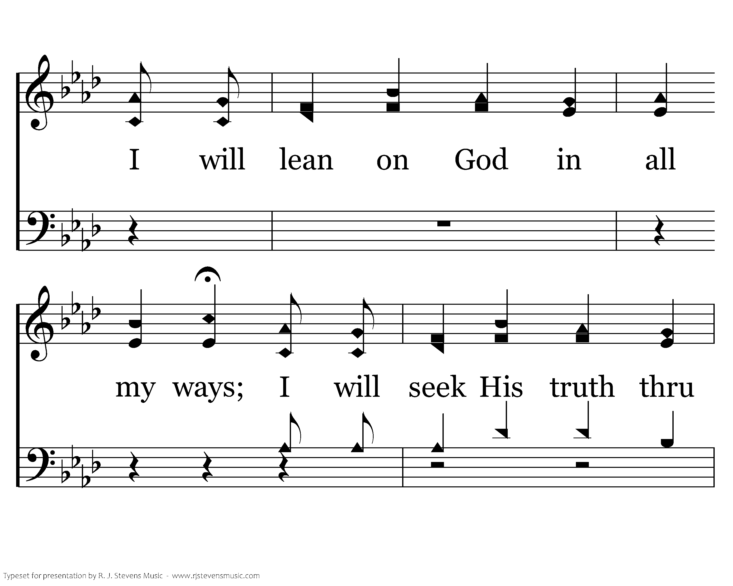 Some days are filled with laughter, shared with a cherished friend. But life can be so lonely when precious friendships end. So when my heart is aching and no one seems to care, I will lean on God in all my ways; I will seek His truth thru all my days; I will honor Him with all my praise; For I know that God is there.