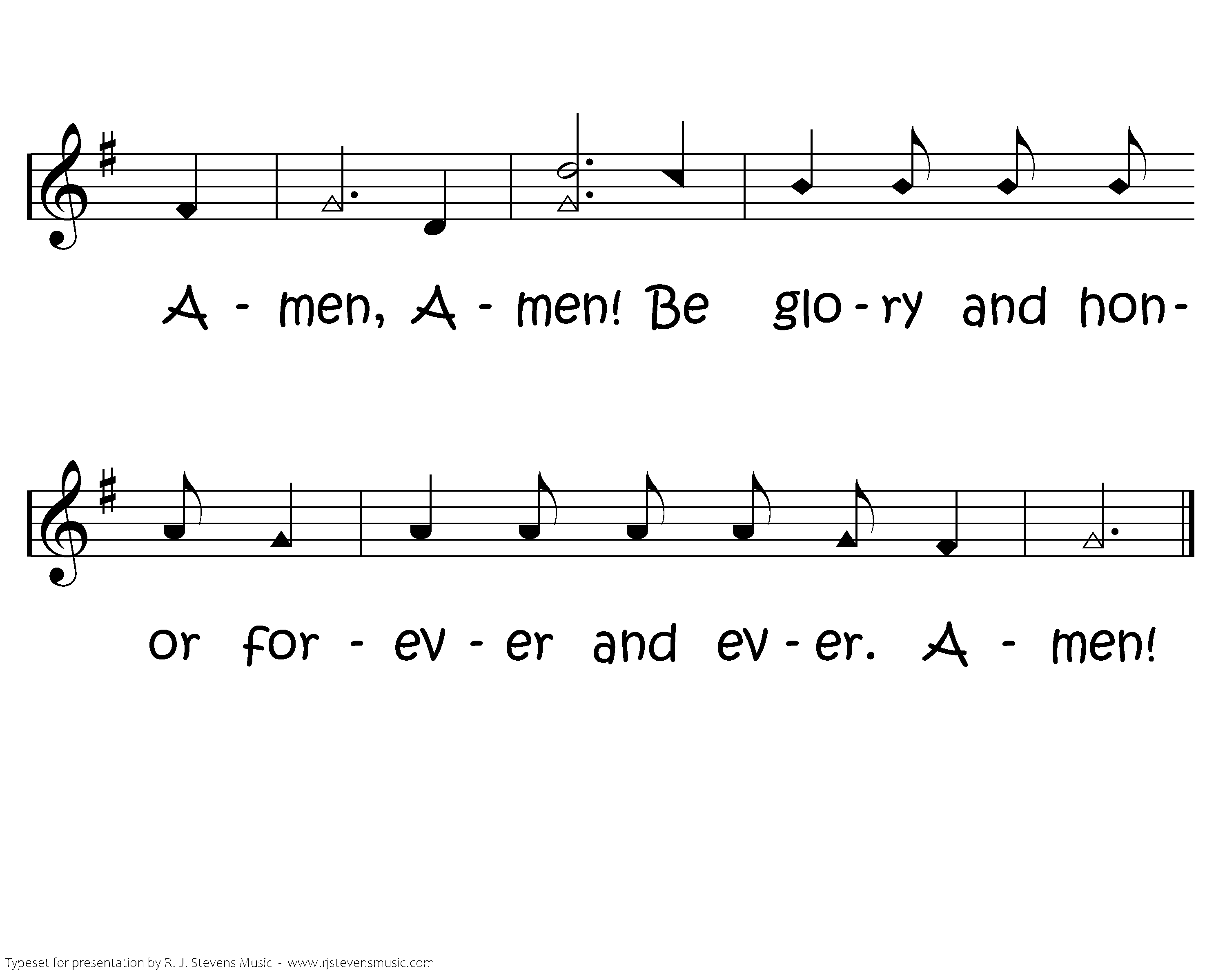 Now unto the King eternal, immortal, invisible; The only wise God: Be glory and honor forever and ever. Amen, Amen! Be glory and honor forever and ever. Amen!