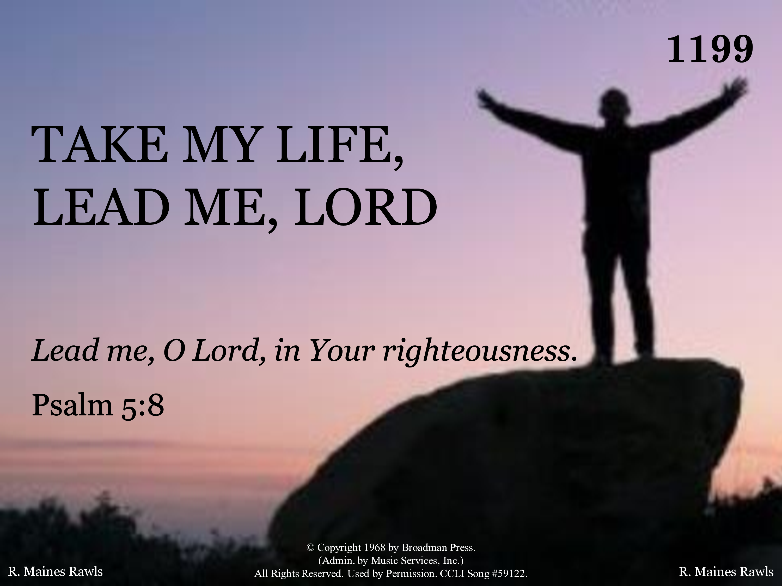 - Copyright © 1968 Broadman Press. (Admin. by Music Services, Inc.) All Rights Reserved. Used by Permission.