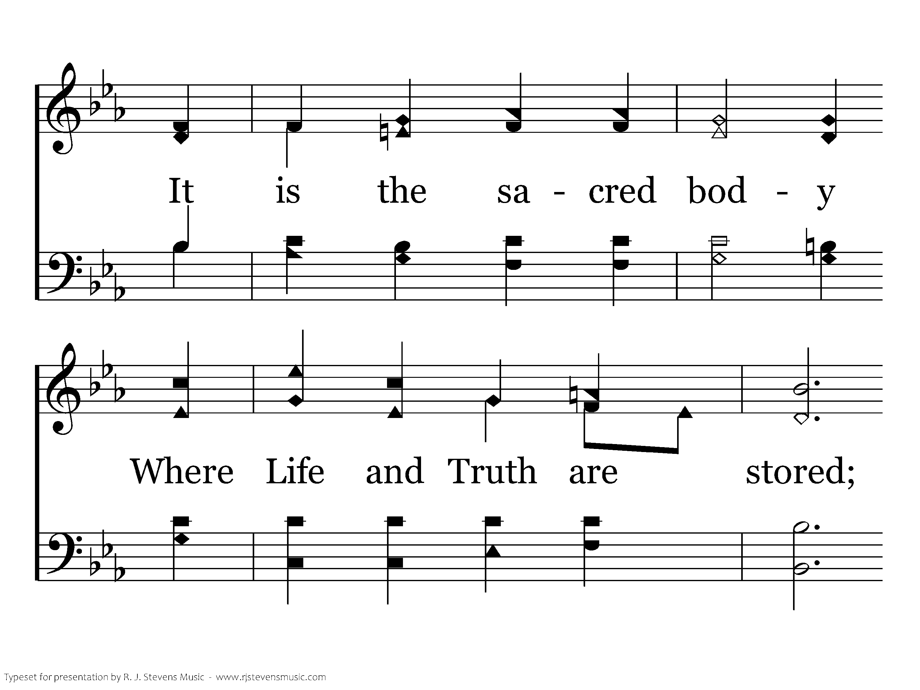The church from Thee, her Master, Received the gift divine, And still that light she lifteth O'er all the earth to shine: It is the sacred body Where Life and Truth are stored; It is the heav'n drawn picture Of Thee, the living Word.