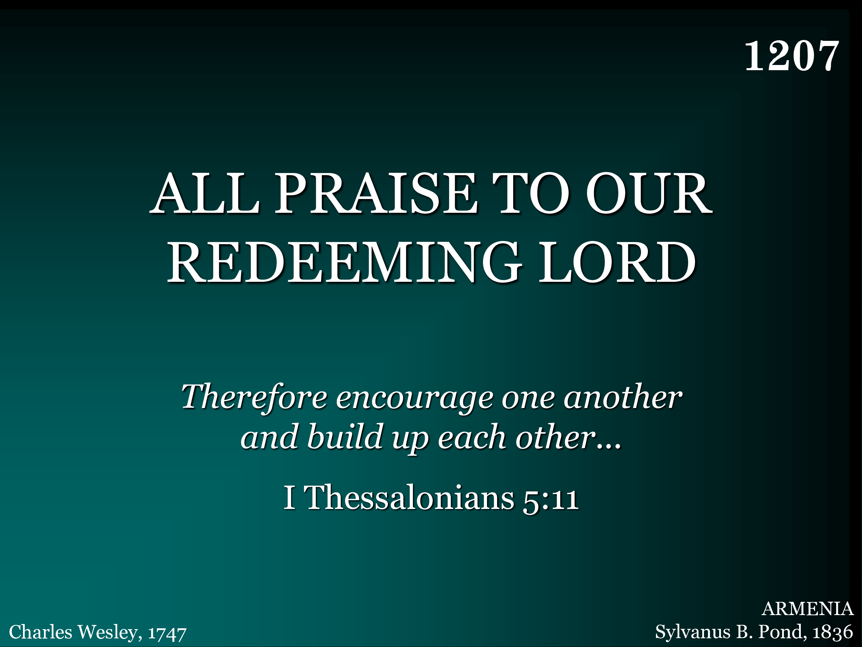 | Title | ALL PRAISE TO OUR REDEEMING LORD |