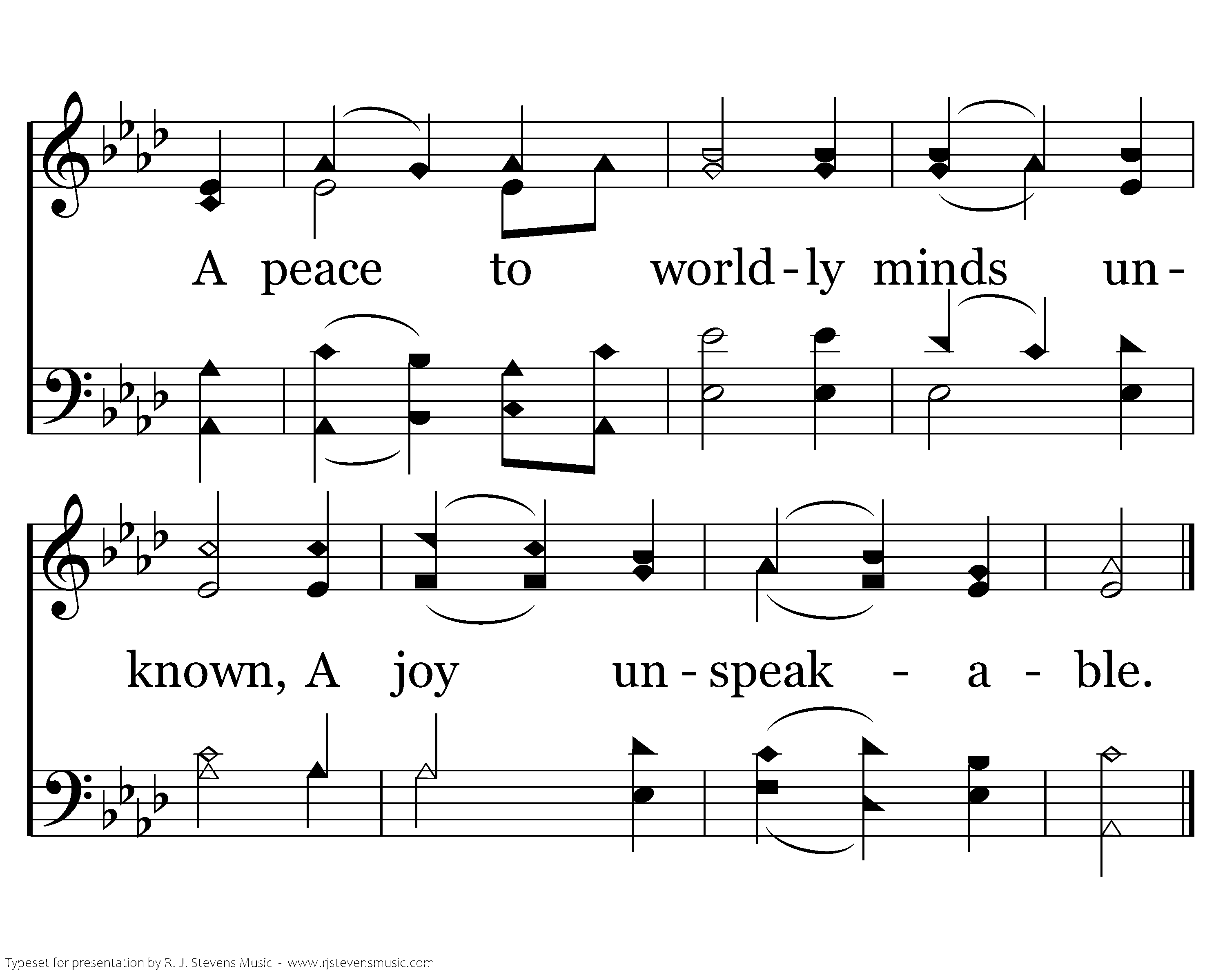 We all partake the joy of one; The common peace we feel: A peace to worldly minds unknown, A joy unspeakable.