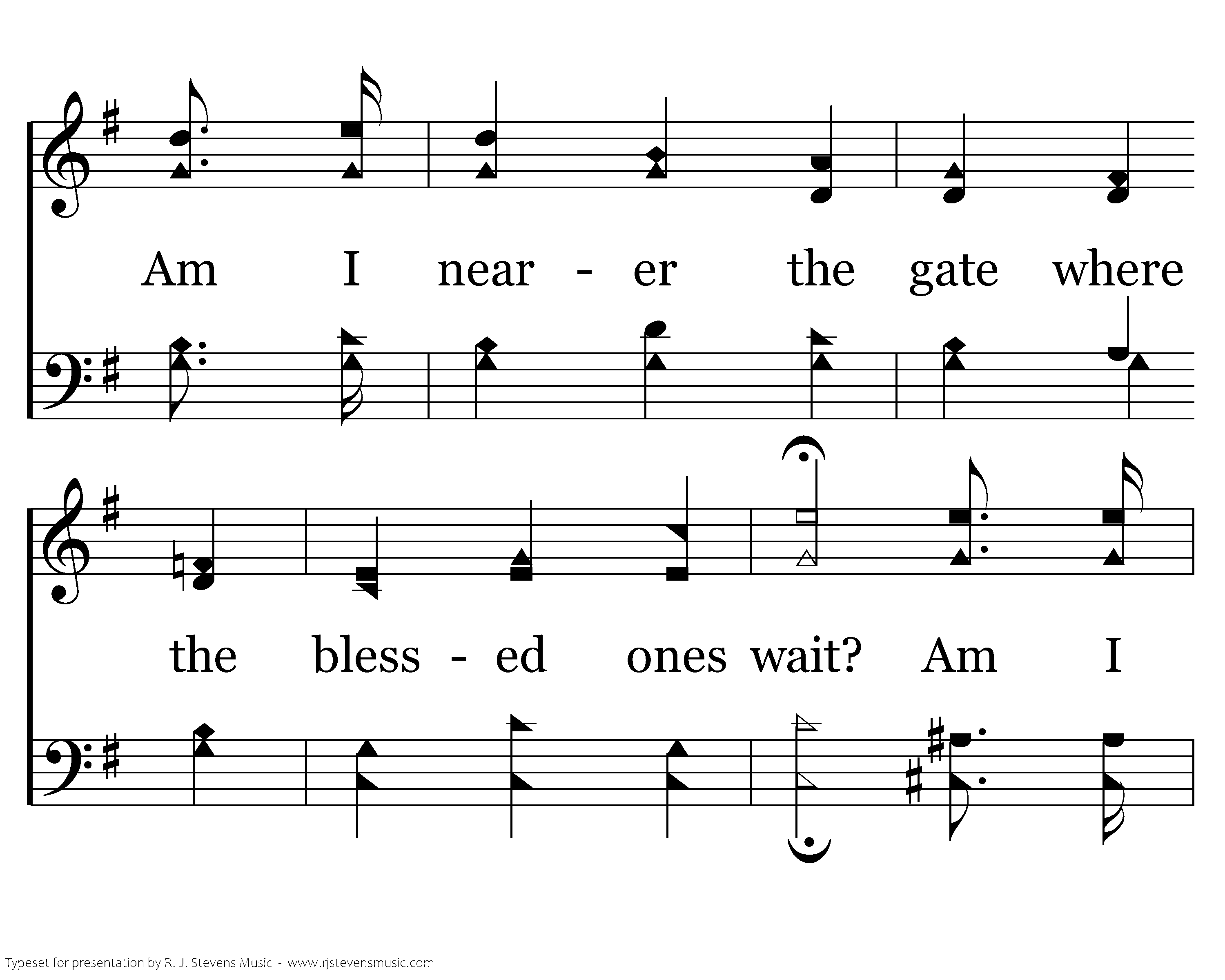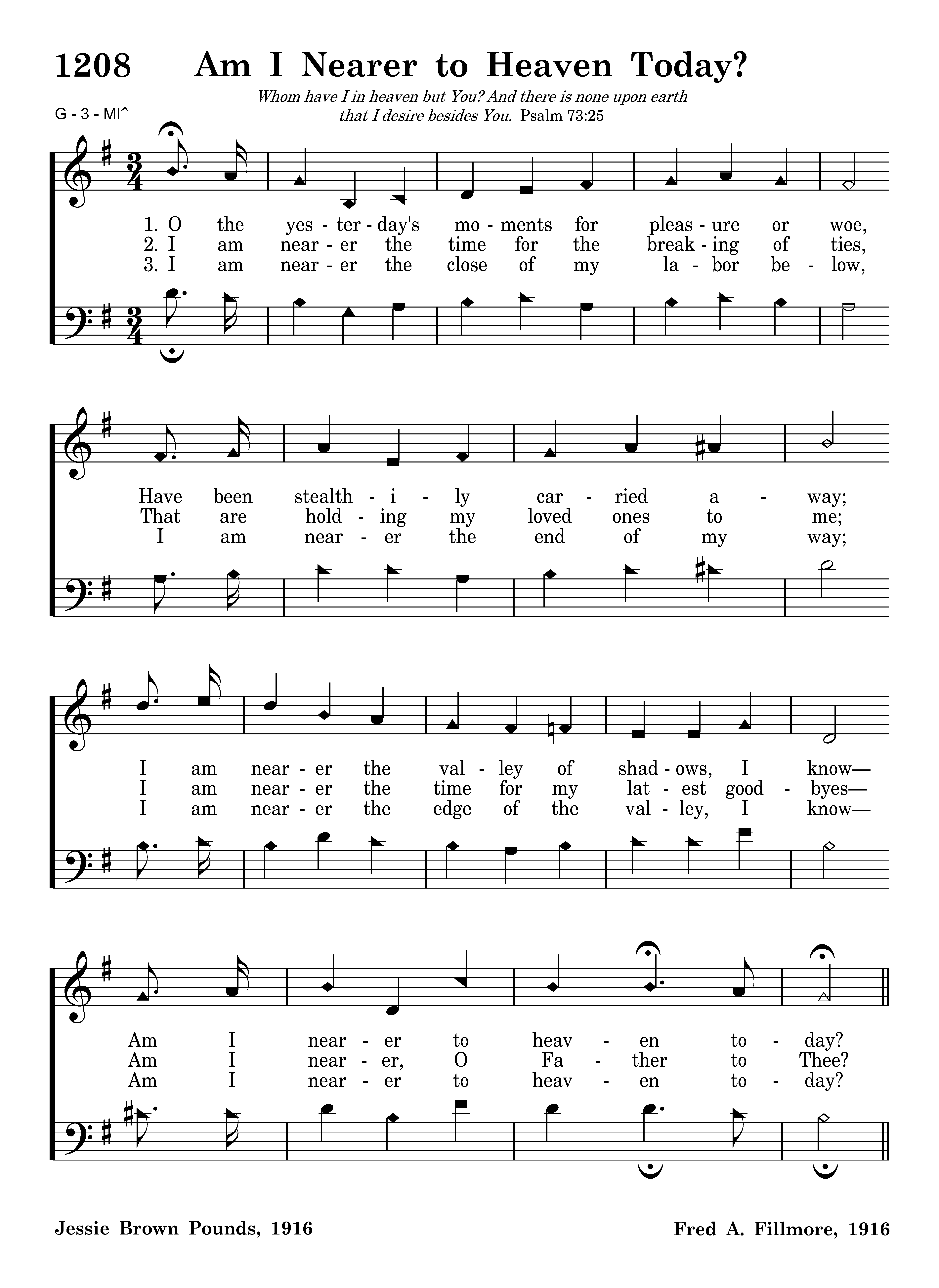 Am I nearer? Am I nearer? Am I nearer to heaven today? Am I nearer the gate where the blessed ones wait? Am I nearer to heaven today?