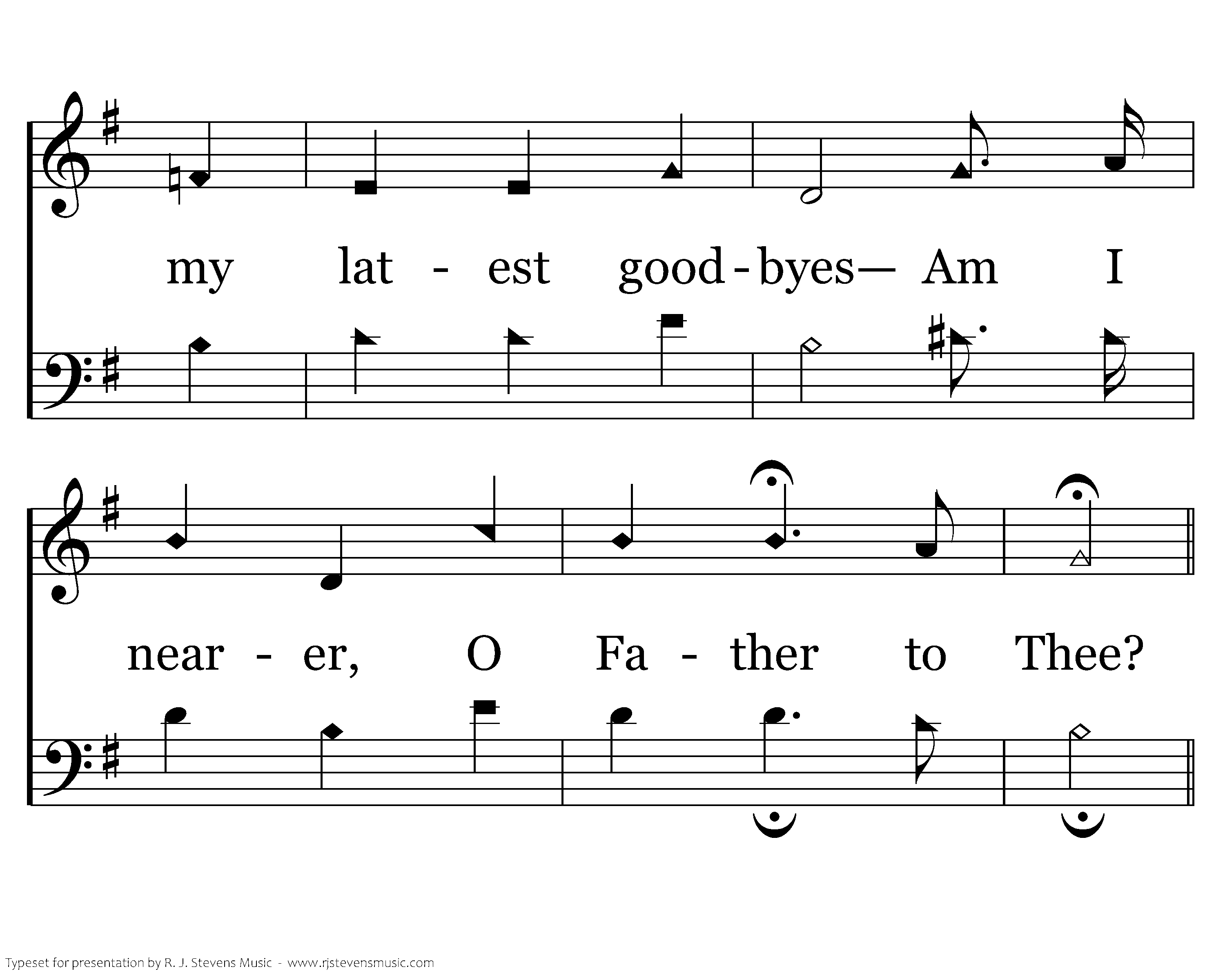 I am nearer the time for the breaking of ties, That are holding my loved ones to me; I am nearer the time for my latest goodbyes Am I nearer, O Father to Thee?