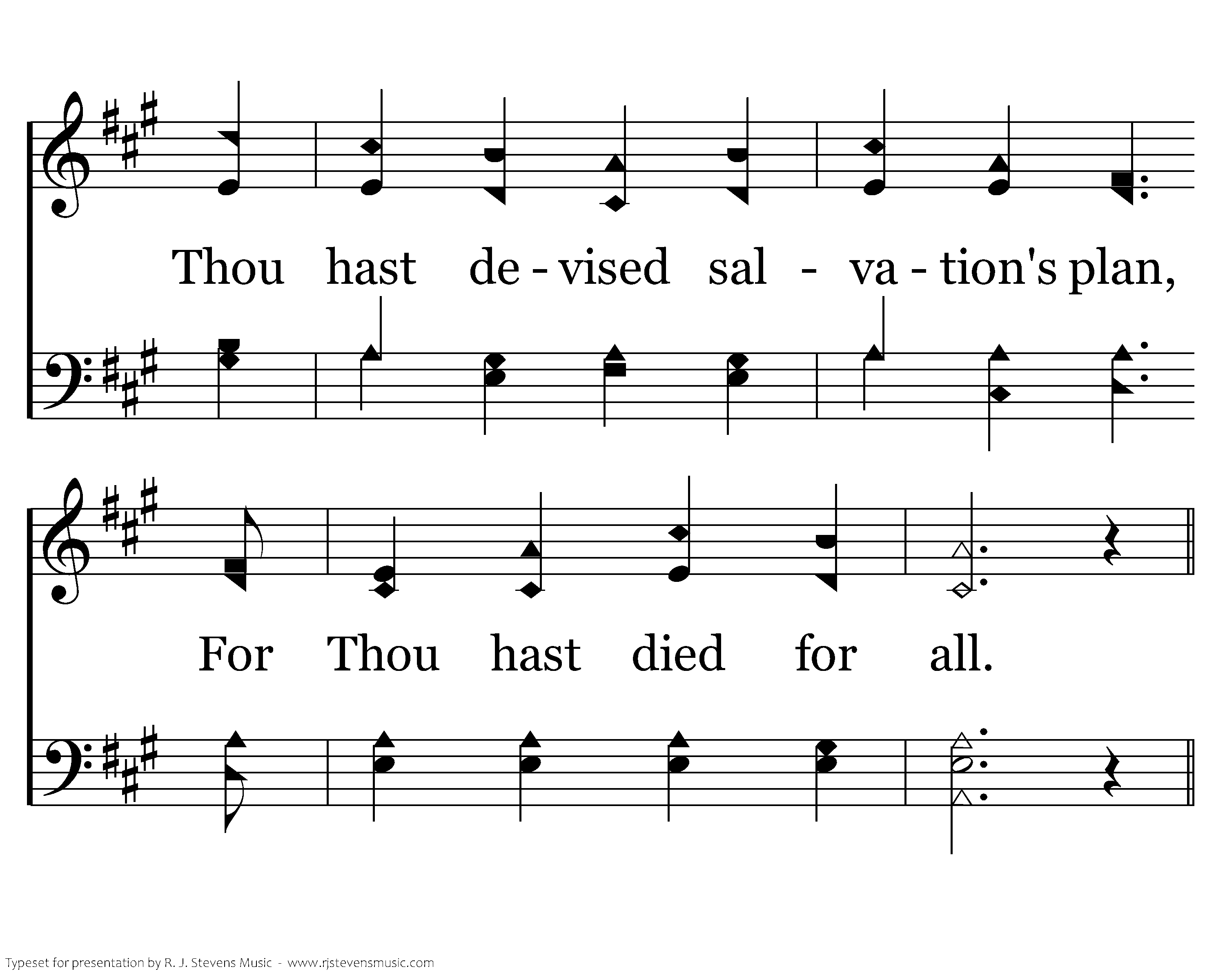Redeemer, Savior, Friend of man Once ruined by the fall; Thou hast devised salvation's plan, For Thou hast died for all.