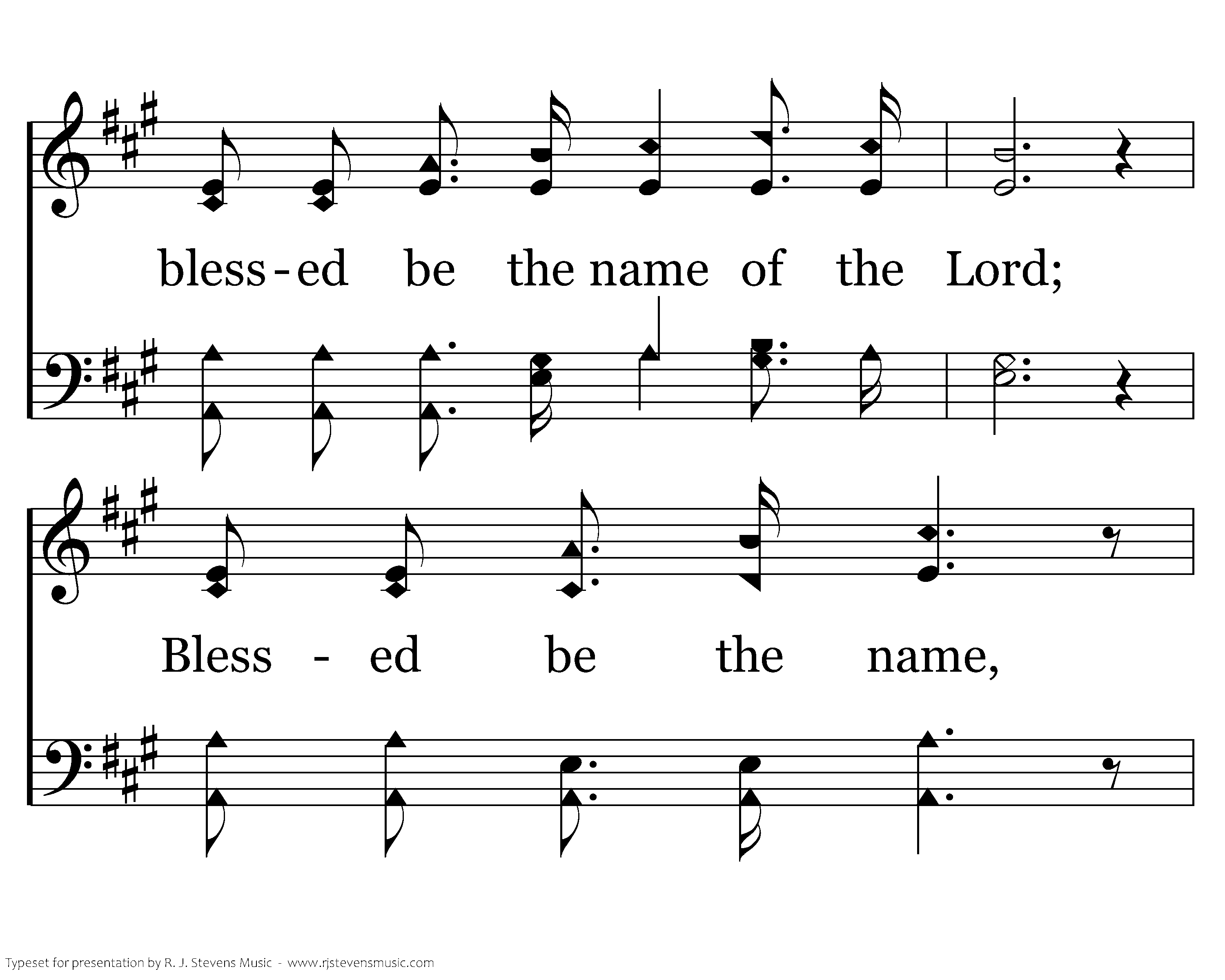 Blessed be the name, blessed be the name, blessed be the name of the Lord: Blessed be the name, blessed be the name, blessed be the name of the Lord.
