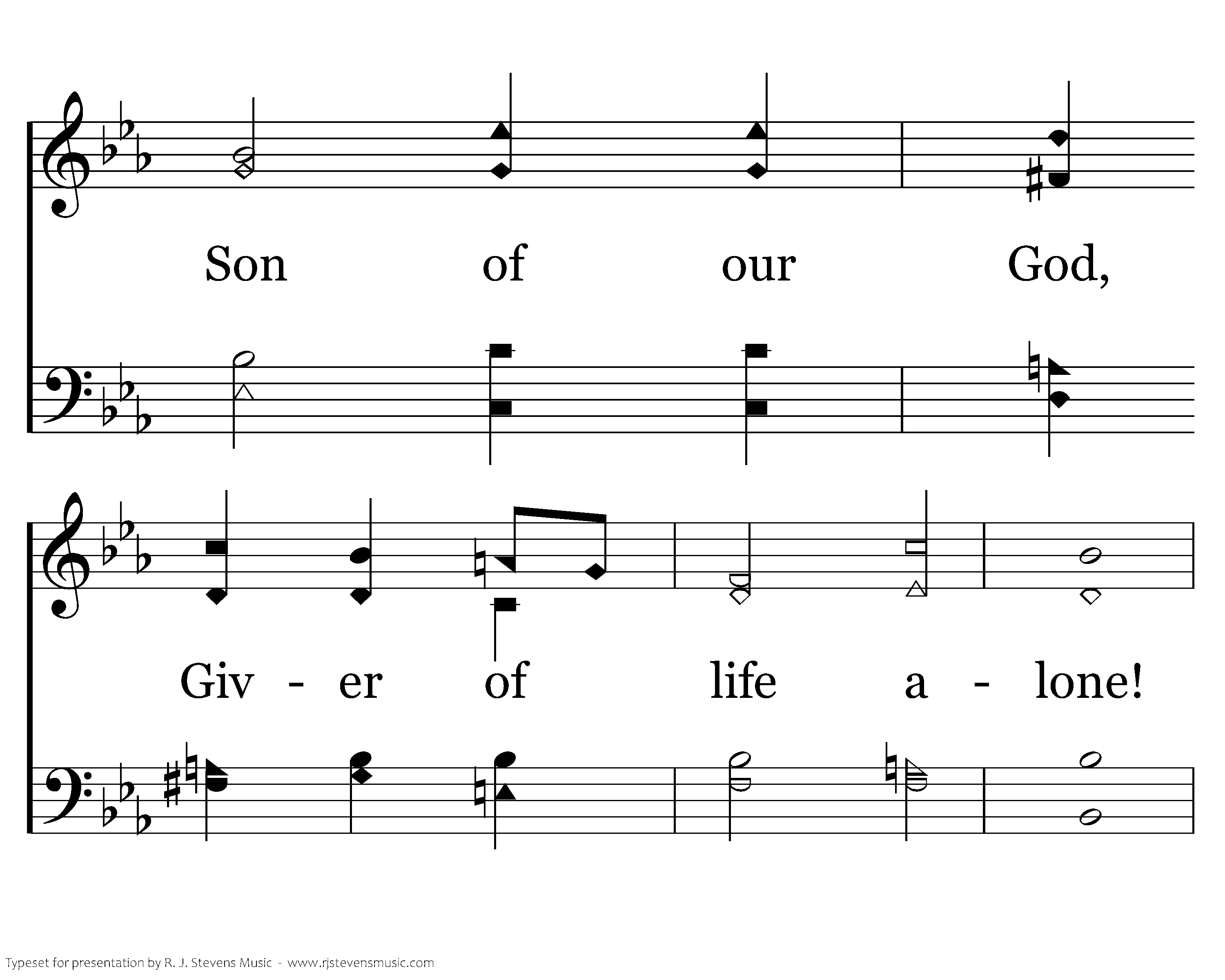 By grateful hearts, with undefiled tongue, Son of our God, Giver of life alone! Therefore shall all the worlds Thy glories own. Alleluia! Alleluia!