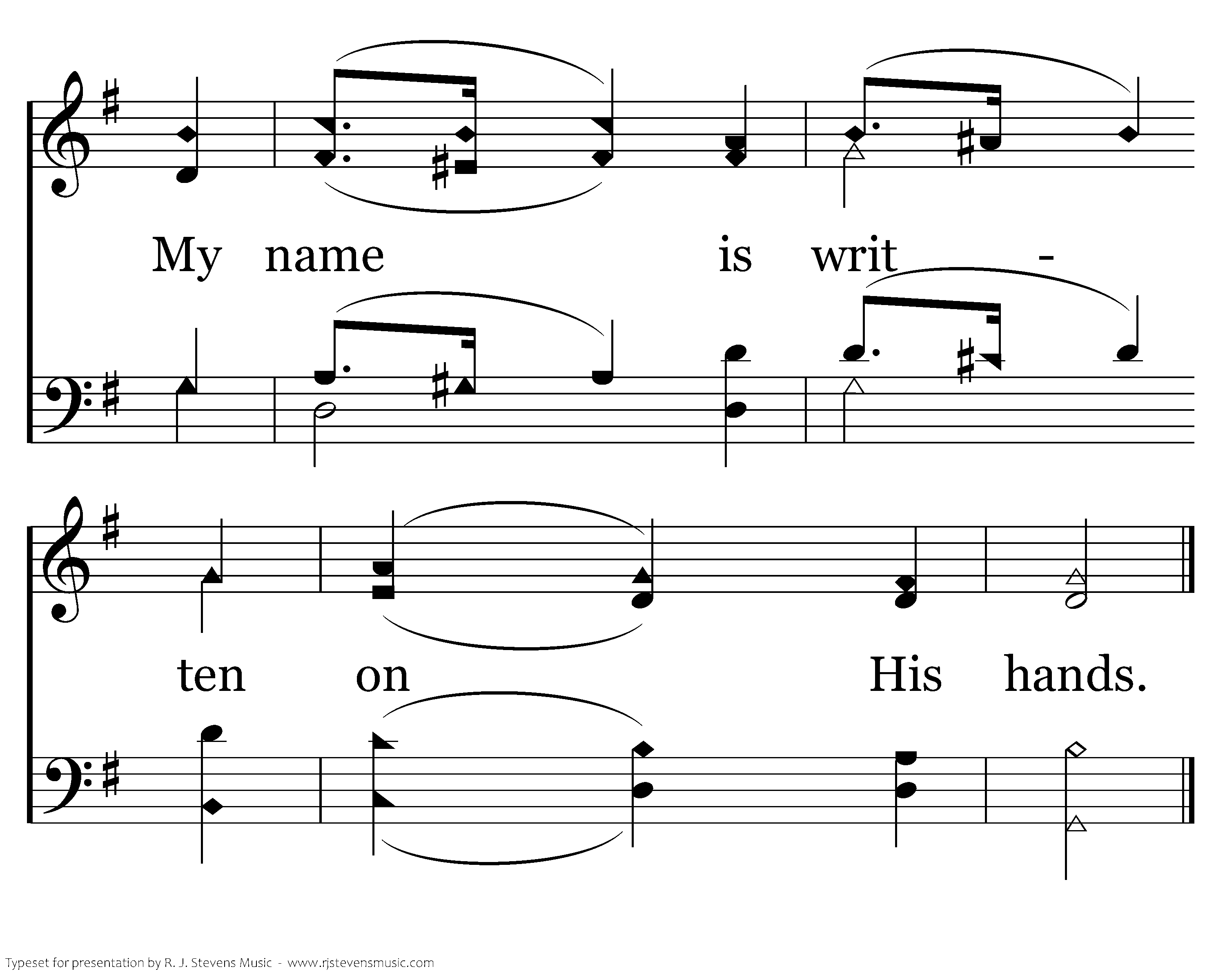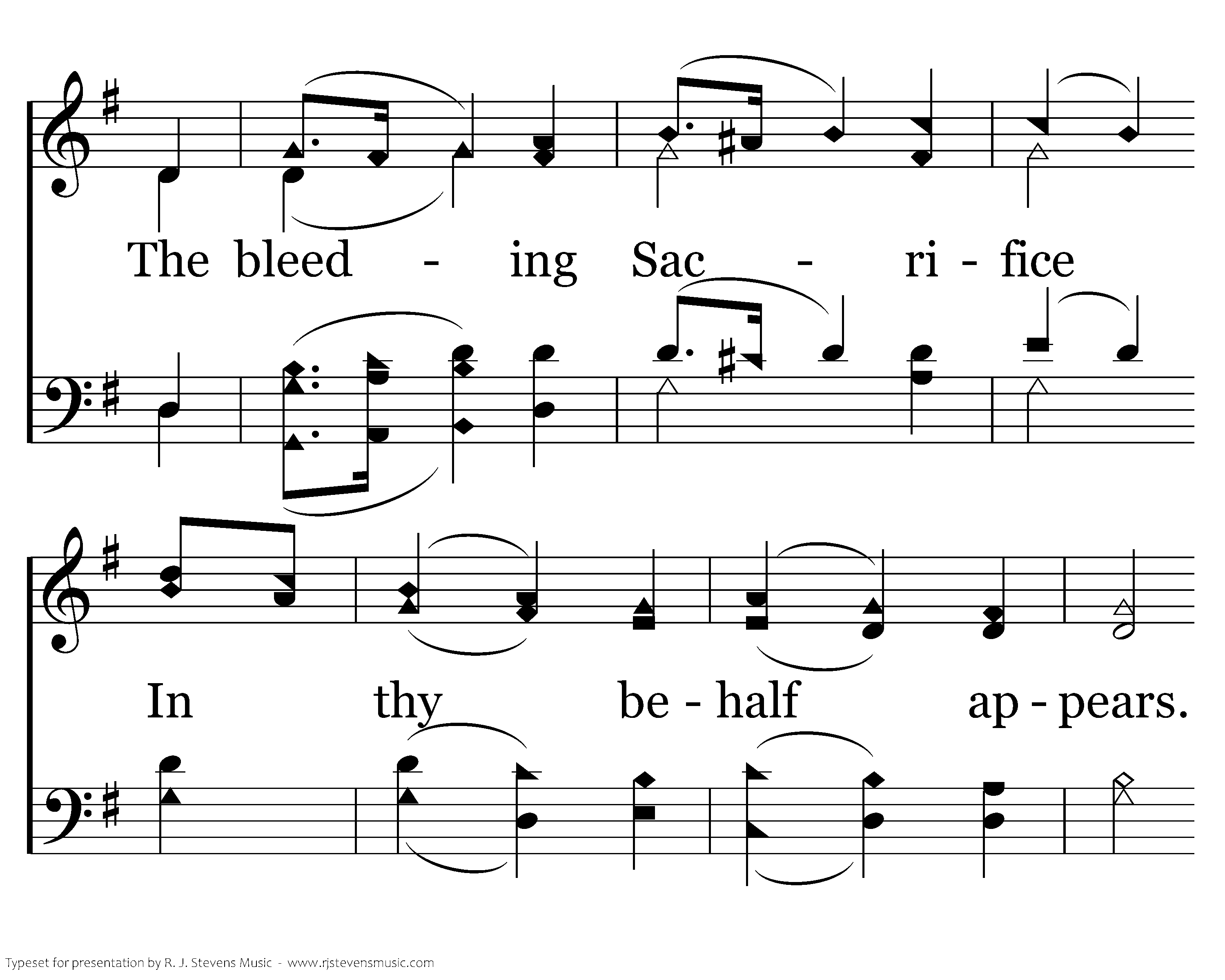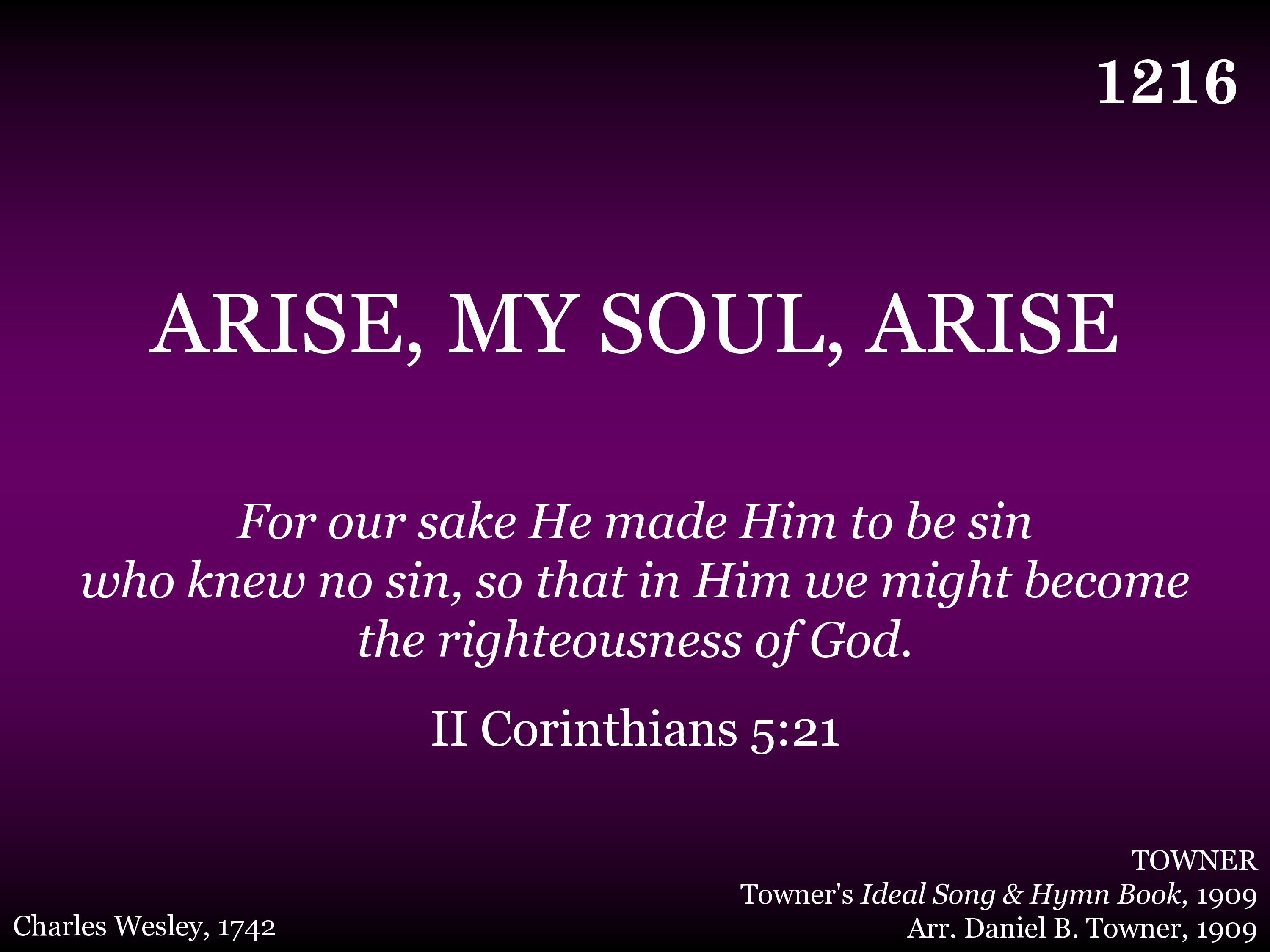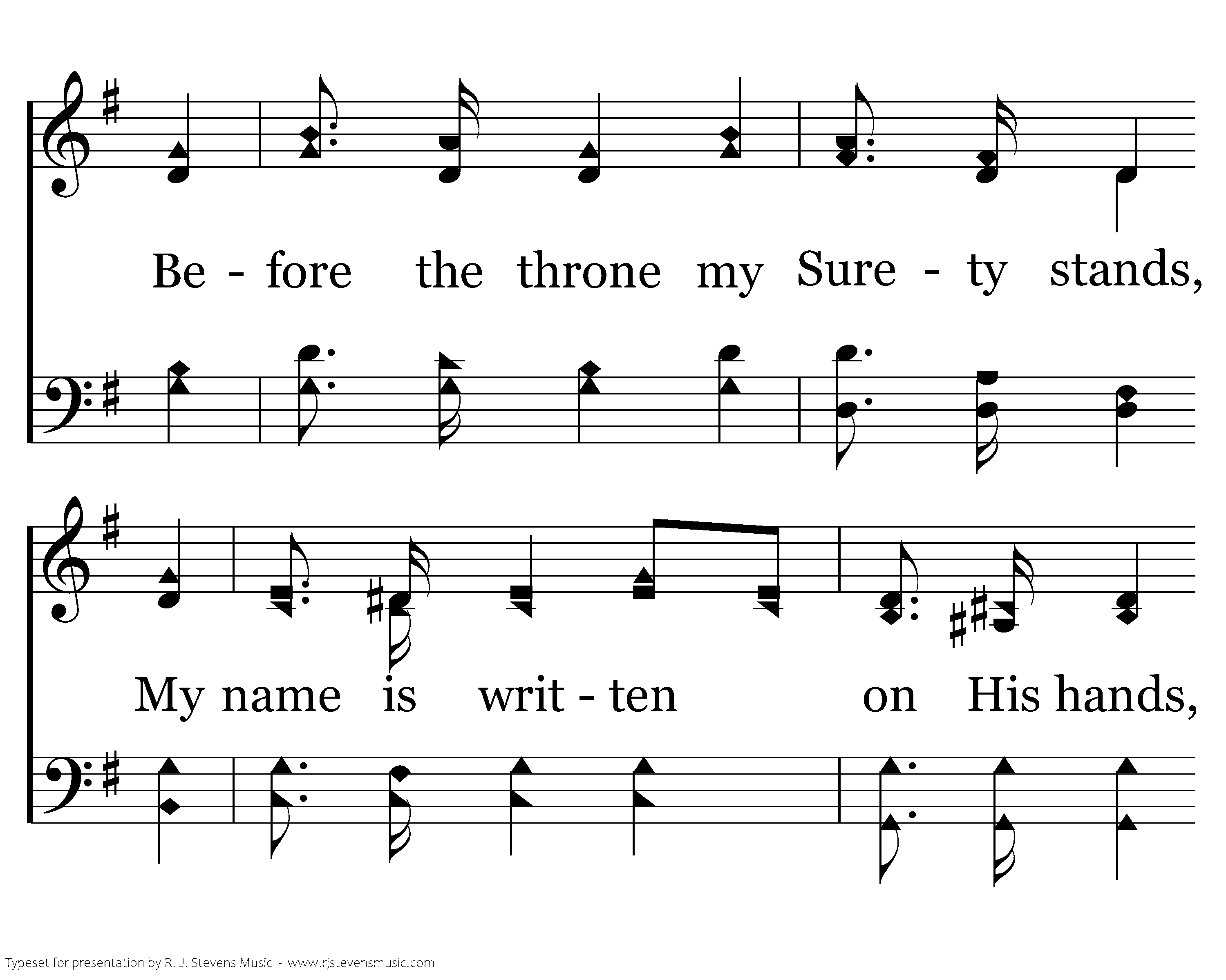 Arise, my soul, arise, Shake off thy guilty fears; The bleeding Sacrifice In thy behalf appears. Before the throne my Surety stands, My name is written on His hands, My name is written on His hands.
