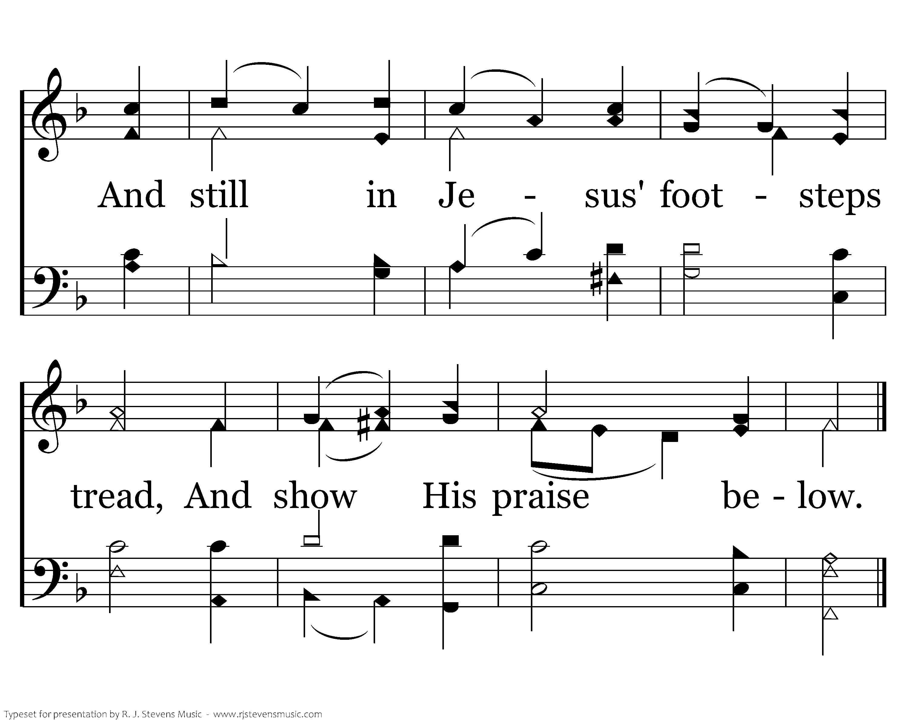 Joined in one Spirit to our Head, Where He appoints we go, And still in Jesus' footsteps tread, And show His praise below.