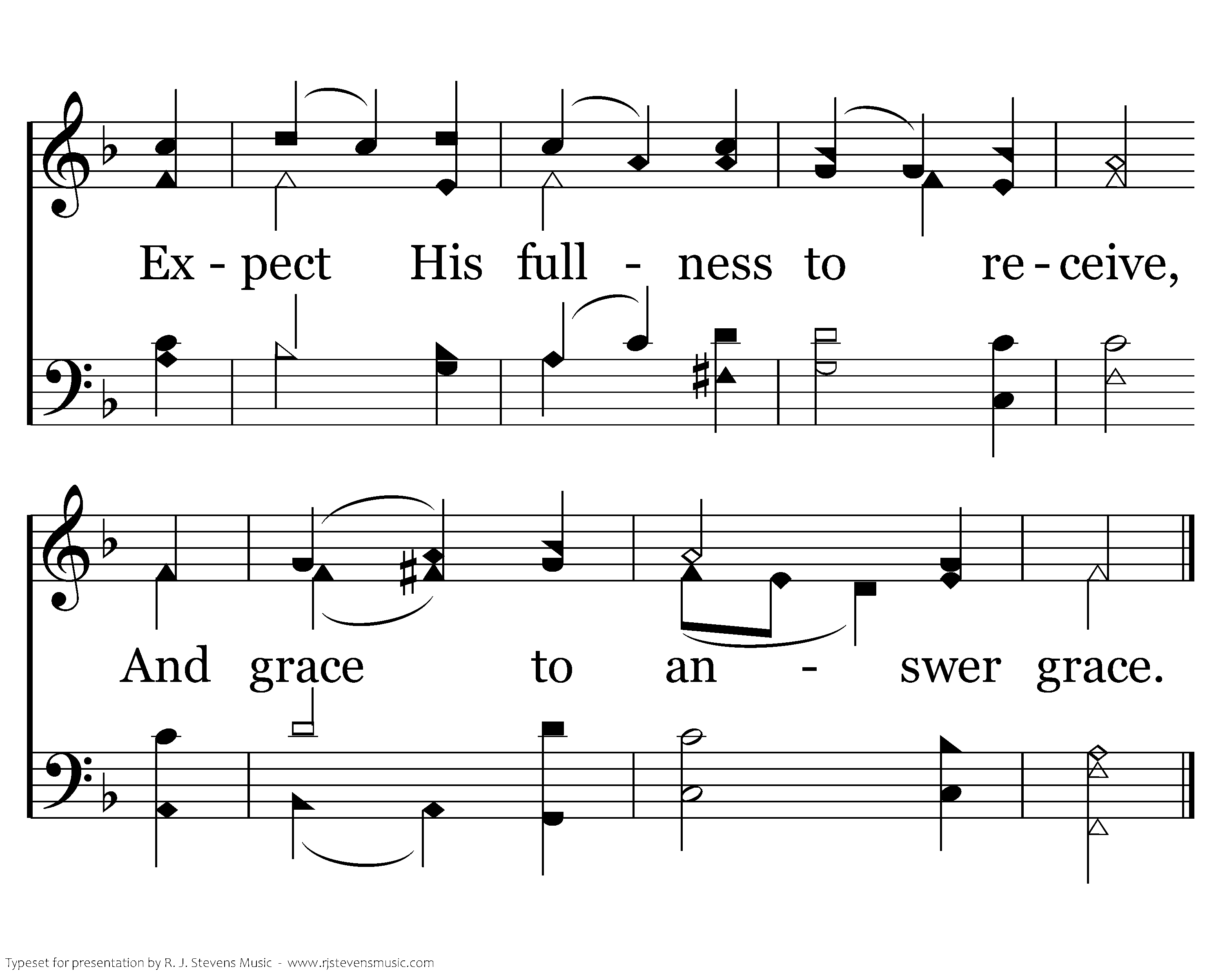 Closer and closer let us cleave To His beloved embrace, Expect His fullness to receive, And grace to answer grace.