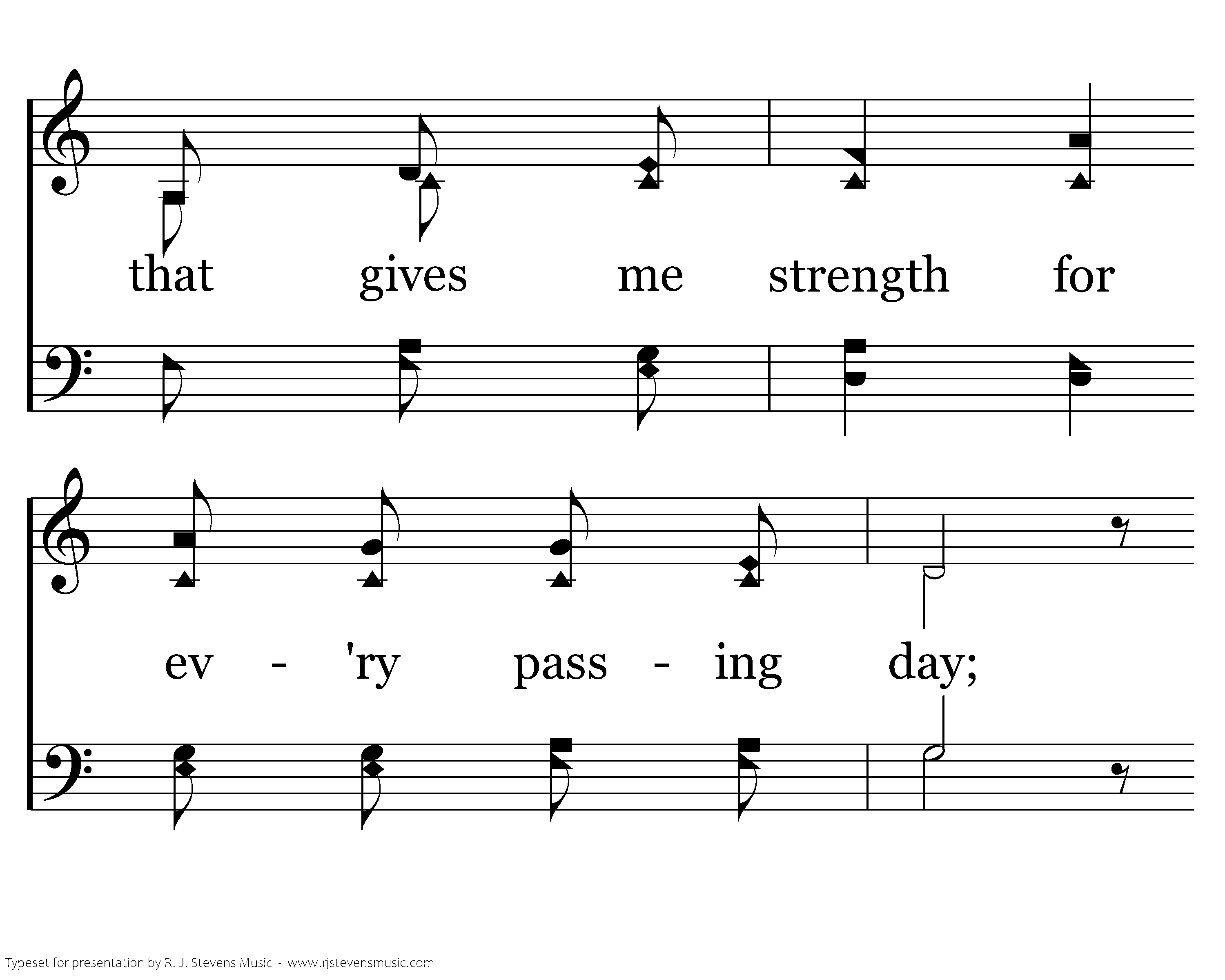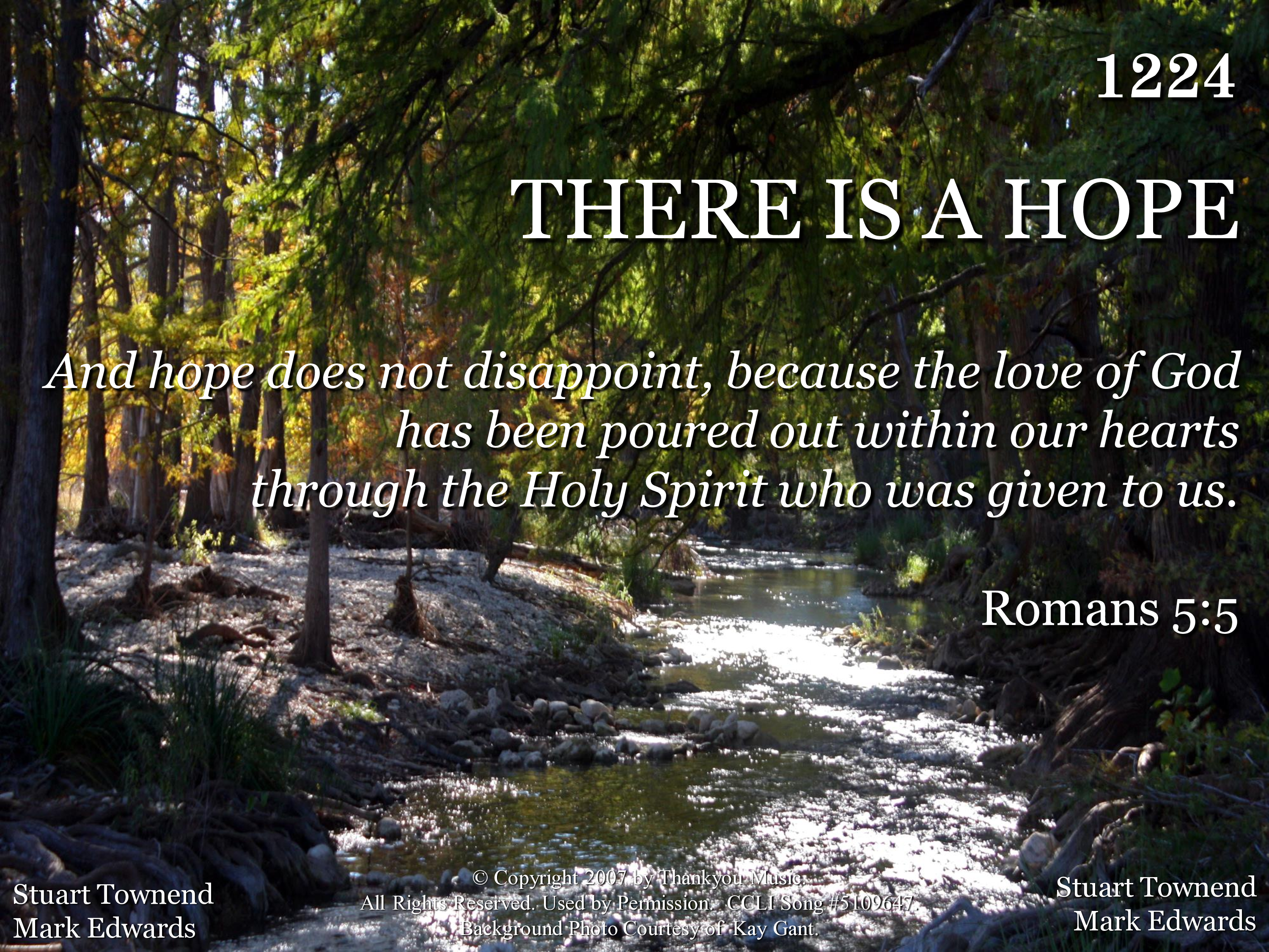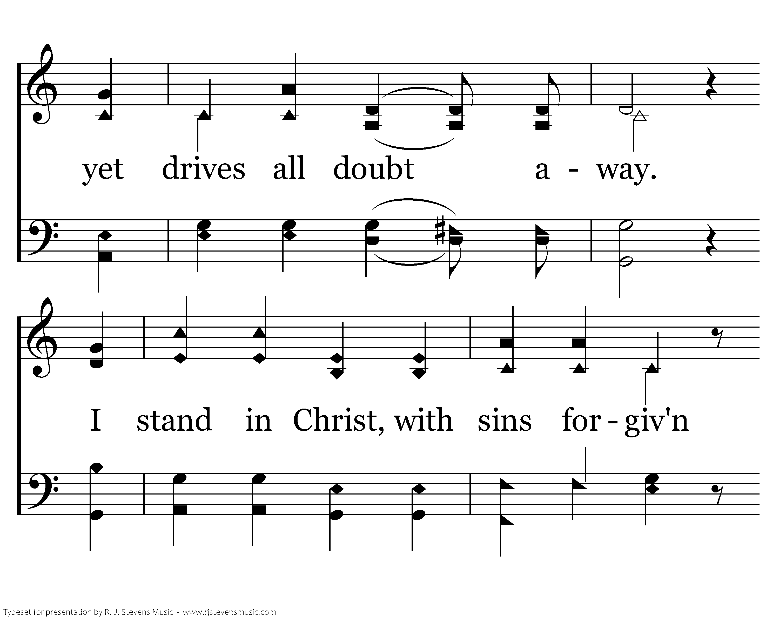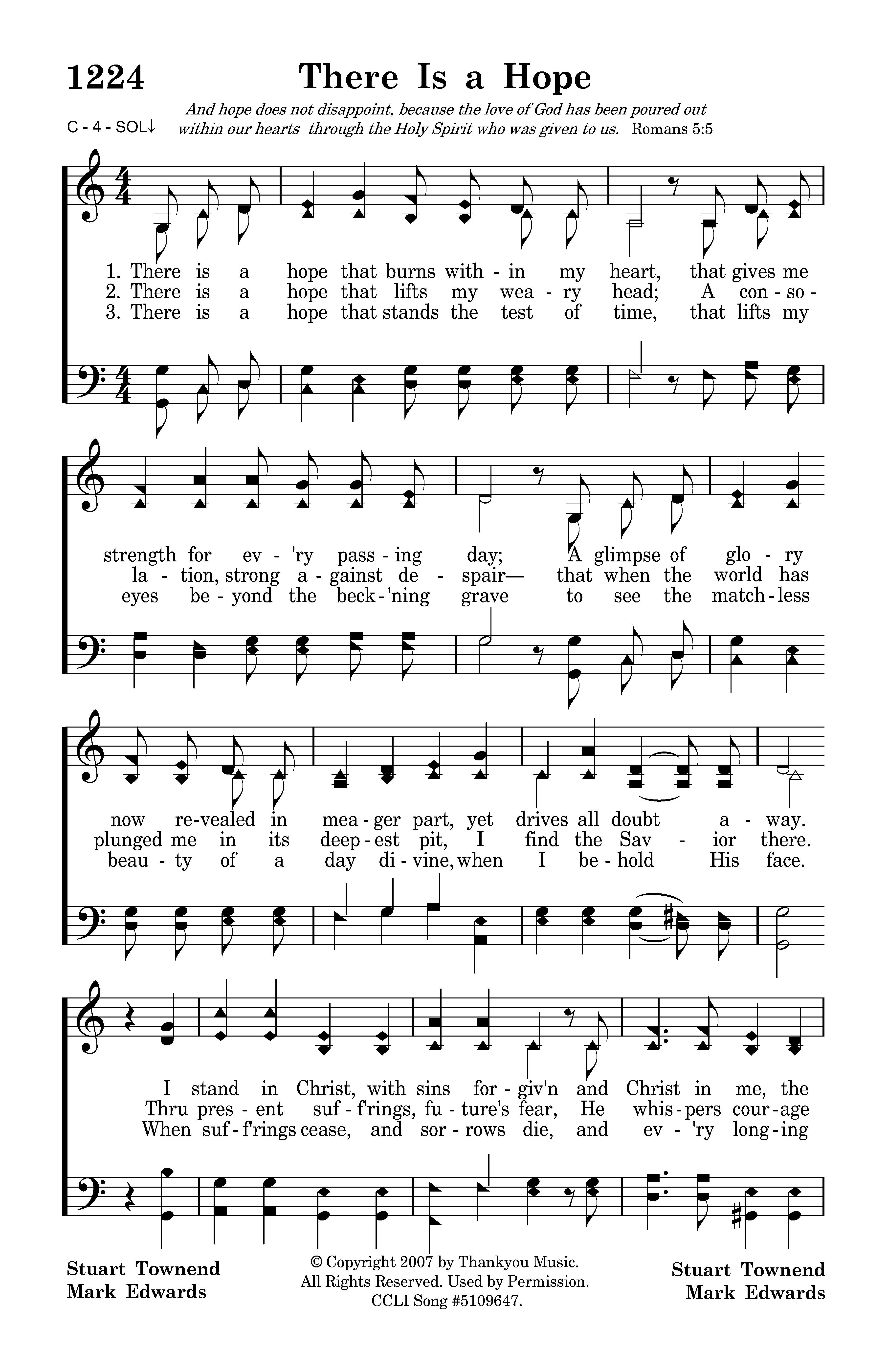 There is a hope that burns within my heart, that gives me strength for ev'ry passing day; A glimpse of glory now revealed in meager part, yet drives all doubt away. I stand in Christ, with sins forgiv'n and Christ in me, the hope of heav'n. My highest calling, and my deepest joy, to make His will my home.