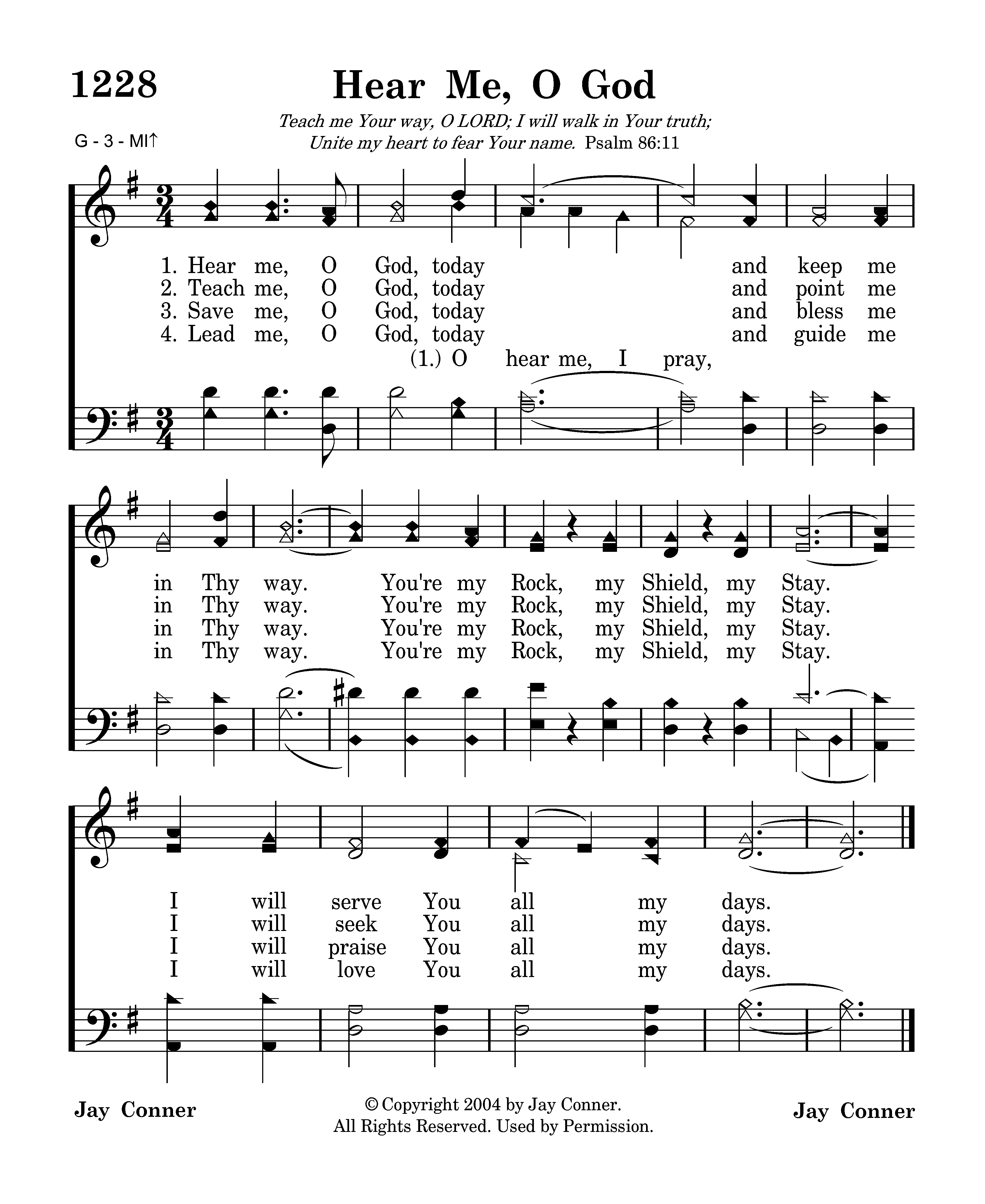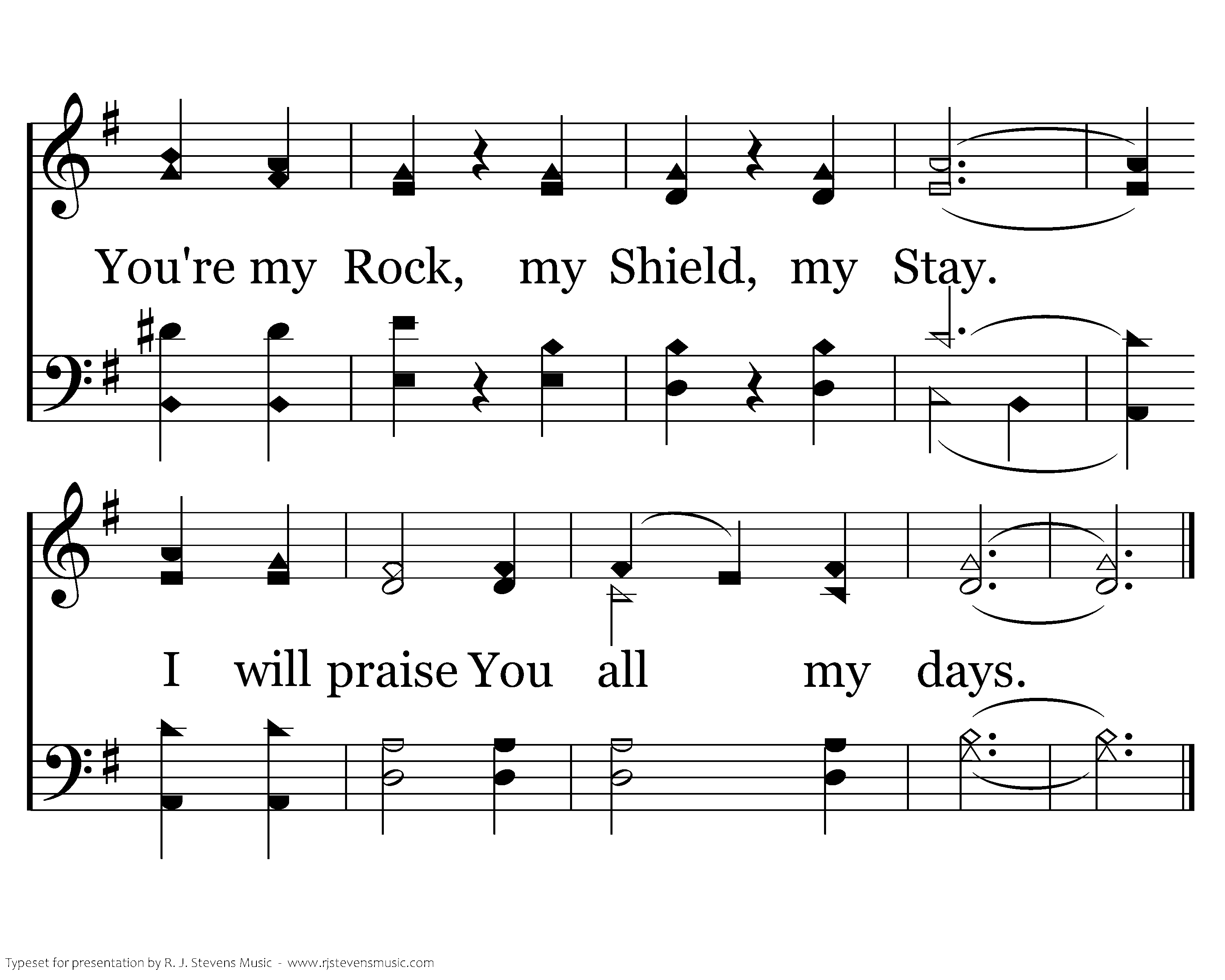 Hear me, O God, today and keep me in Thy way. You're my Rock, my Shield, my Stay. I will serve You all my days.