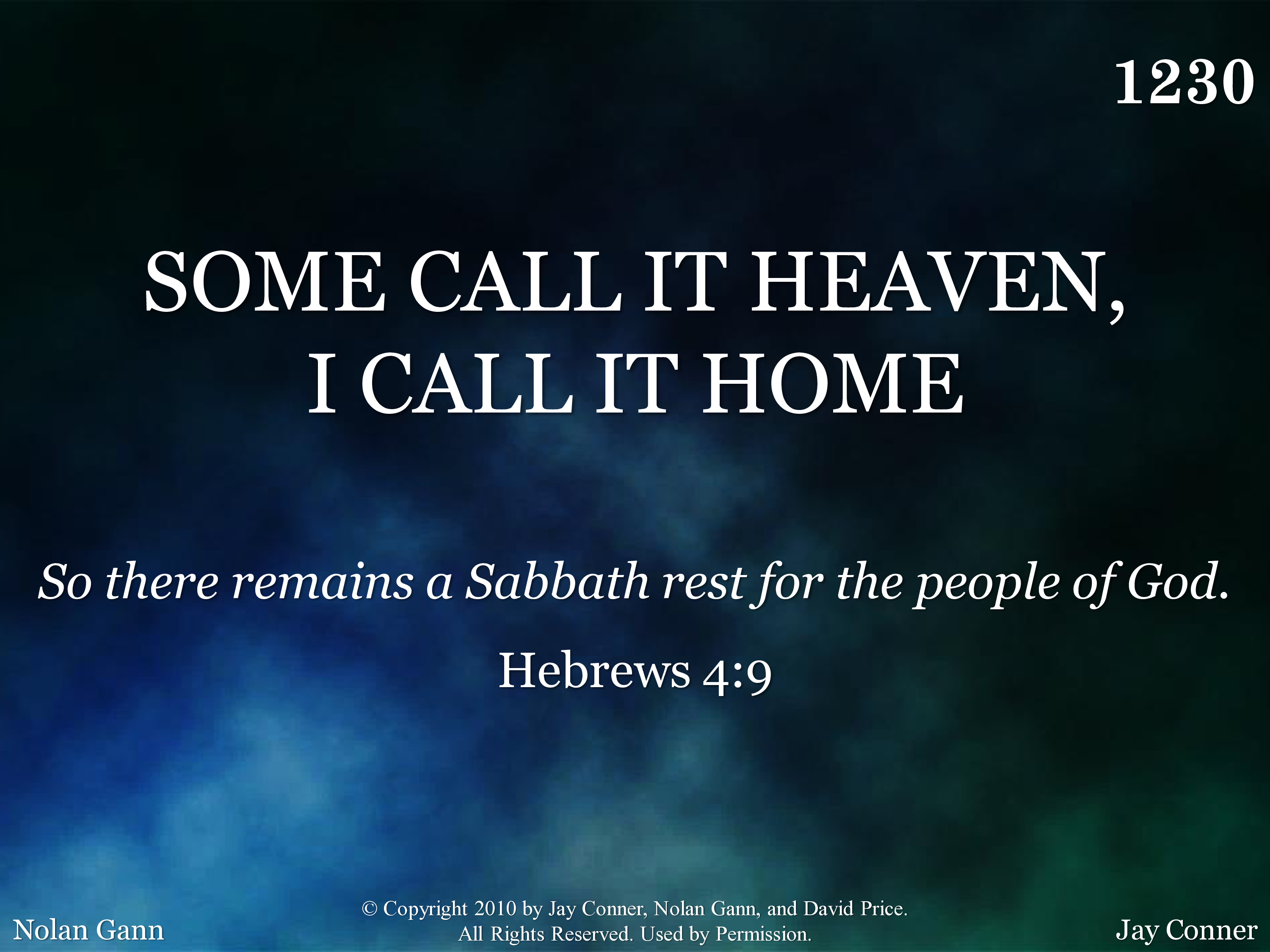- Copyright © 2010 by Jy Conner, Nolan Gann, and David Price. All Rights Reserved. Used by Permission.