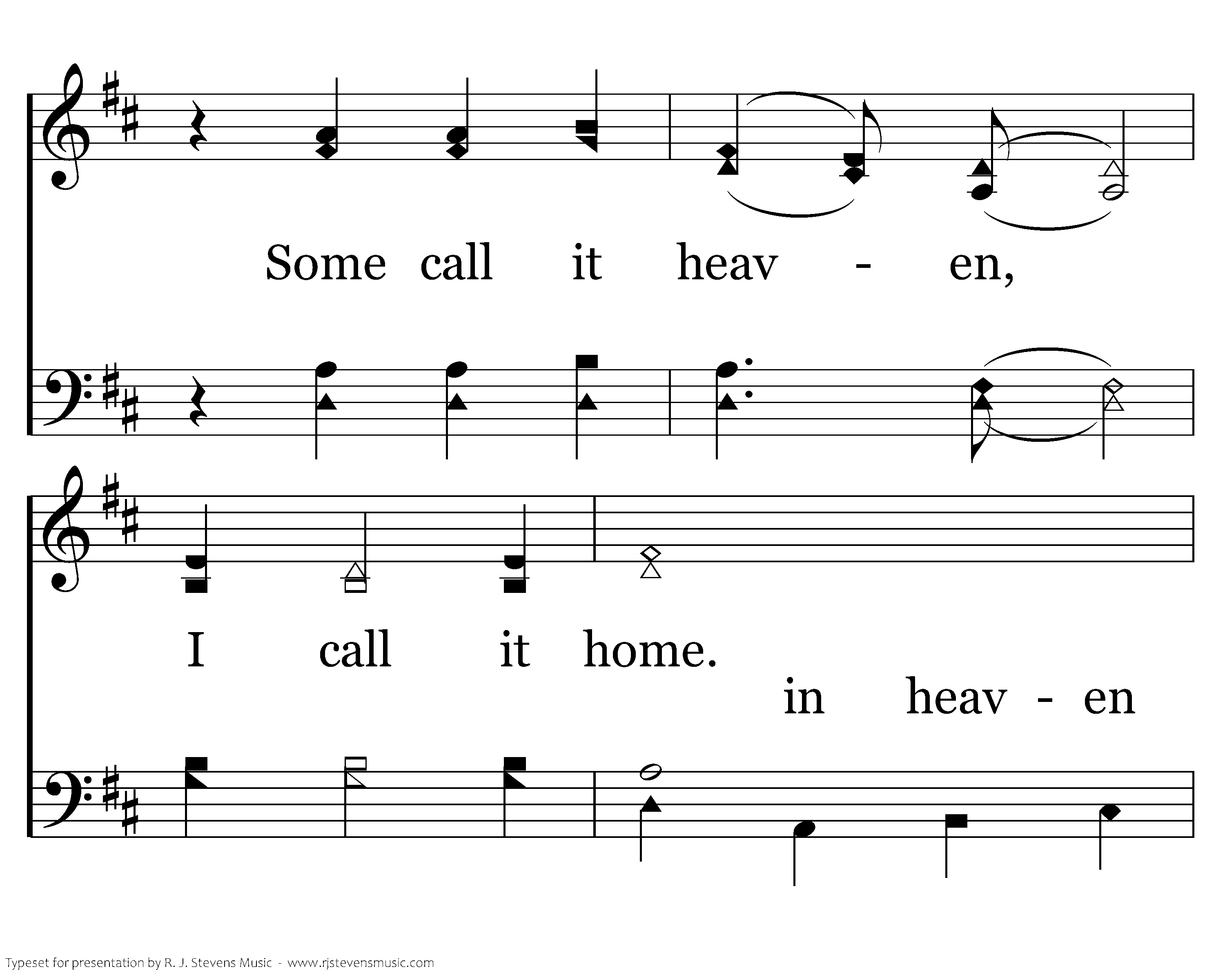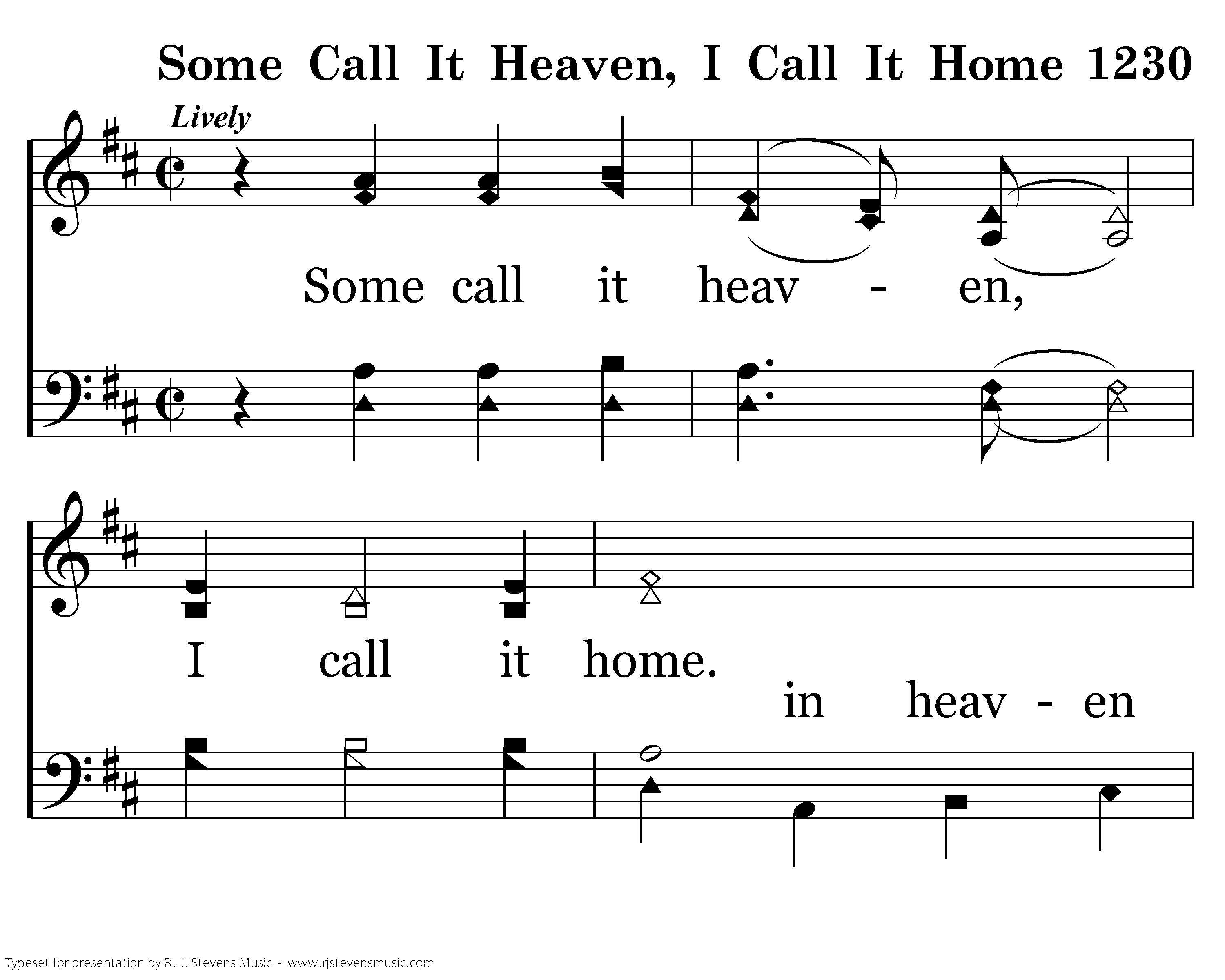 Some call it heaven, I call it home. The place I long for, there 'round God's throne. Love, joy and singing, no more alone. Some call it heaven, I call it home. I close my eyes and I see a place No pain, no worries singing God's praise. And in His hands I'm ever secure. Home everlasting, I am assured! Some call it heaven, I call it home. The place I long for, there 'round God's throne. Love, joy and singing, no more alone. Some call it heaven, I call it home.