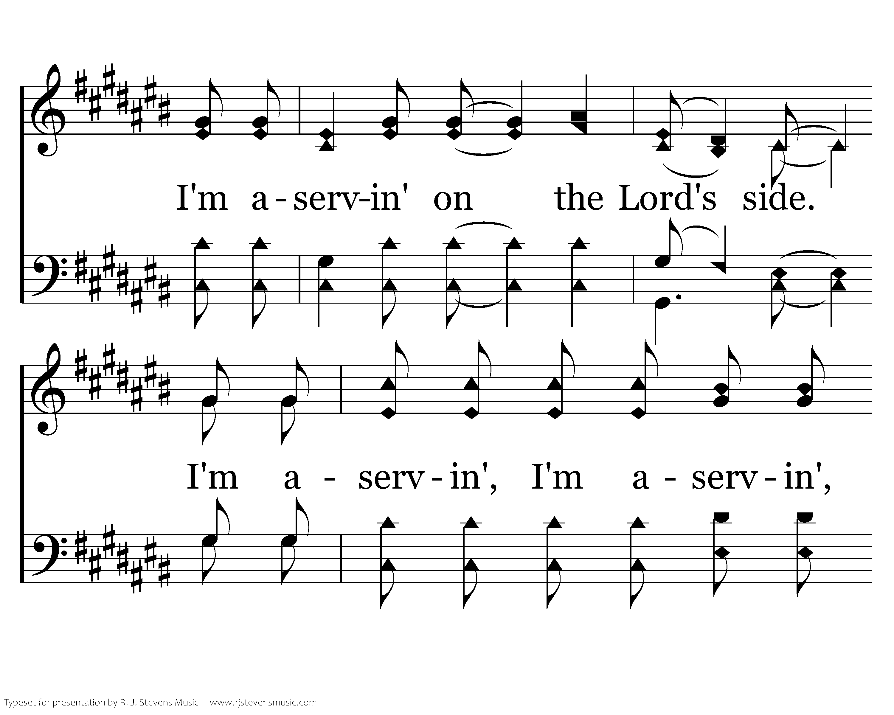 Tell me whose side are you servin' on? Tell me whose side are you servin' on? I'm aservin', I'm aservin', I'm aservin', I'm aservin', I'm aservin' on the Lord's side. I'm aservin', I'm aservin', I'm aservin', I'm aservin', I'm aservin' on the Lord's side. Lord's side.
