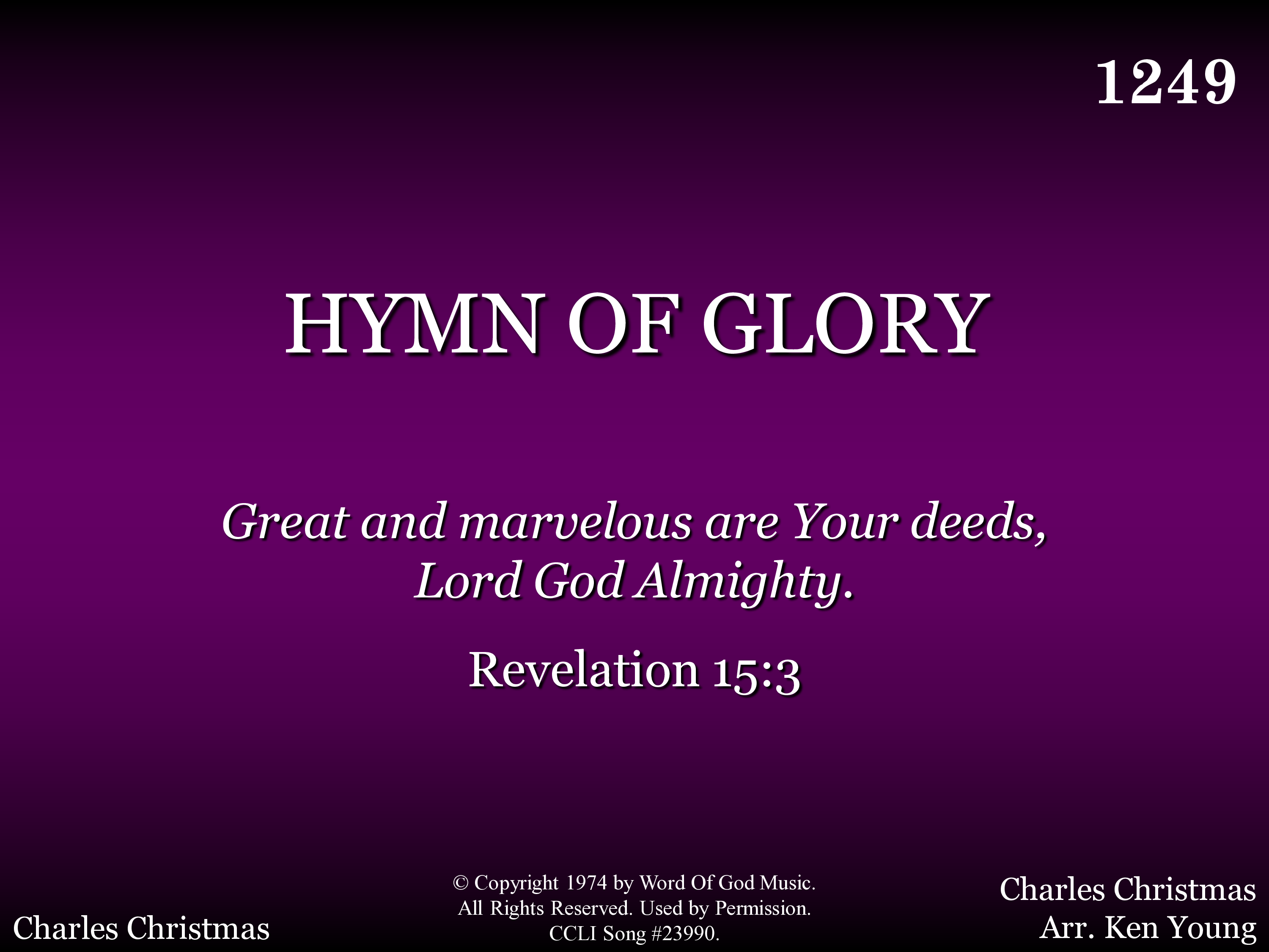 - Copyright © 1974 by Word of God Music. (Admin. byword of God Music.) All Rights Reserved. Used by Permission.