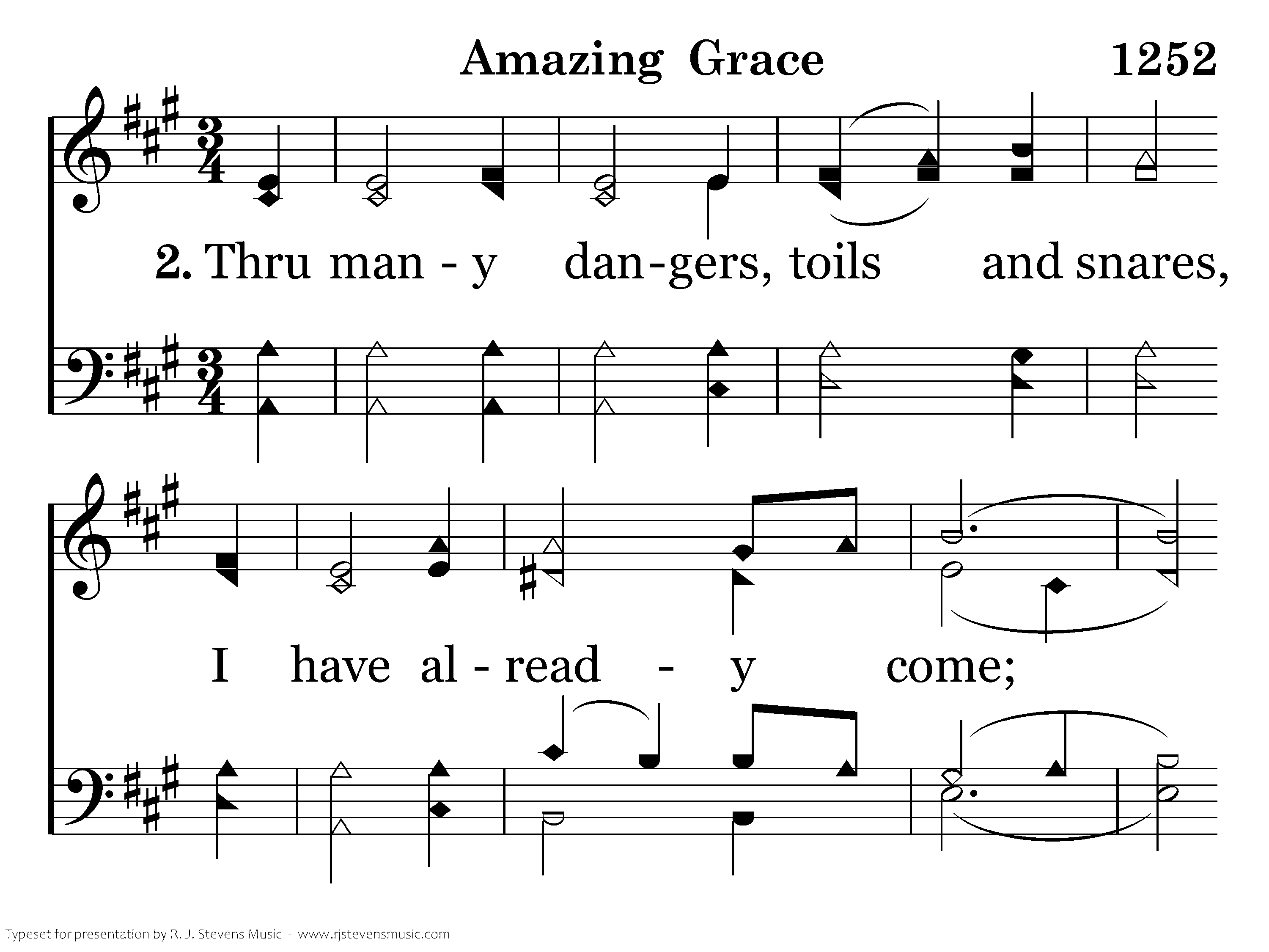 Thru many dangers, toils and snares, I have already come; 'Twas grace that bro't me safe thus far, and grace will lead me home.