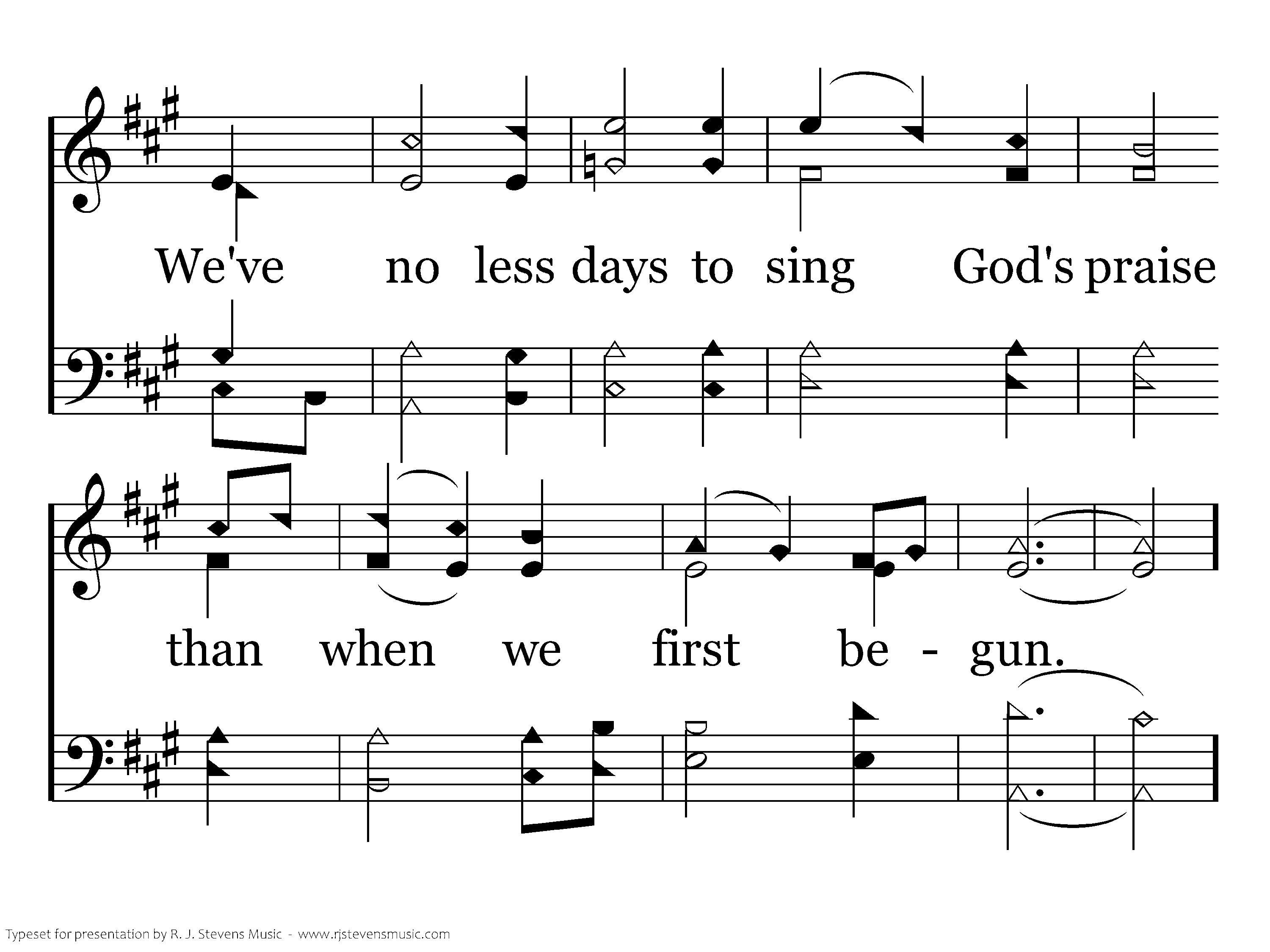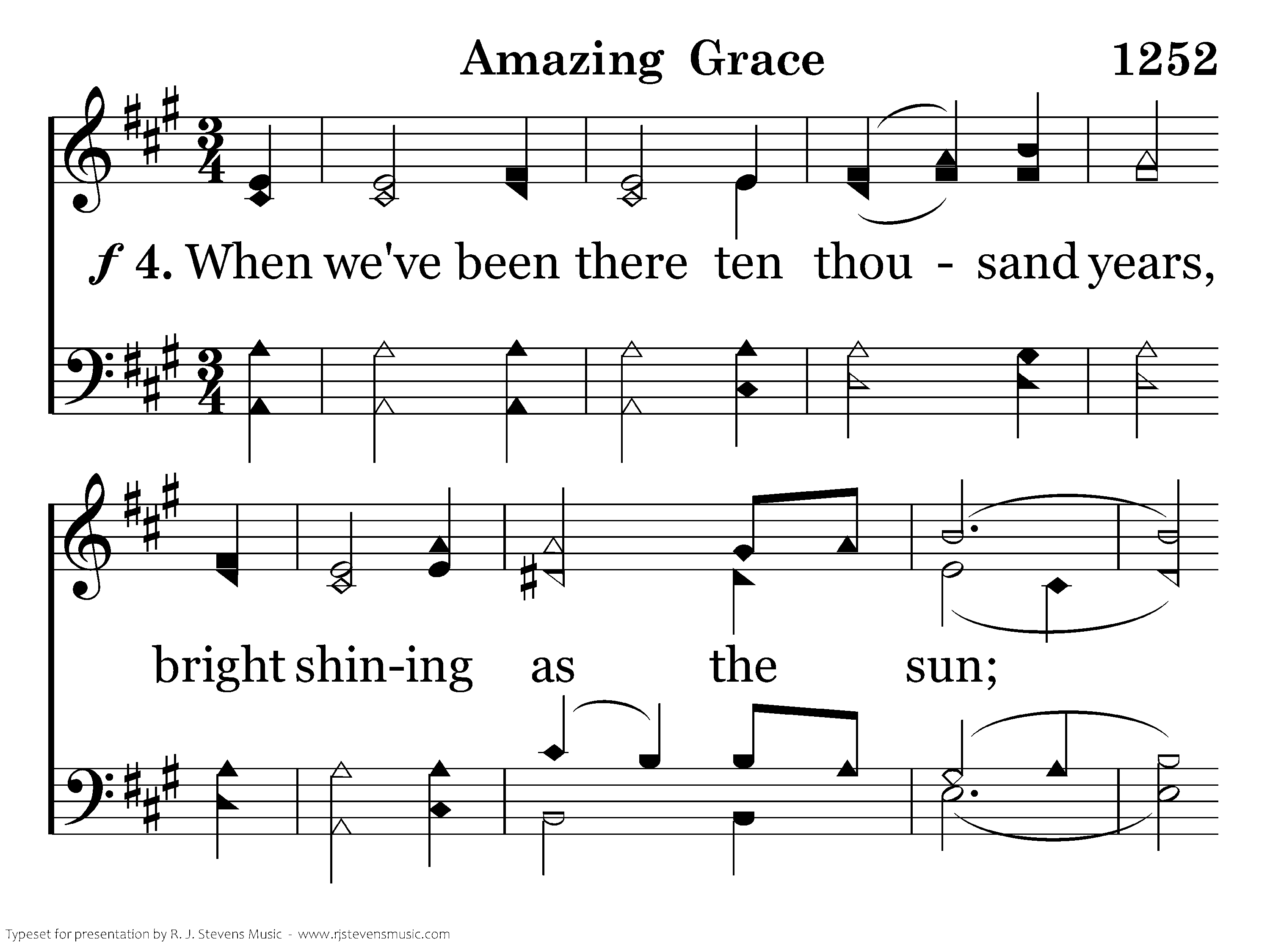When we've been there ten thousand years, bright shining as the sun; We've no less days to sing God's praise than when we first begun.