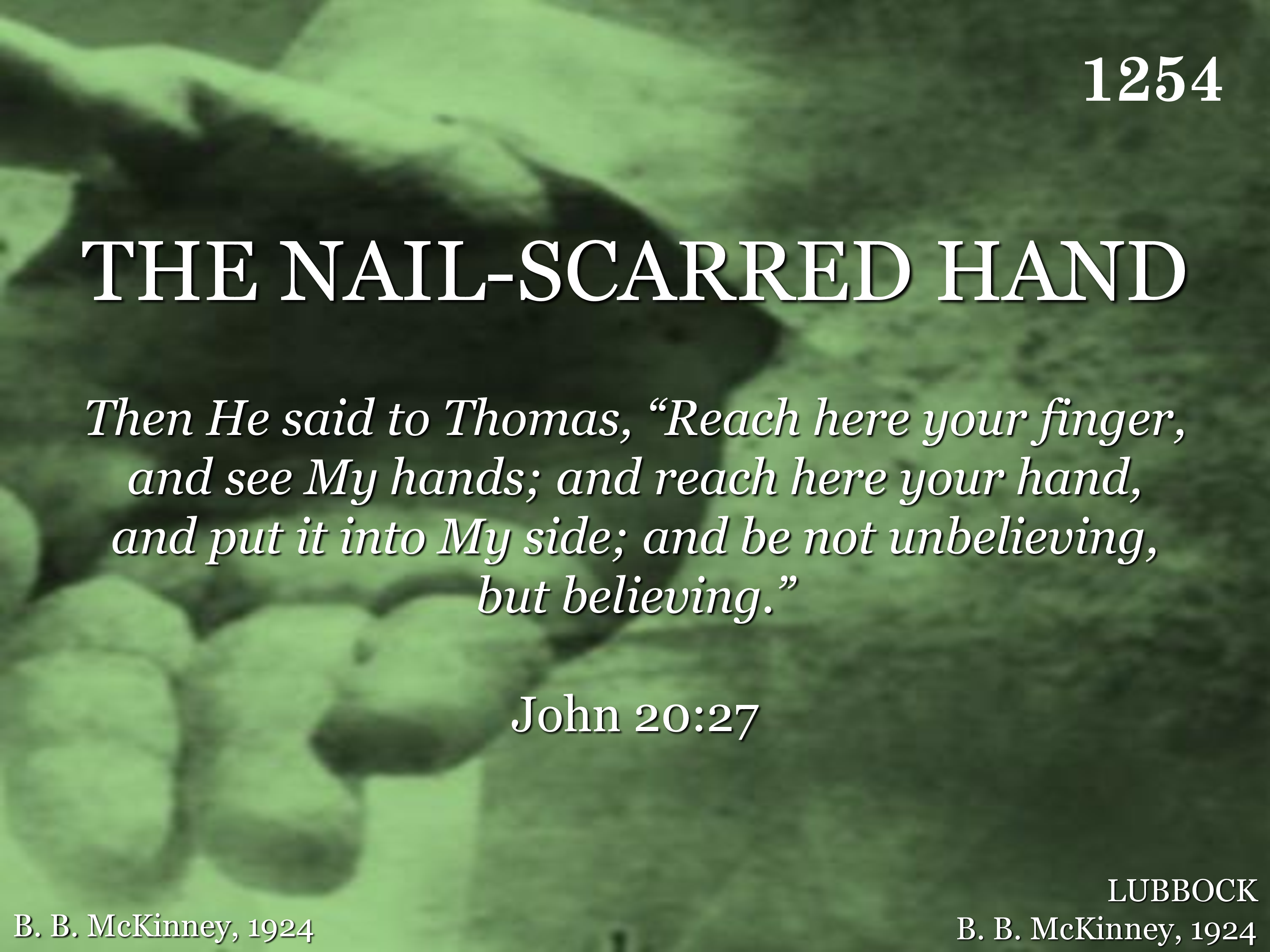 Would you follow the will of the risen Lord? Place your hand in the nailscarred hand; Would you live in the light of His blessed Word? Place your hand in the nailscarred hand.