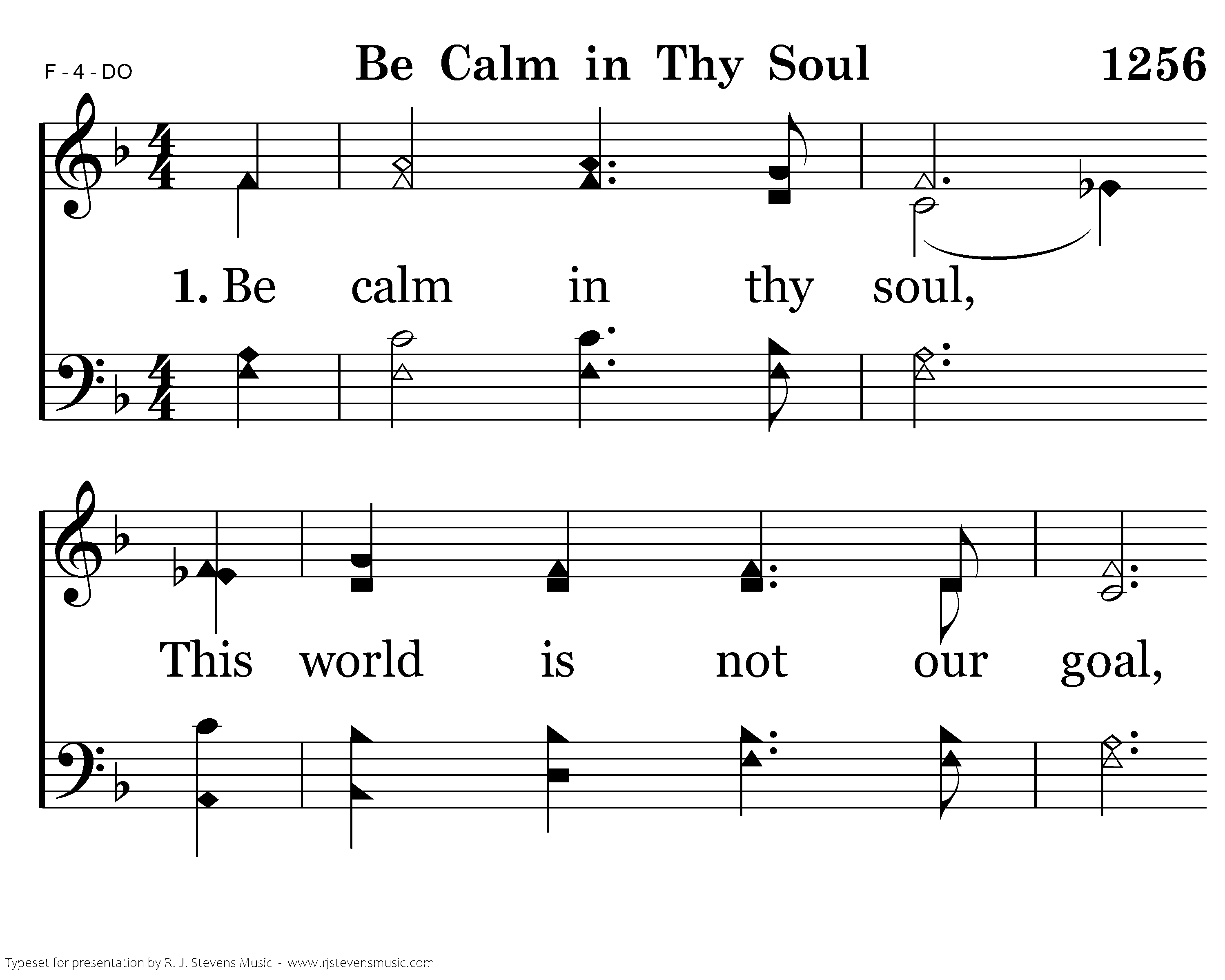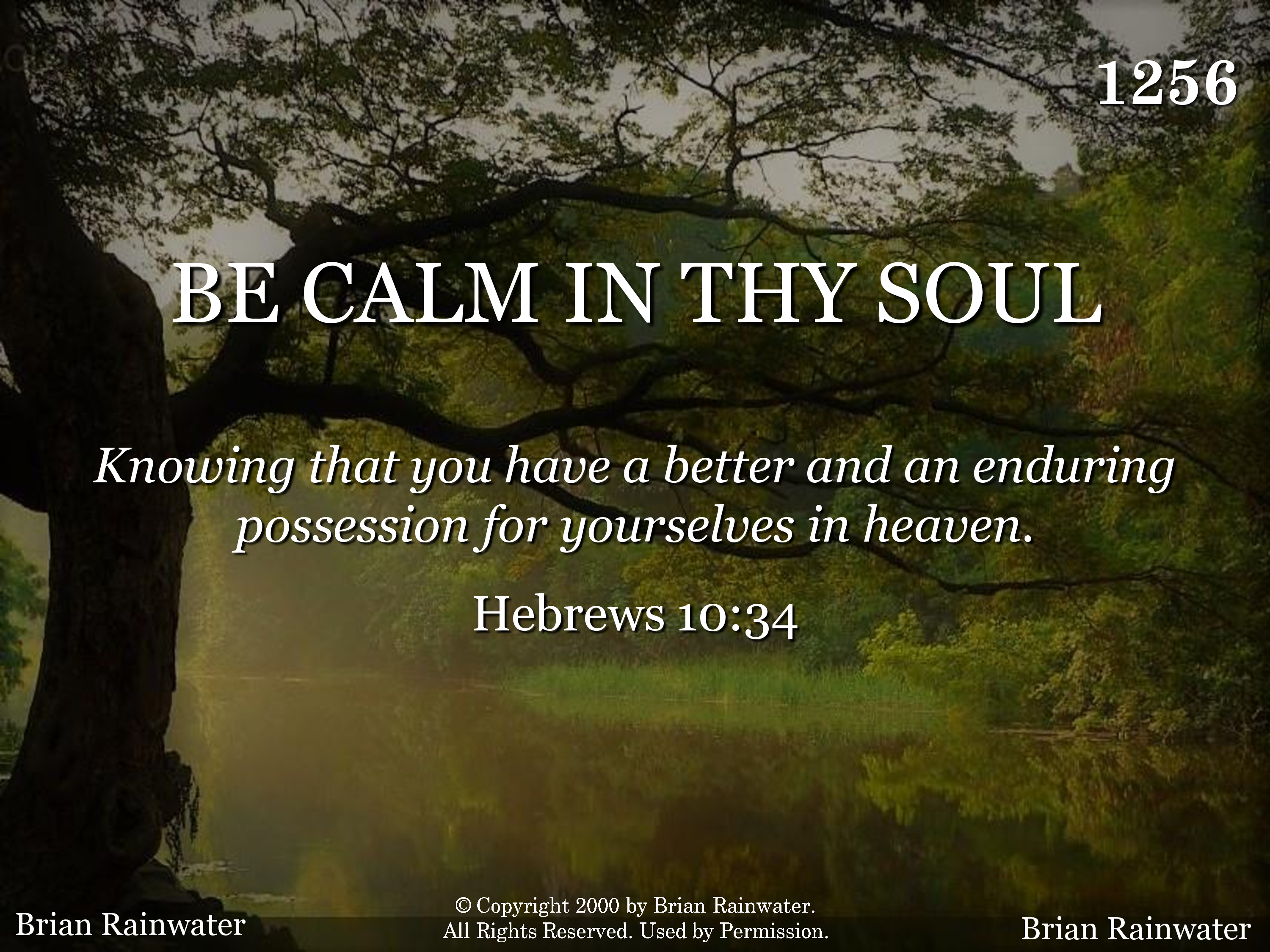 Be calm in thy soul, This world is not our goal, Lay up your treasure in that heav'nly home; When this life is o'er, We'll rest forevermore, Don't worry for tomorrow, Live in hope.
