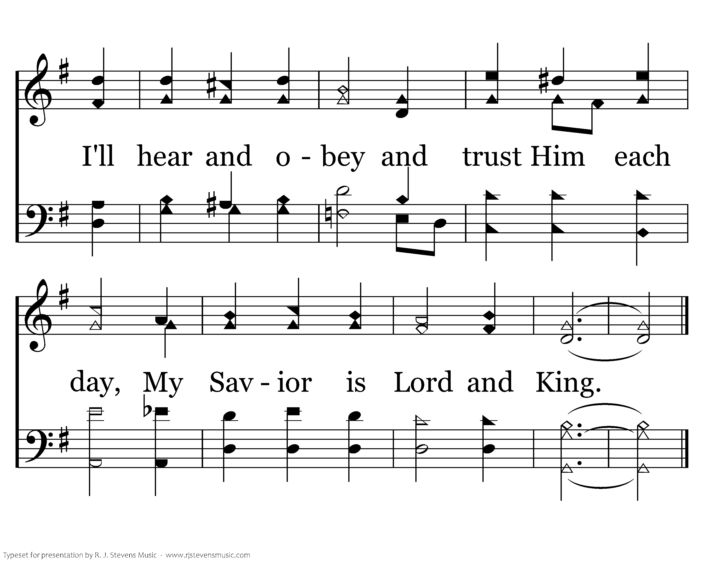 My Savior is Lord and King, I'll give Him my ev'rything; I'll hear and obey and trust Him each day, My Savior is Lord and King.