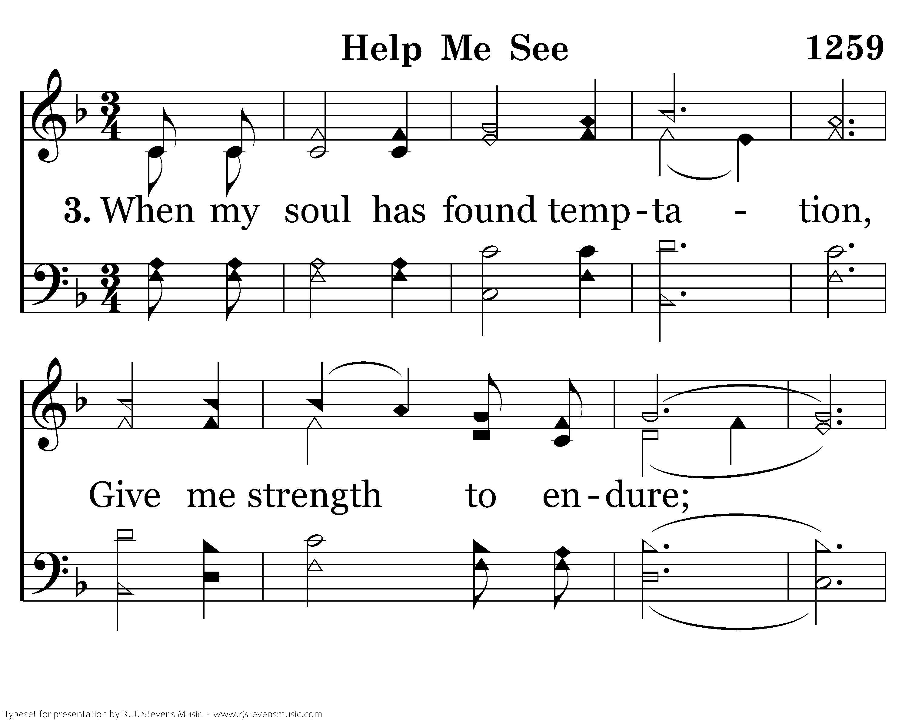 When my soul has found temptation, Give me strength to endure; Help me think of how He died, how the Lamb kept His soul clean and pure.