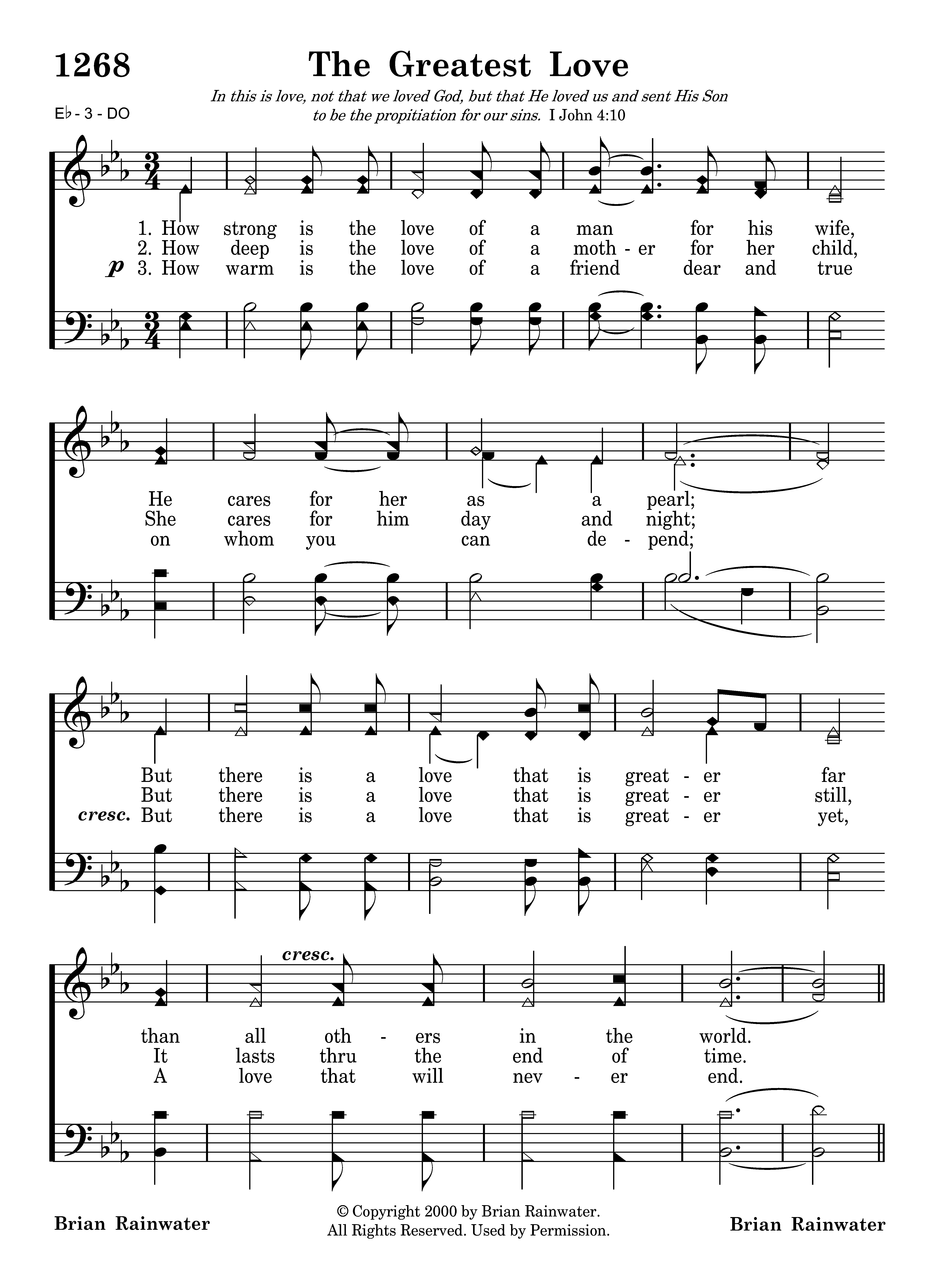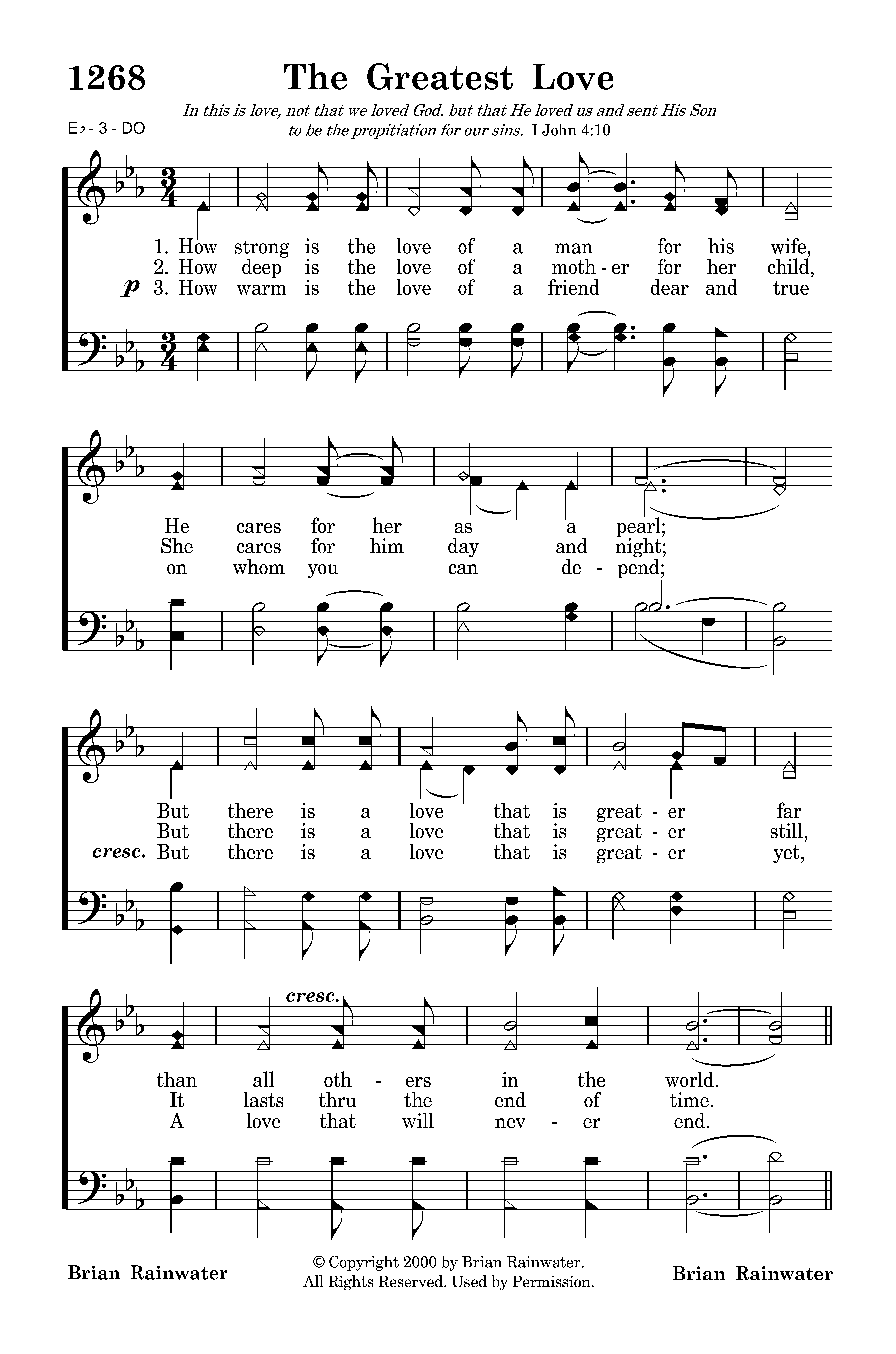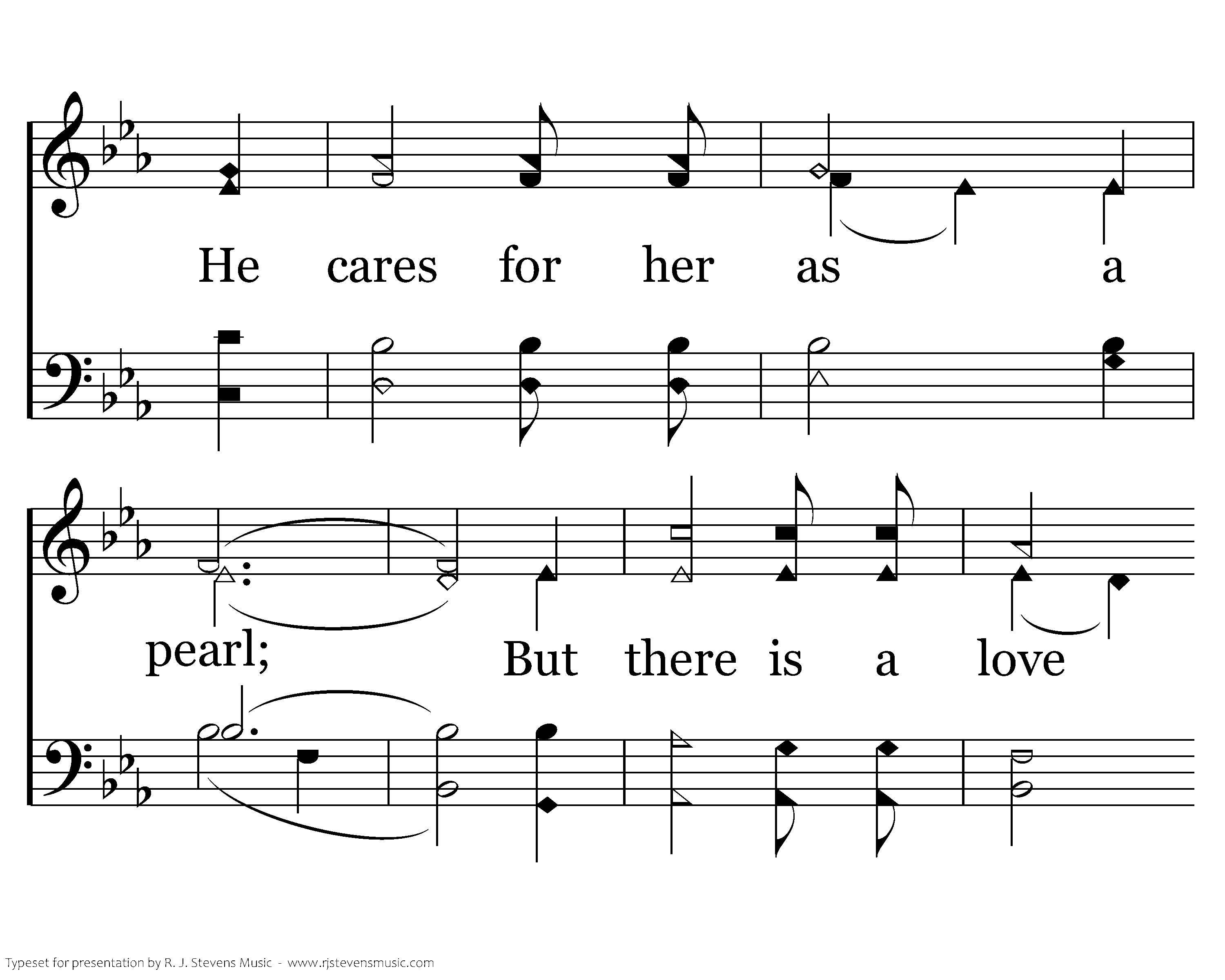 How strong is the love of a man for his wife, He cares for her as a pearl; But there is a love that is greater far than all others in the world.