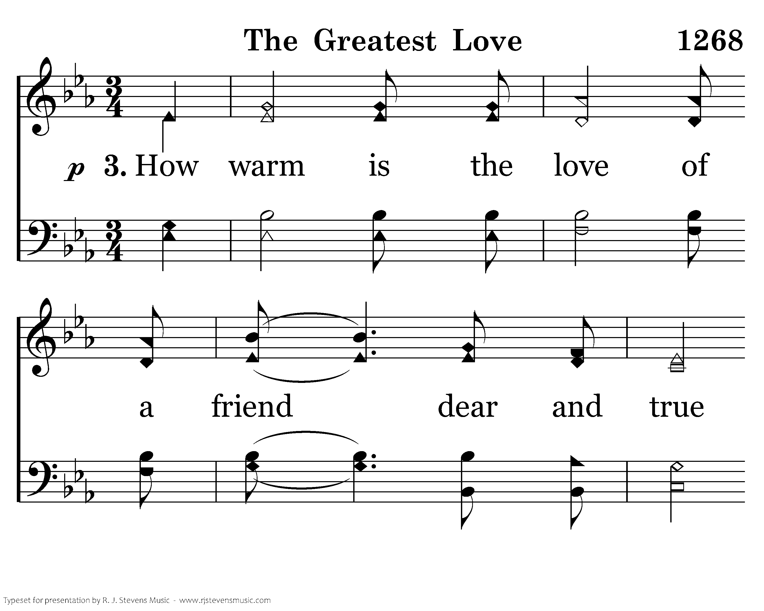 How warm is the love of a friend dear and true on whom you can depend; But there is a love that is greater yet, A love that will never end.