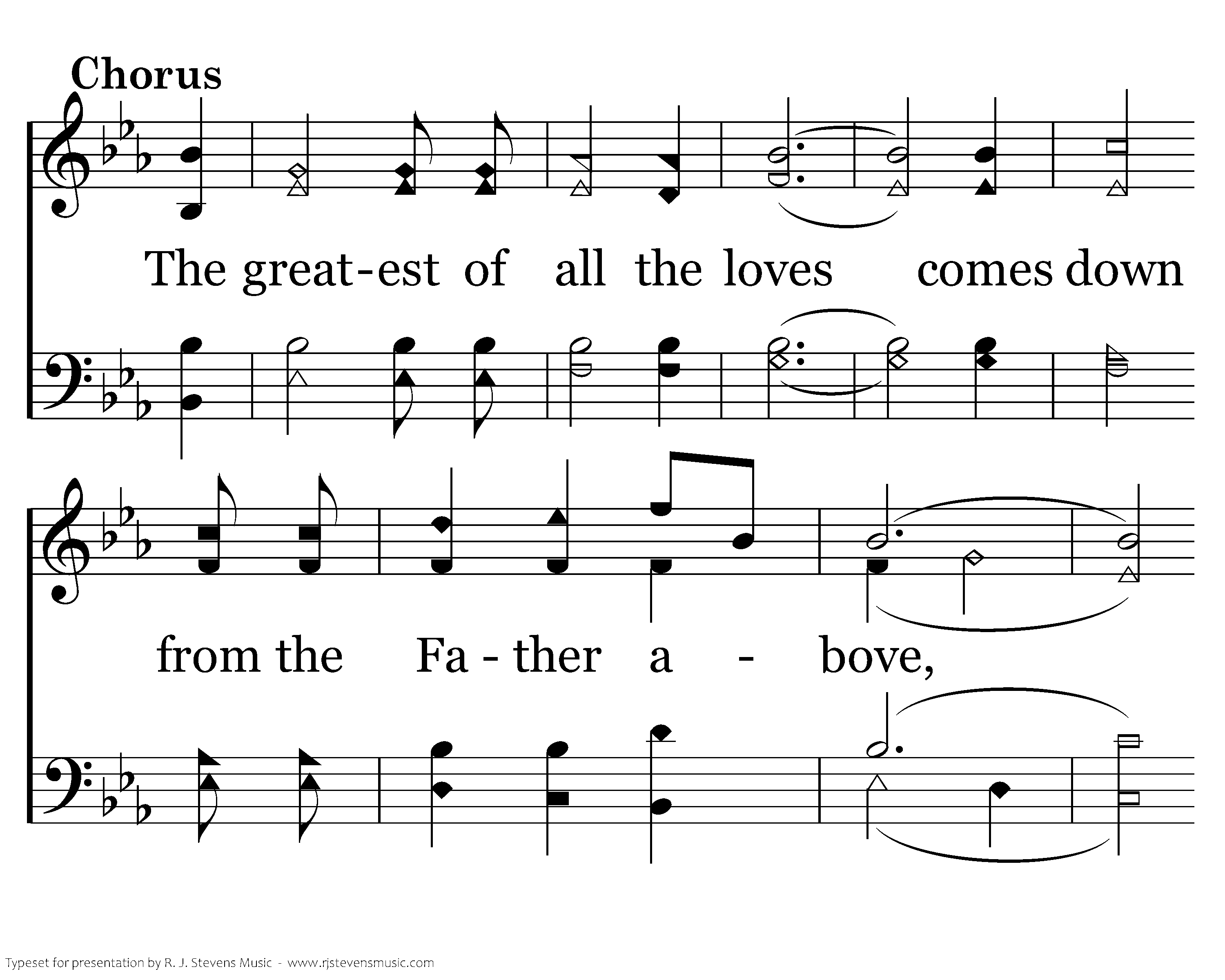 The greatest of all the loves comes down from the Father above, He gave Jesus' life as a sacrifice, It's the greatest of all the loves.