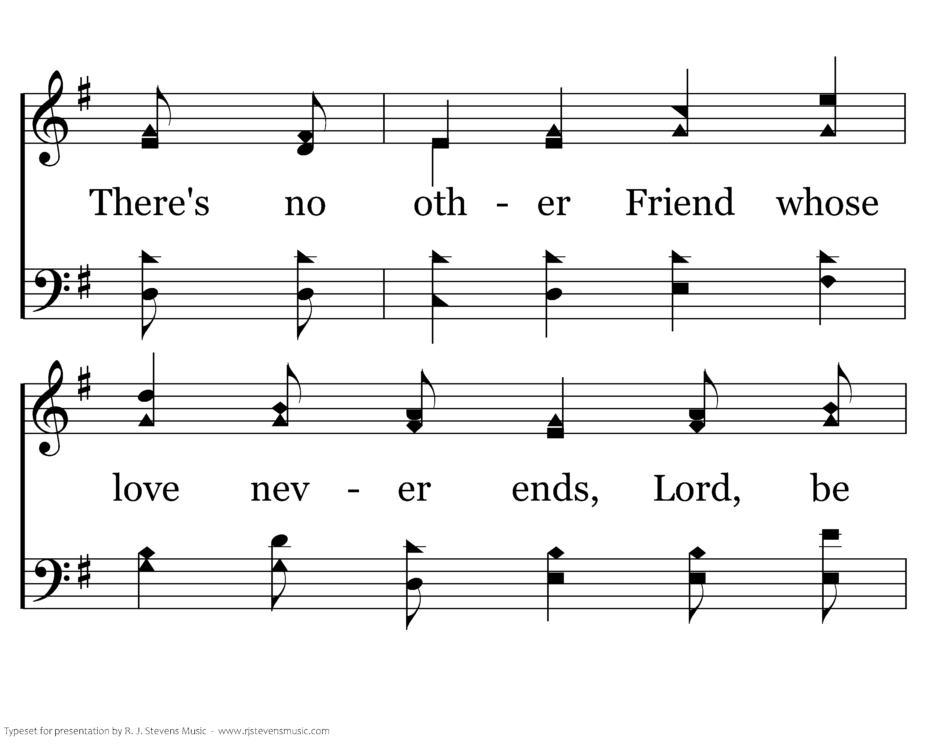 Jesus! You're the one true Light, You bring peace and joy to my heart; There's no other Friend whose love never ends, Lord, be with me, never to part. My Jesus! You are the Light of my soul, You lift me up and You give me hope, No other can cheer me so, All glory to Your name!