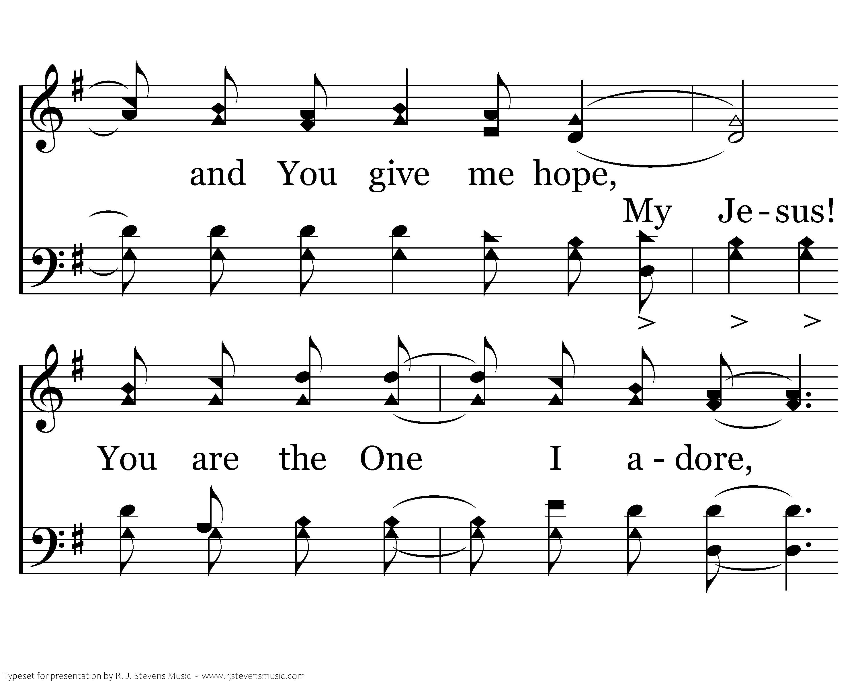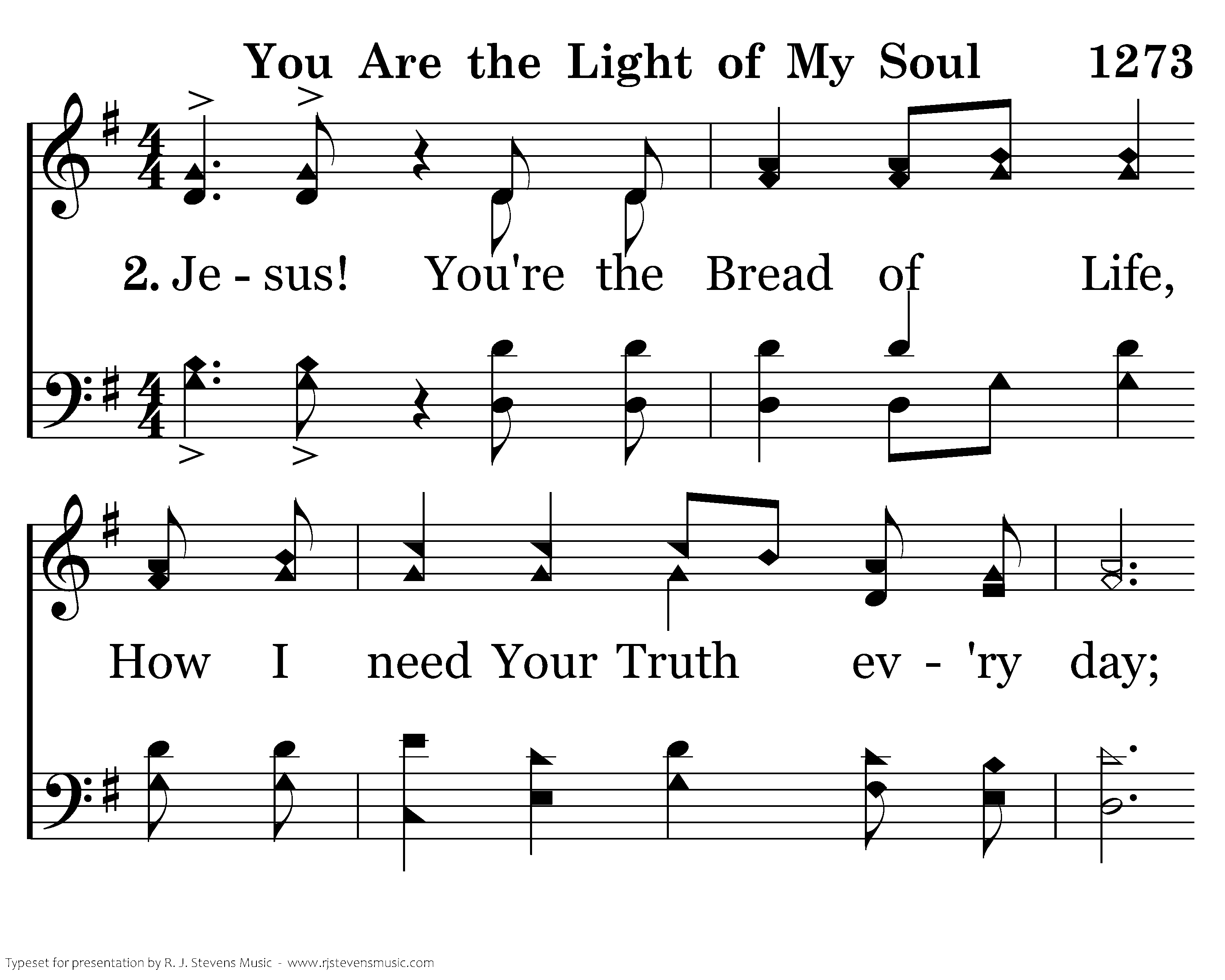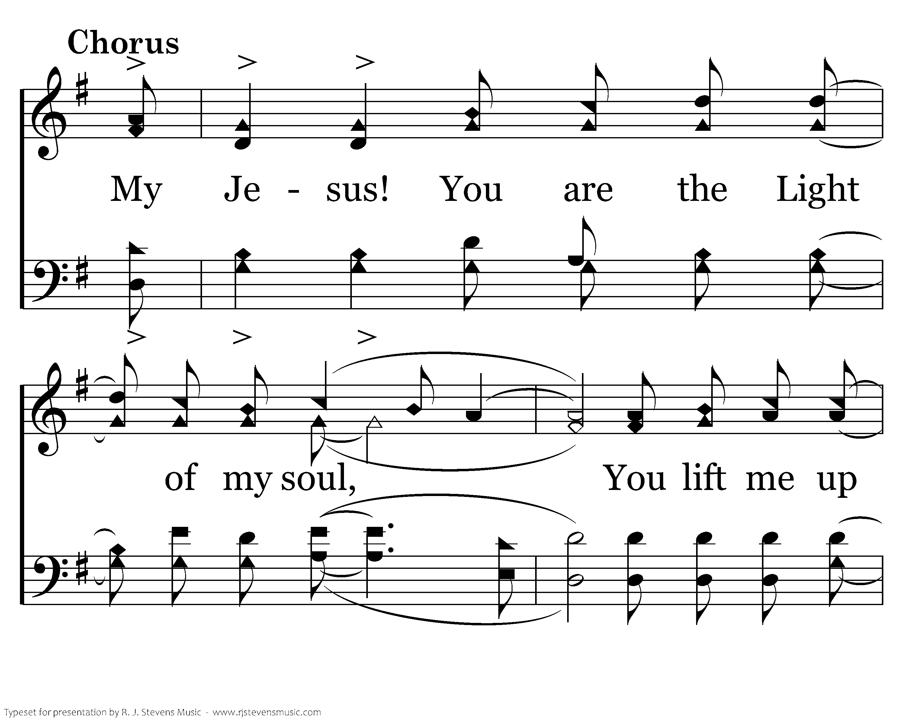 Jesus! You're the Bread of Life, How I need Your Truth ev'ry day; No more holy Word has man ever heard, I'm so glad You showed me the Way. My Jesus! You are the Light of my soul, You lift me up and You give me hope, You are the One I adore, All glo-ry to Your name!