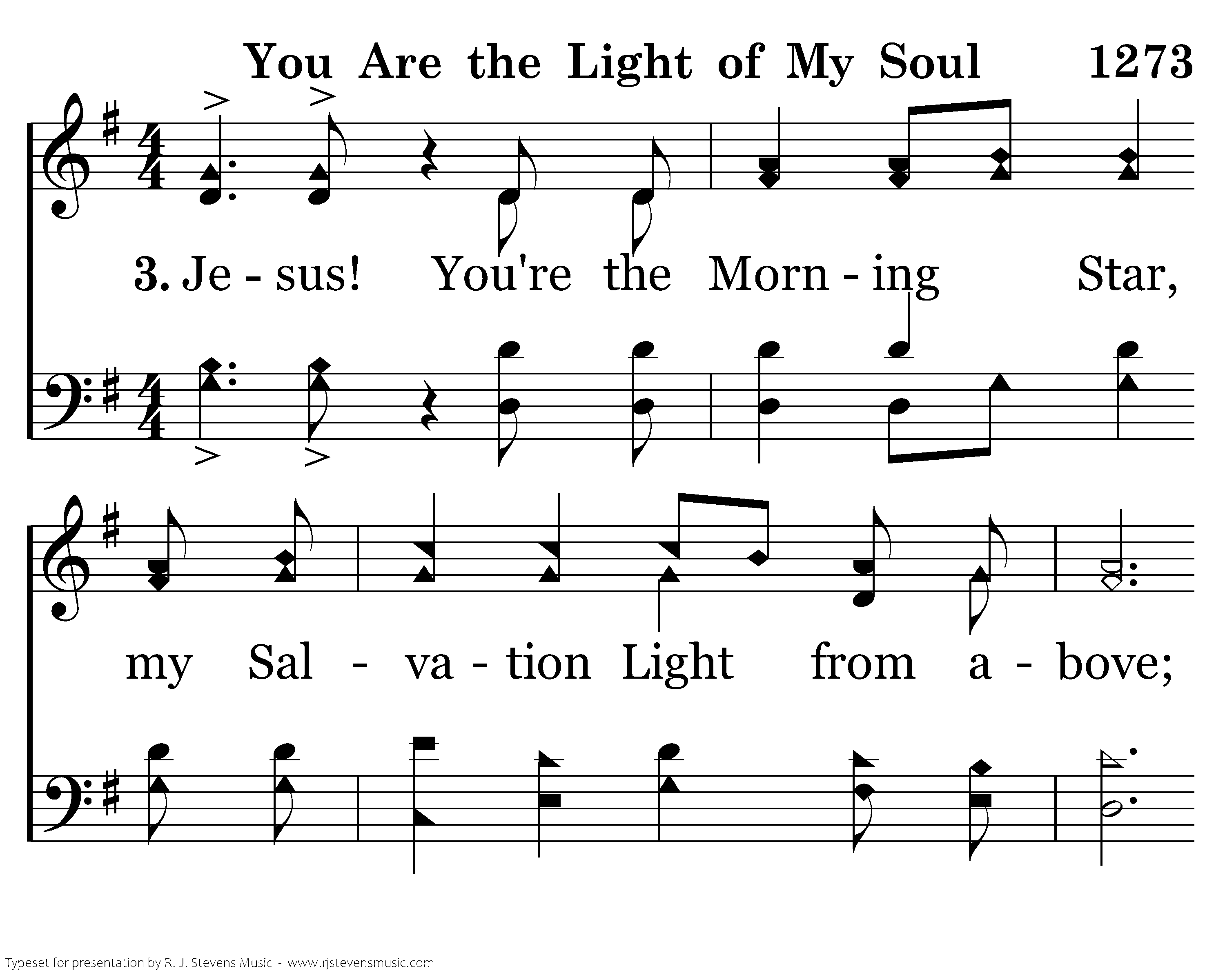 Jesus! You're the Morning Star, my Salvation Light from above; You were crucified with Your arms open wide, I can feel my dear Savior's love. My Jesus! You are the Light of my soul, You lift me up and You give me hope, No other Savior I know, All glory to Your name! All glory to Your name! All glory to Your name!