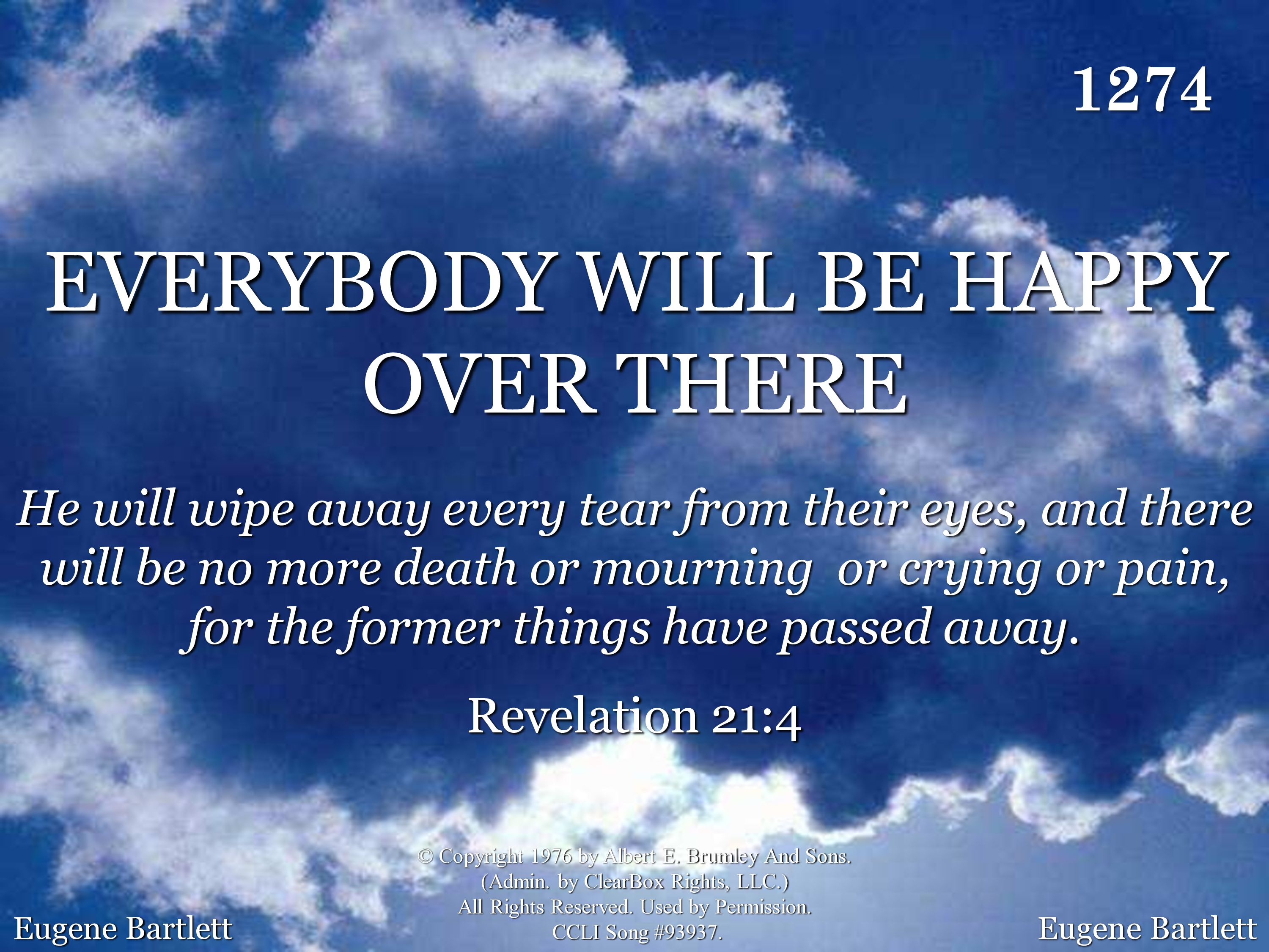 - Copyright © 1976 by Albert E. Brumley and Sons. (Admin. by Music Services, Inc.) All Rights Reserved. Used by Permission.