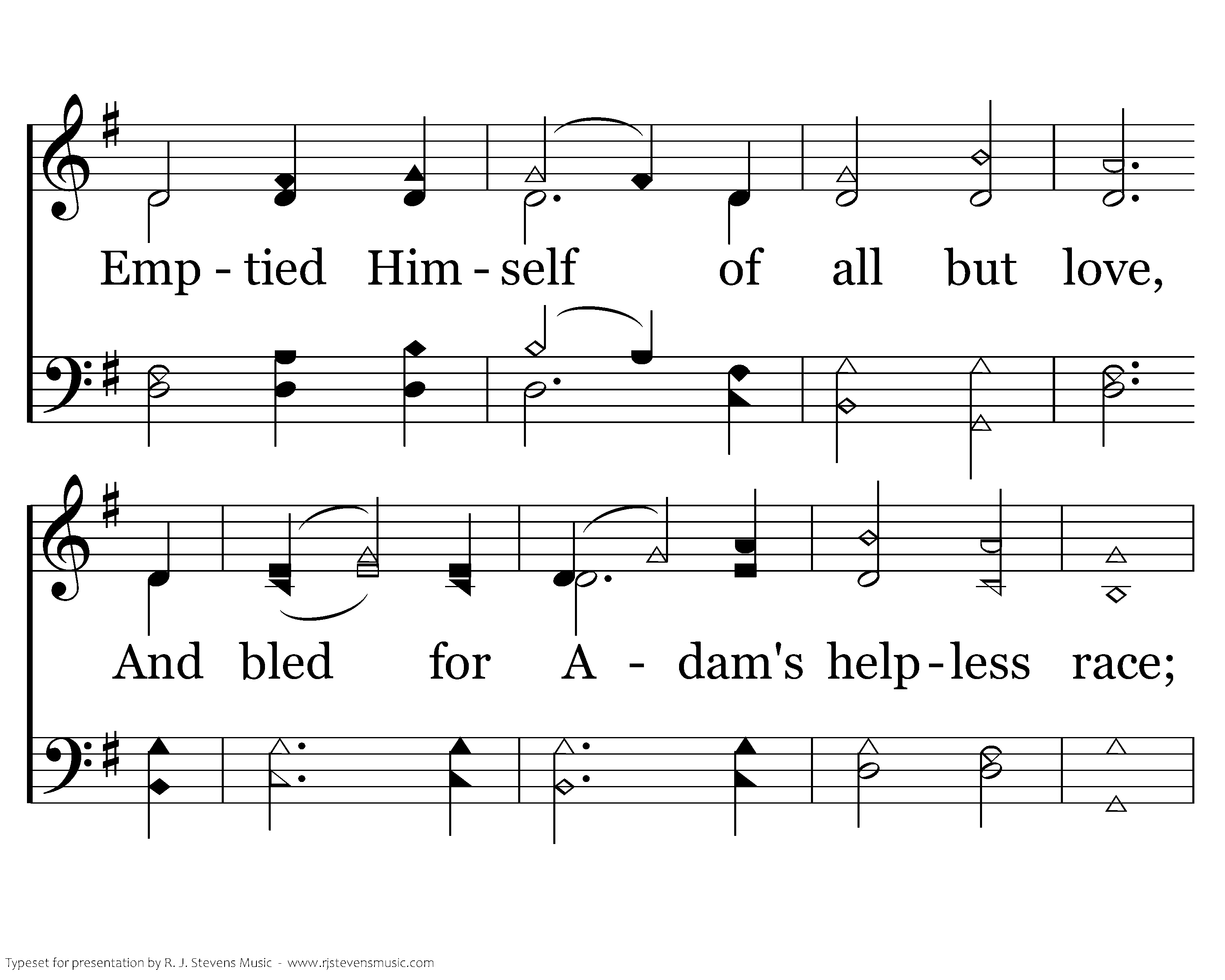 He left His Father's throne above, So free, so infinite His grace; Emptied Himself of all but love, And bled for Adam's helpless race; 'Tis mercy all, immense and free; For, O my God, it found out me.