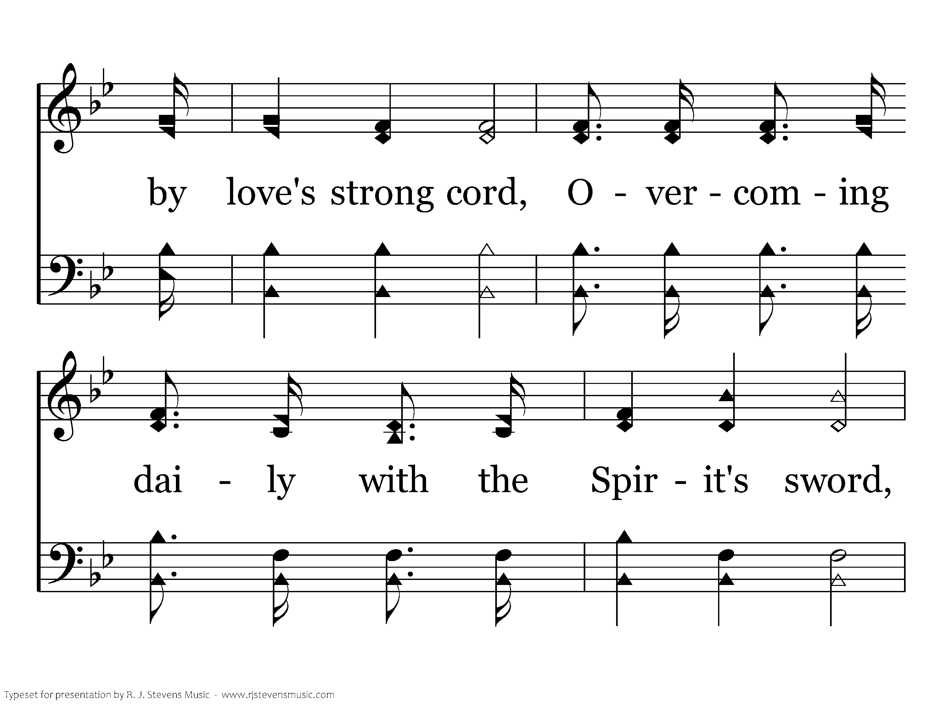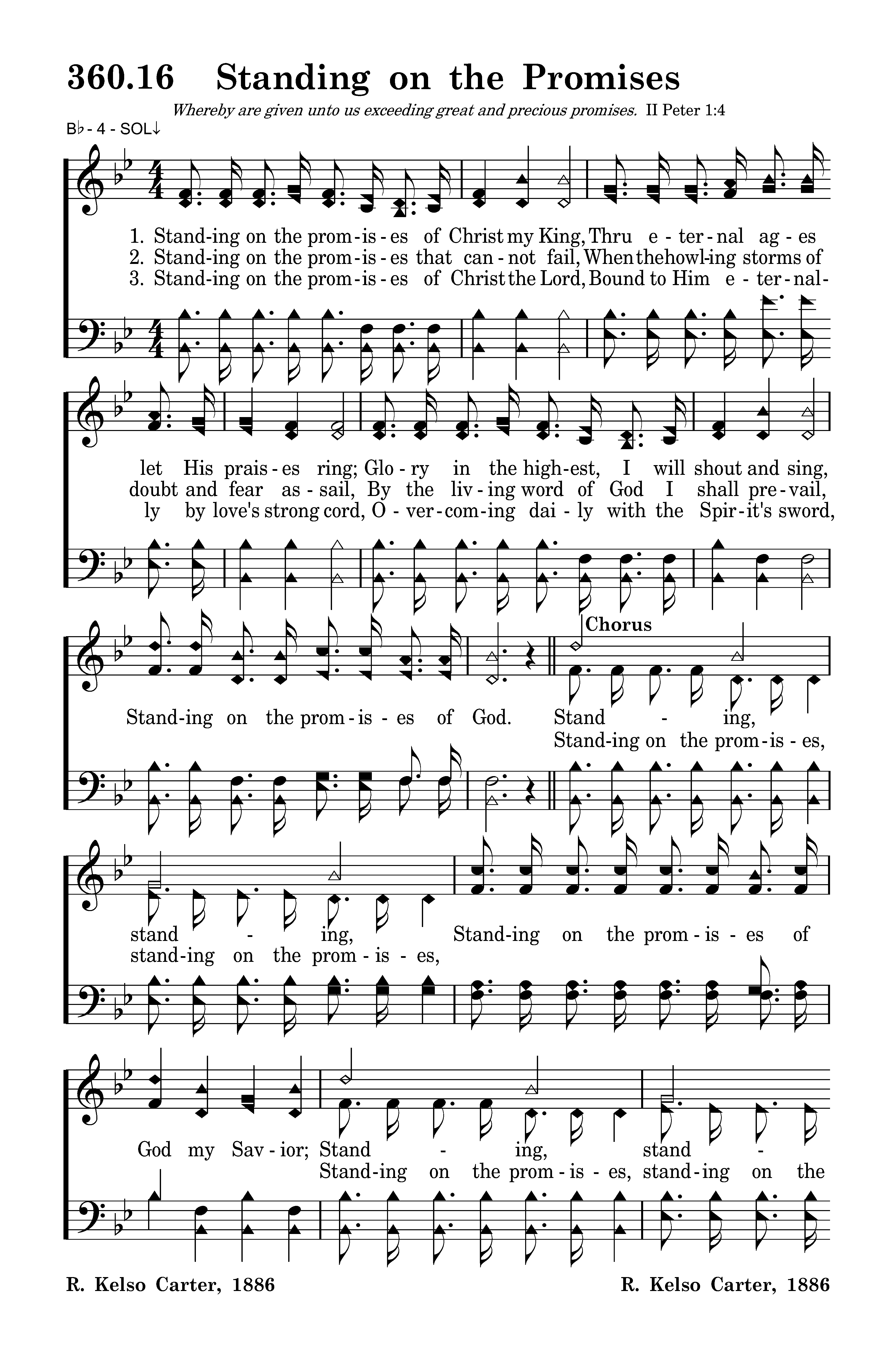 Standing on the promises of Christ the Lord, Bound to Him eternally by love's strong cord, Overcoming daily with the Spirit's sword,