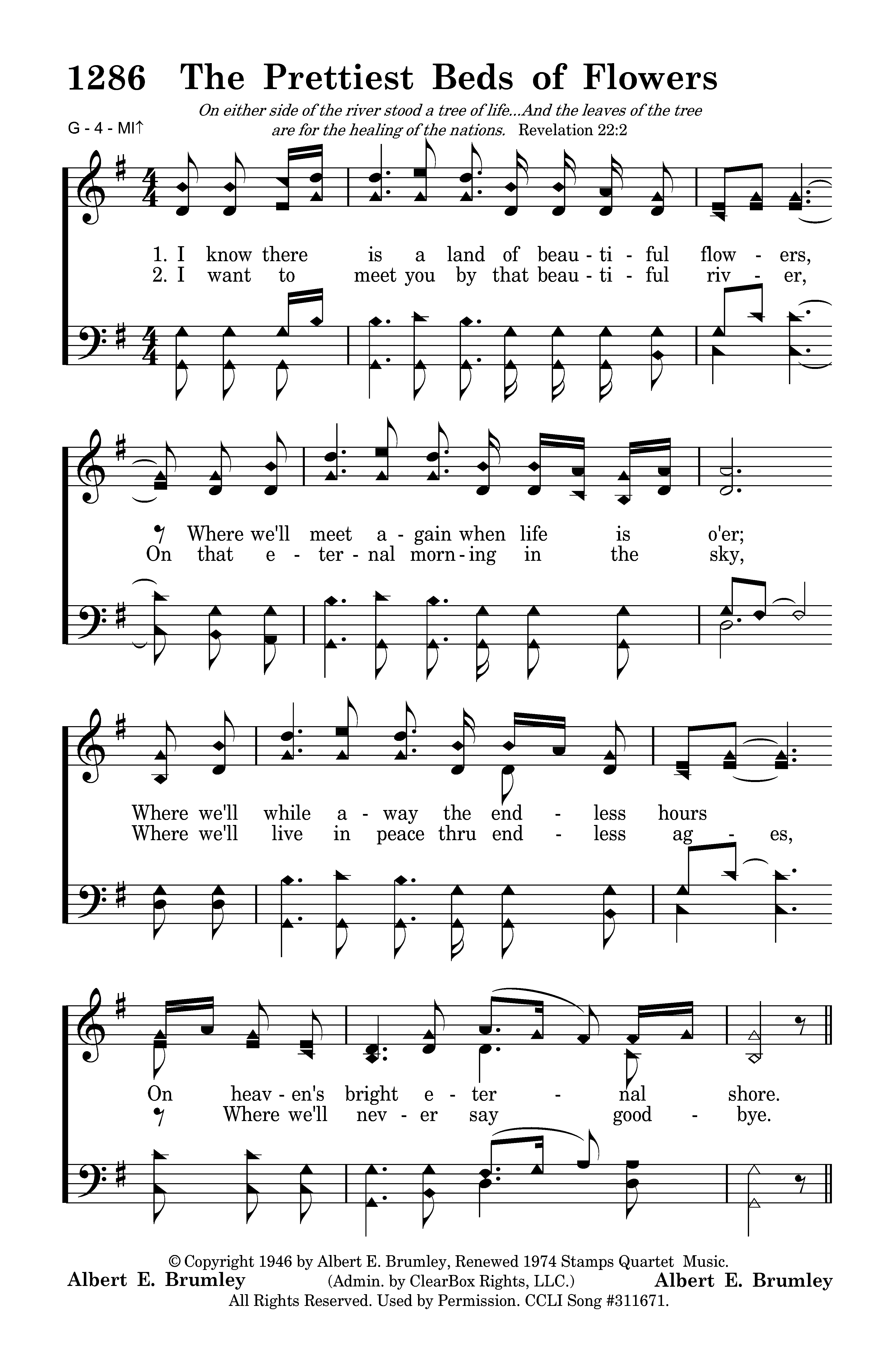 - Copyright © 1946 Albert E. Brumley. Renewed 1974 Stamps Quartet Music. (Admin. by ClearBox Rights, LLC.) All Rights Reserved. Used by Permission.