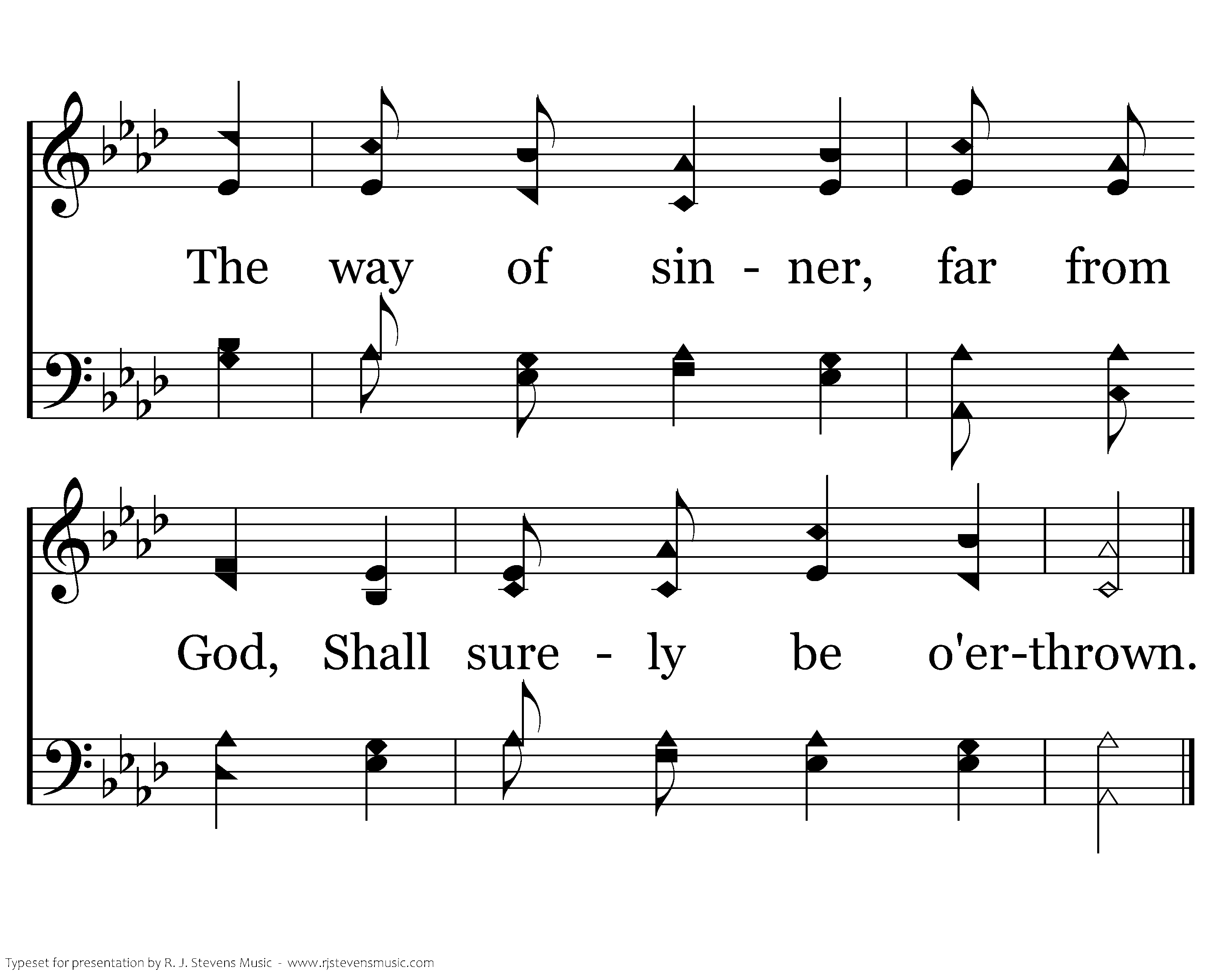 The wicked, like the driven chaff, Are blown across the land; They shall not gather with the just Nor in the judgment stand.