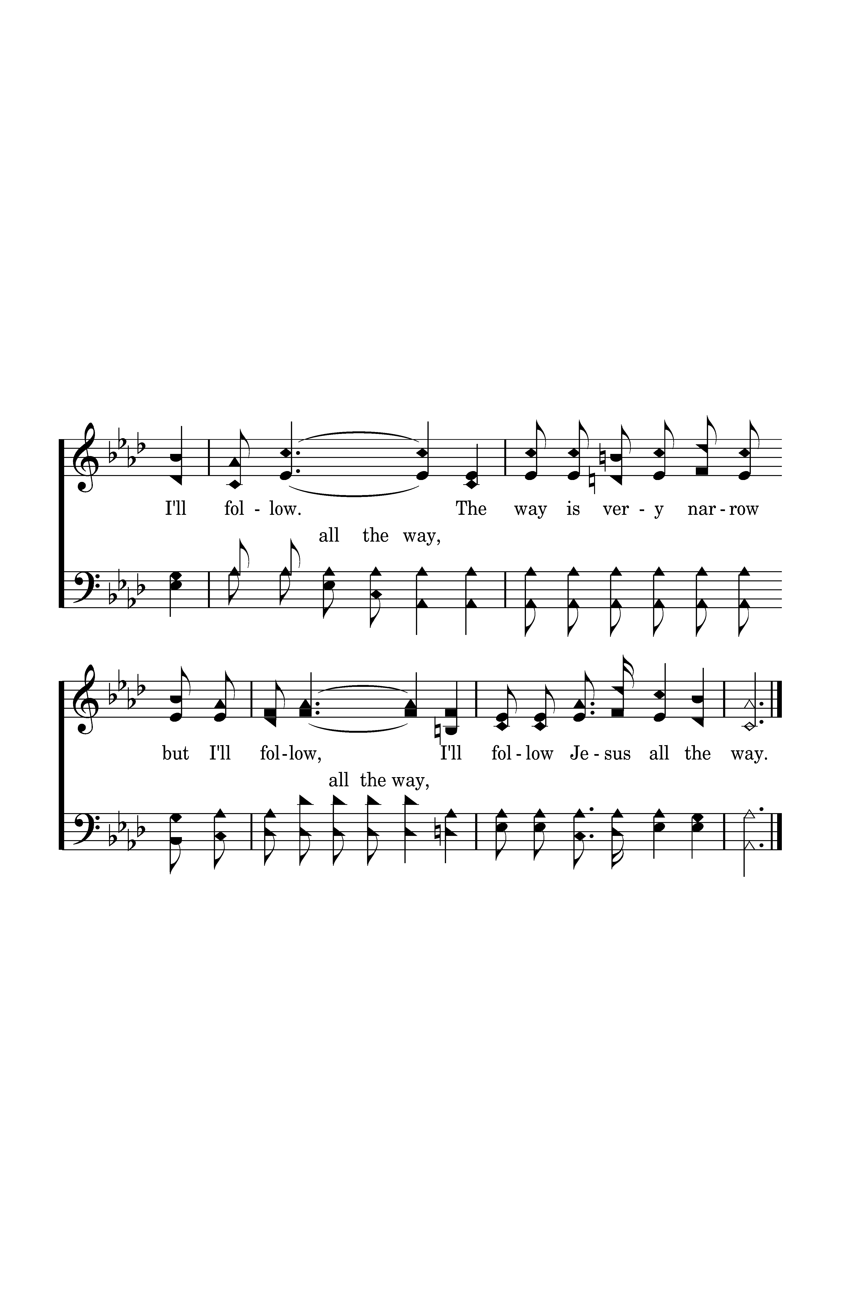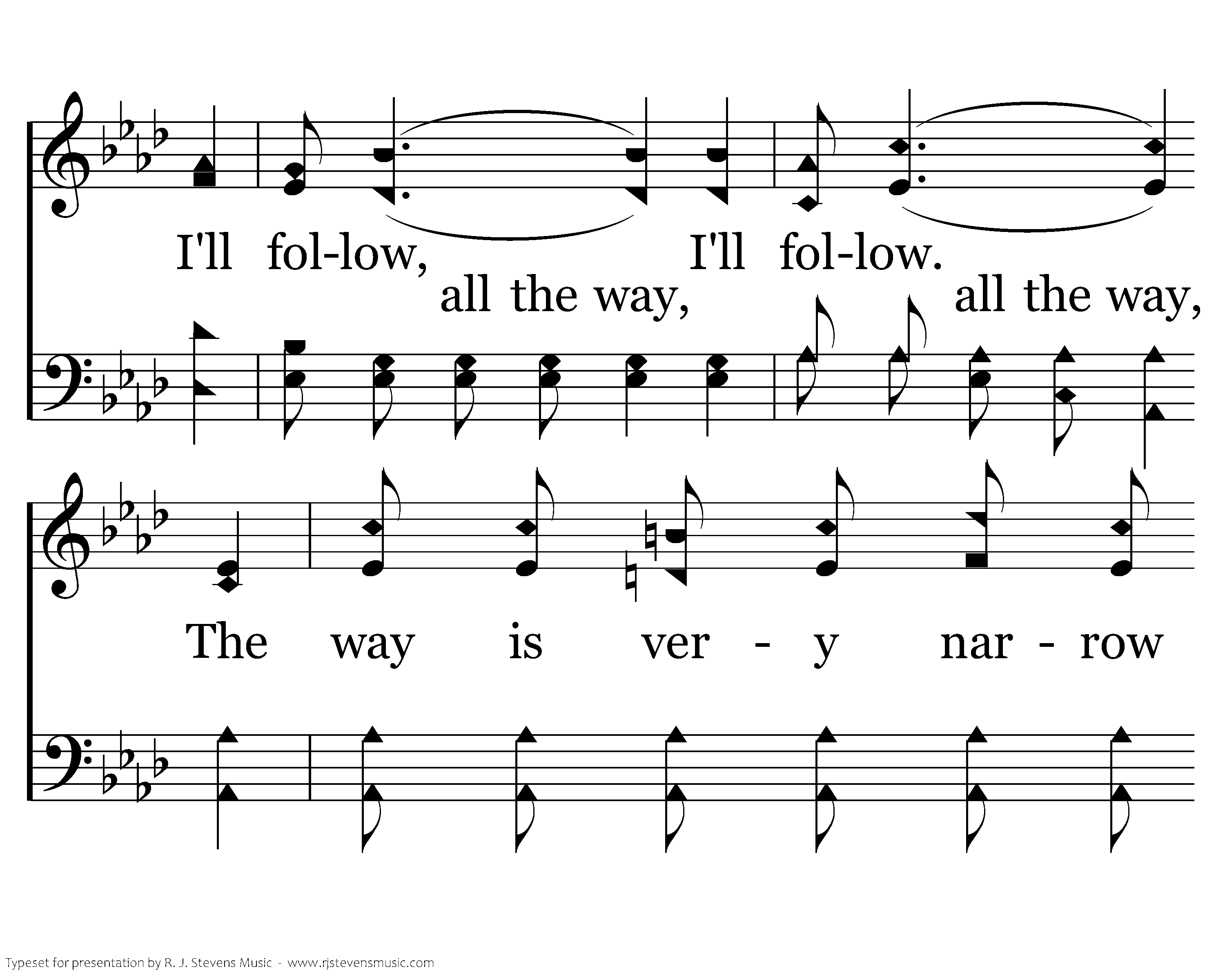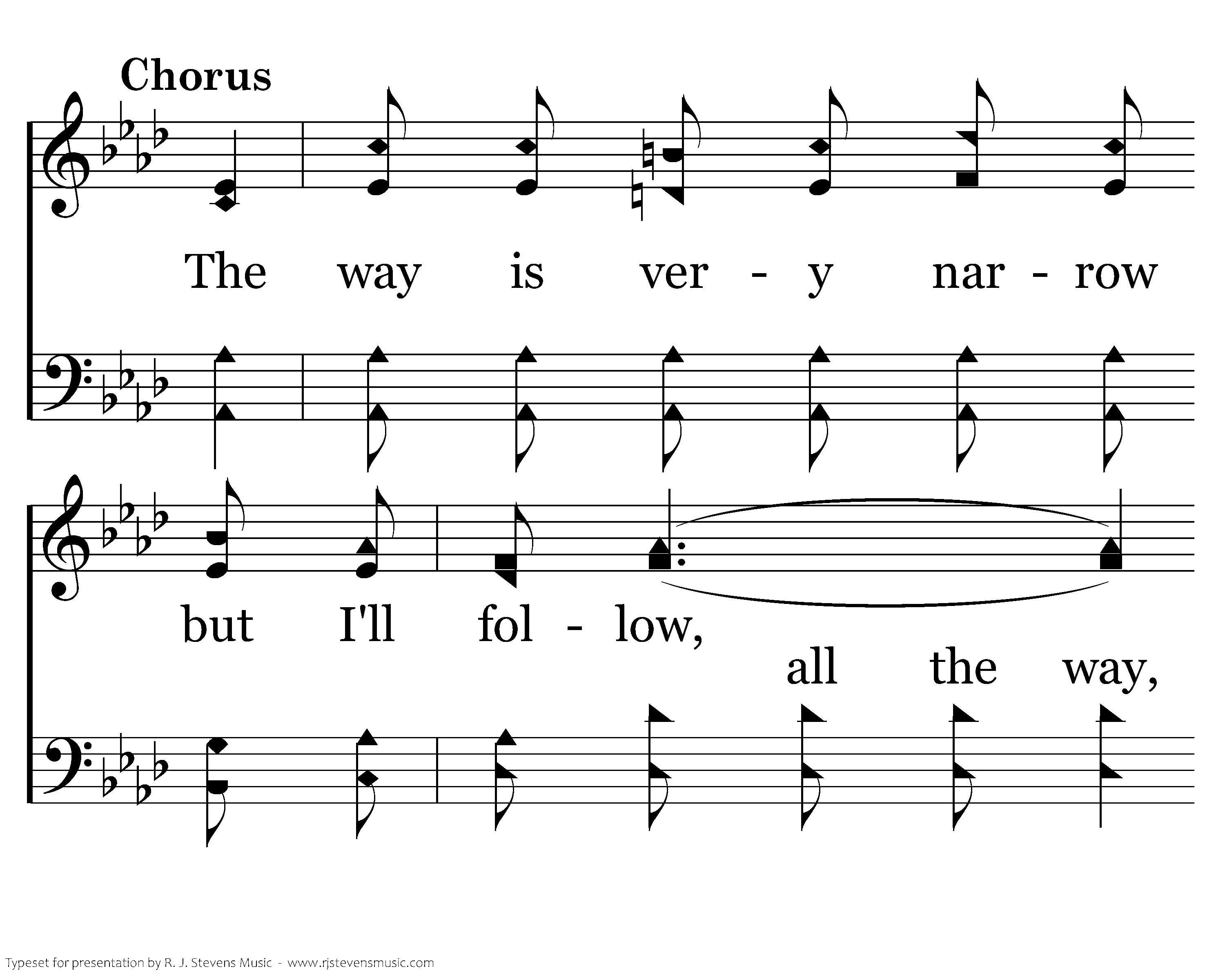 The way is very narrow but I'll follow, I'll follow, I'll follow. The way is very narrow but I'll follow, I'll follow Jesus all the way.