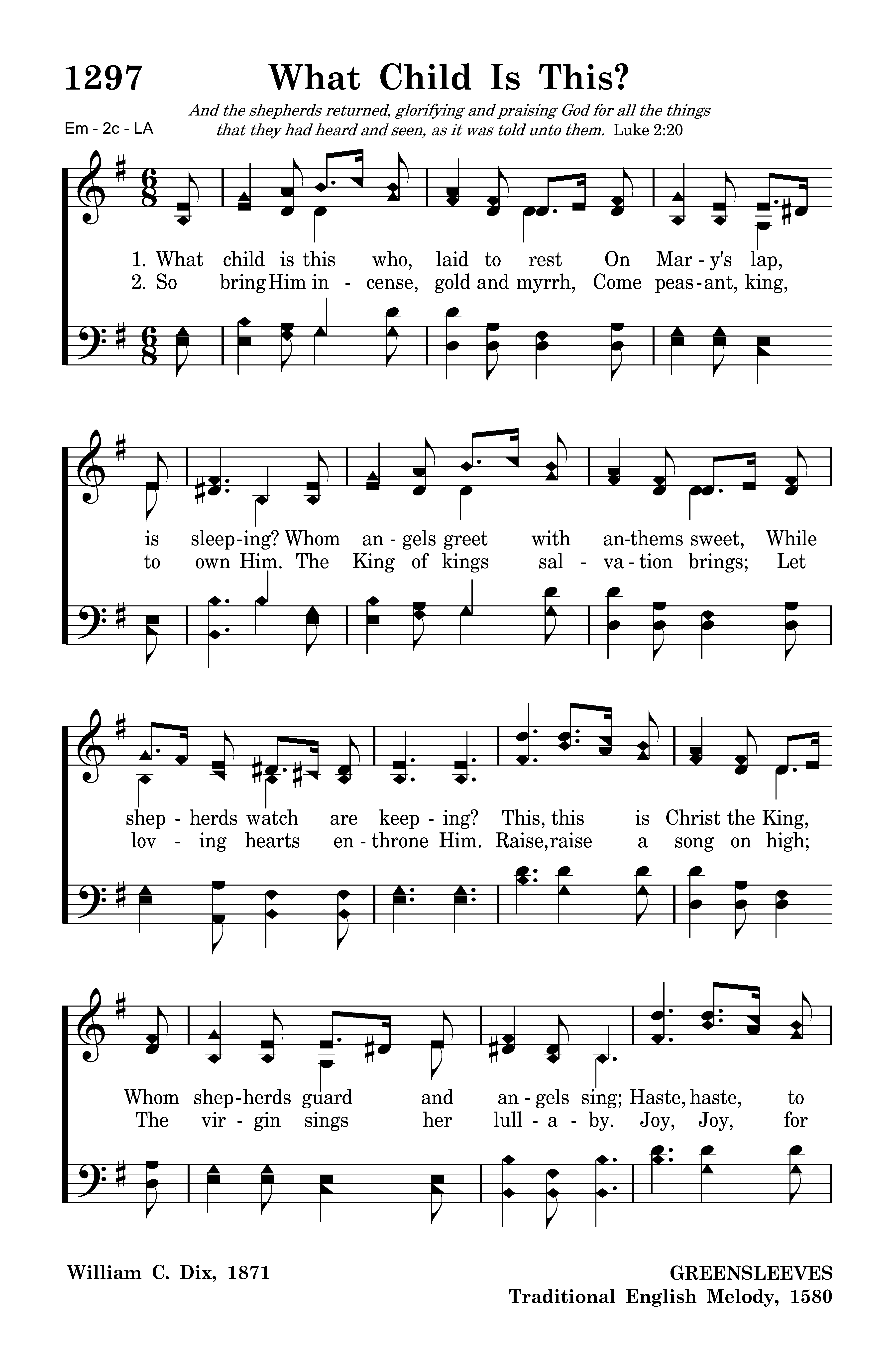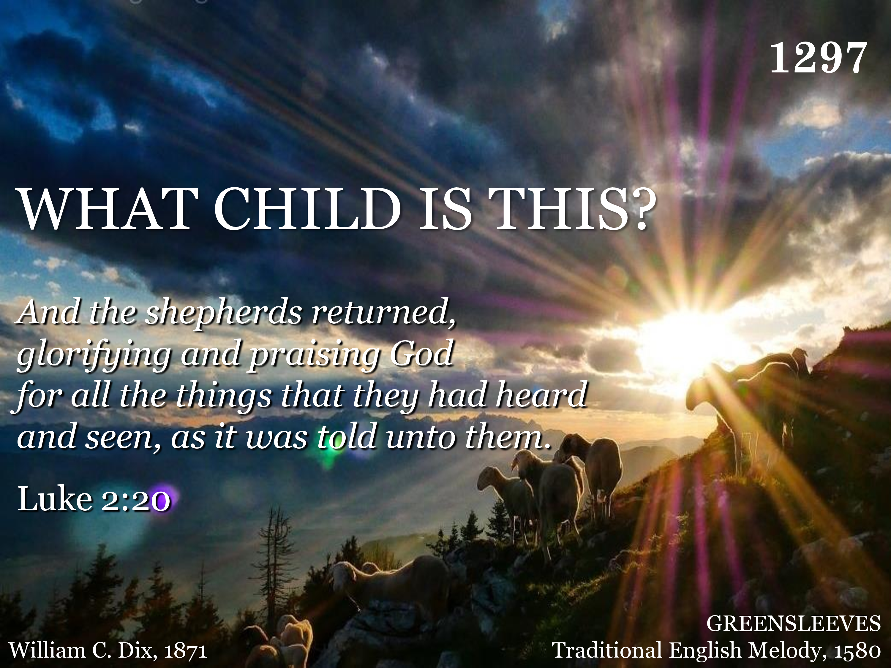 What child is this who, laid to rest On Mary's lap, is sleeping? Whom angels greet with anthems sweet, While shepherds watch are keeping? This, this is Christ the King, Whom shepherds guard and angels sing; Haste, haste, to bring Him laud, The babe, the son of Mary.