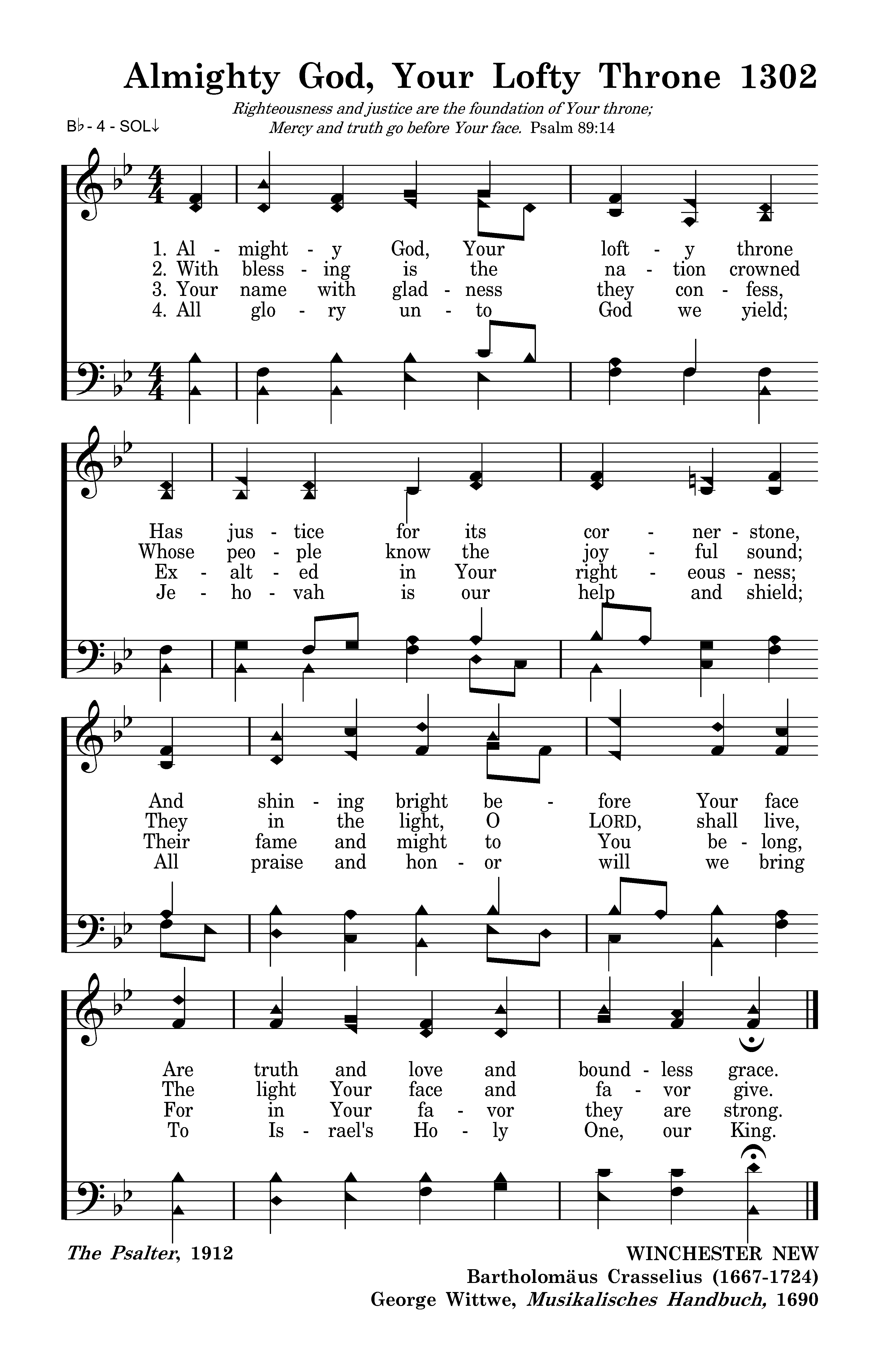 Almighty God, Your lofty throne Has justice for its cornerstone, And shining bright before Your face Are truth and love and boundless grace.