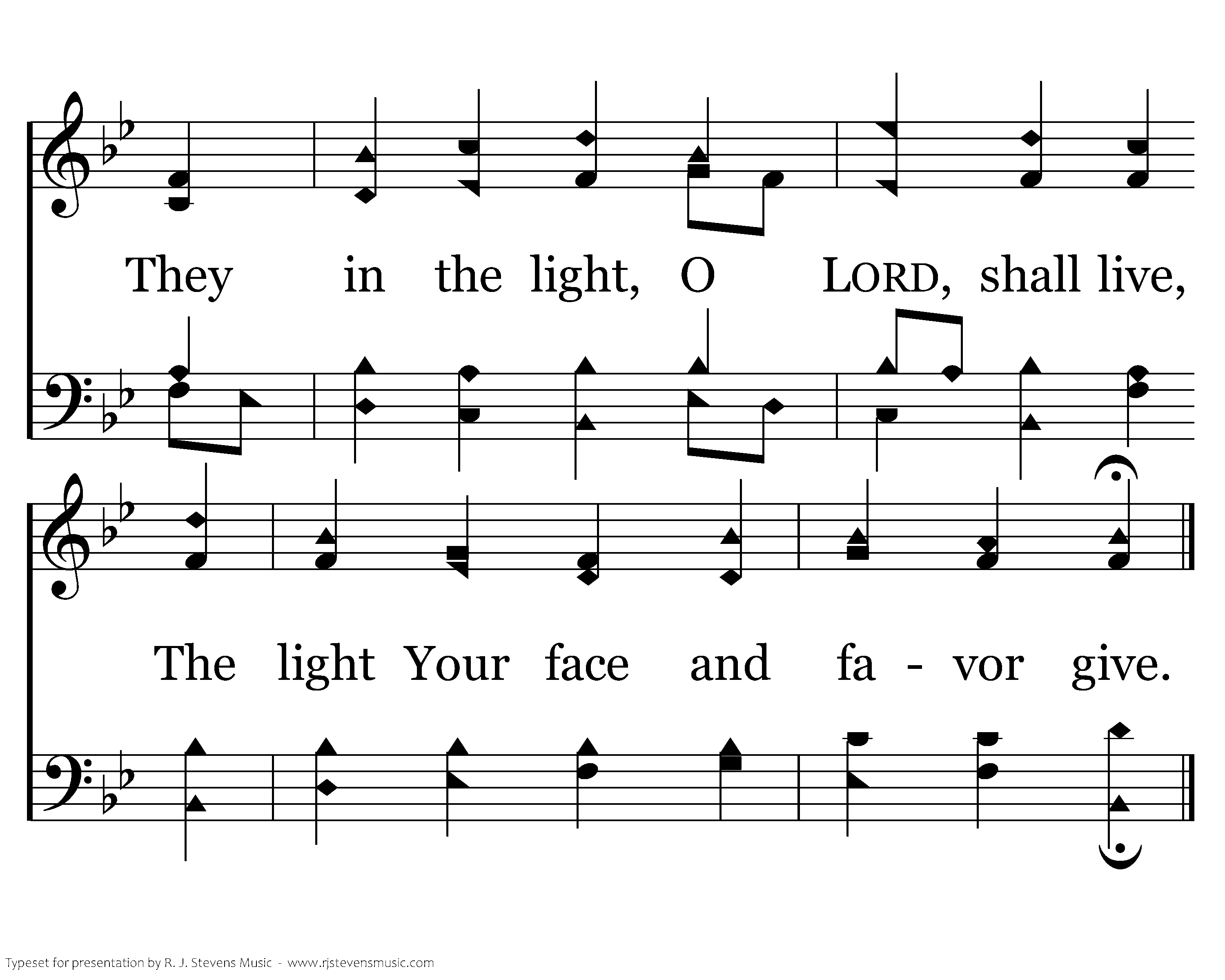 With blessing is the nation crowned Whose people know the joyful sound; They in the light, O LORD, shall live, The light Your face and favor give.