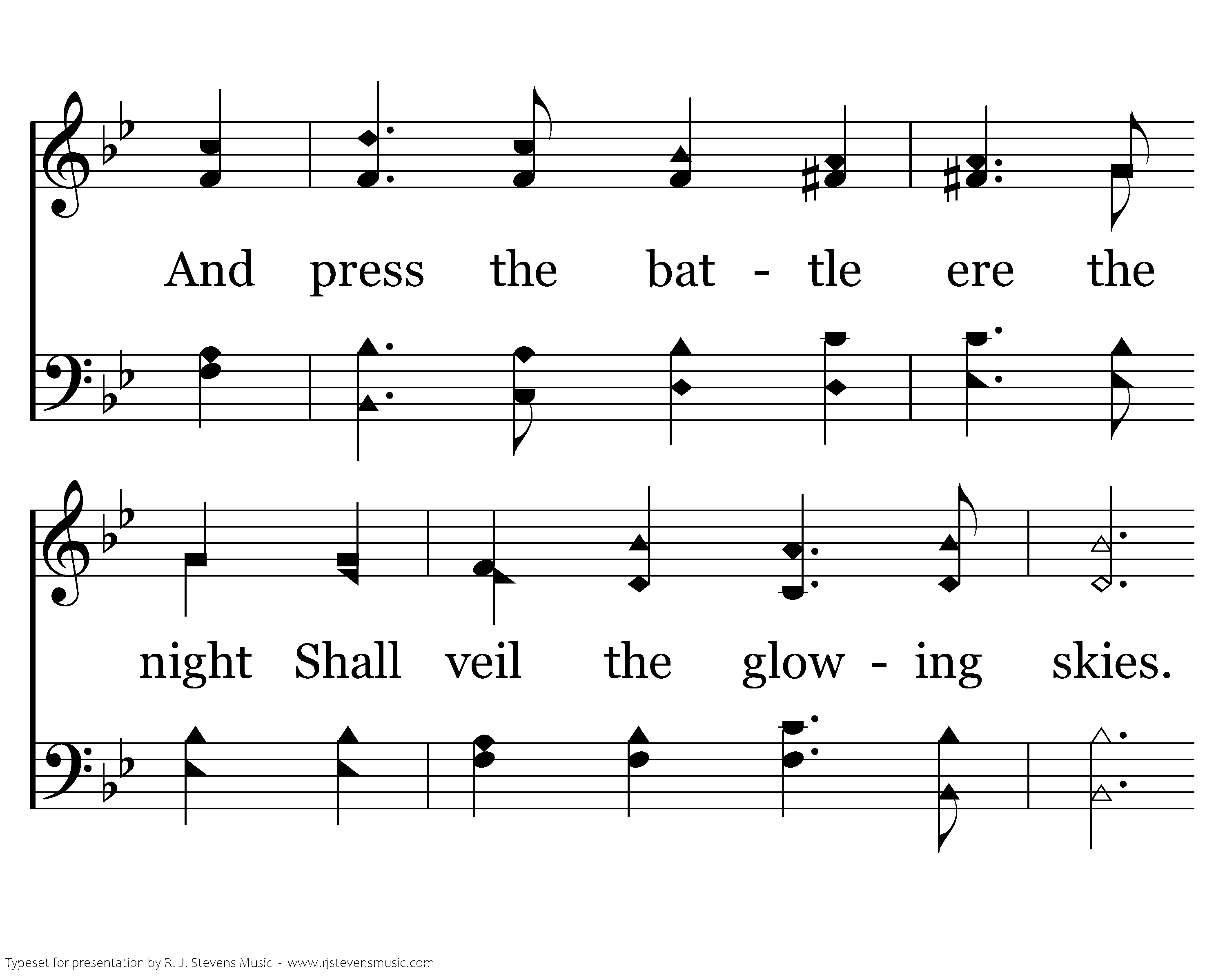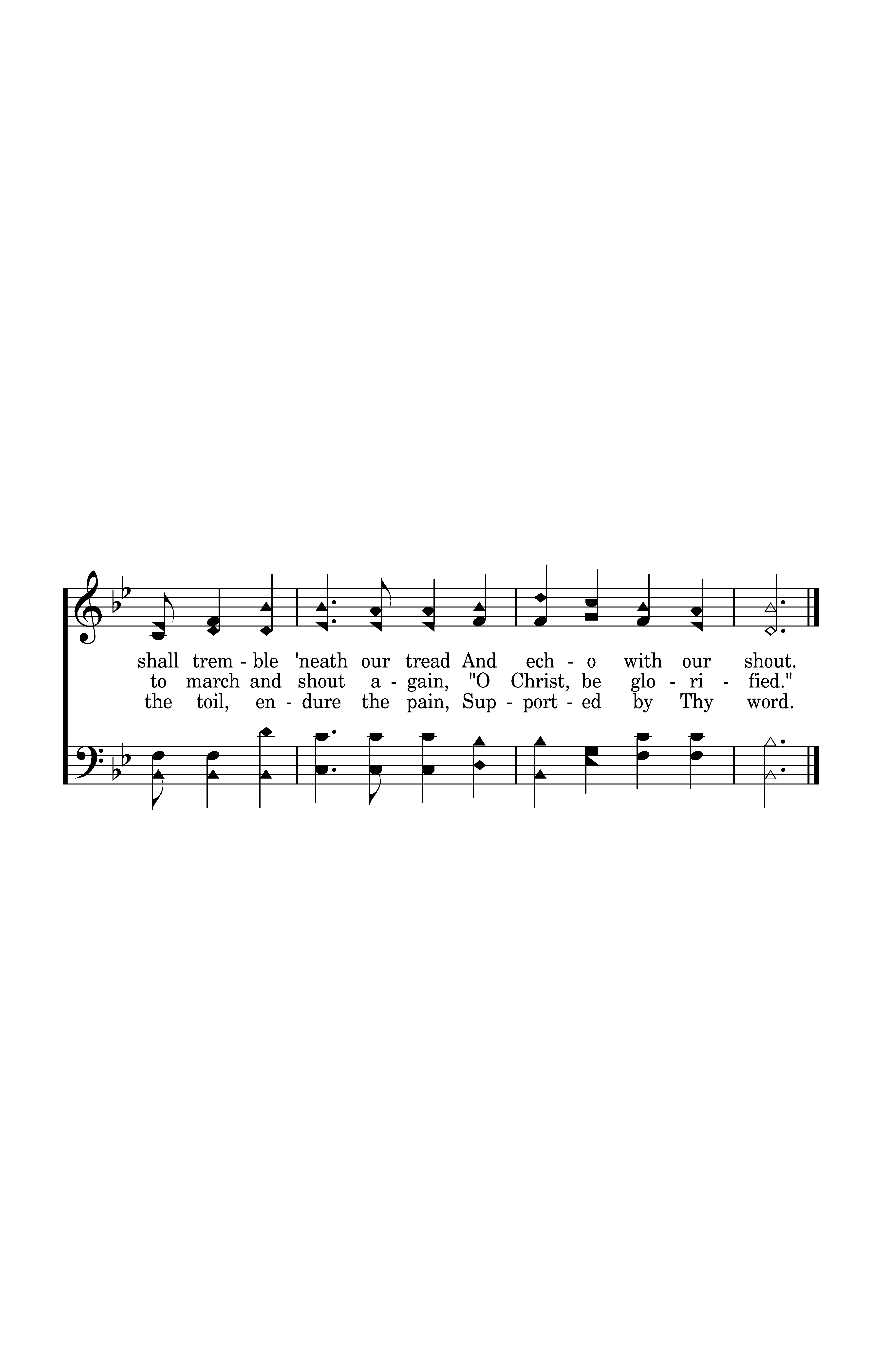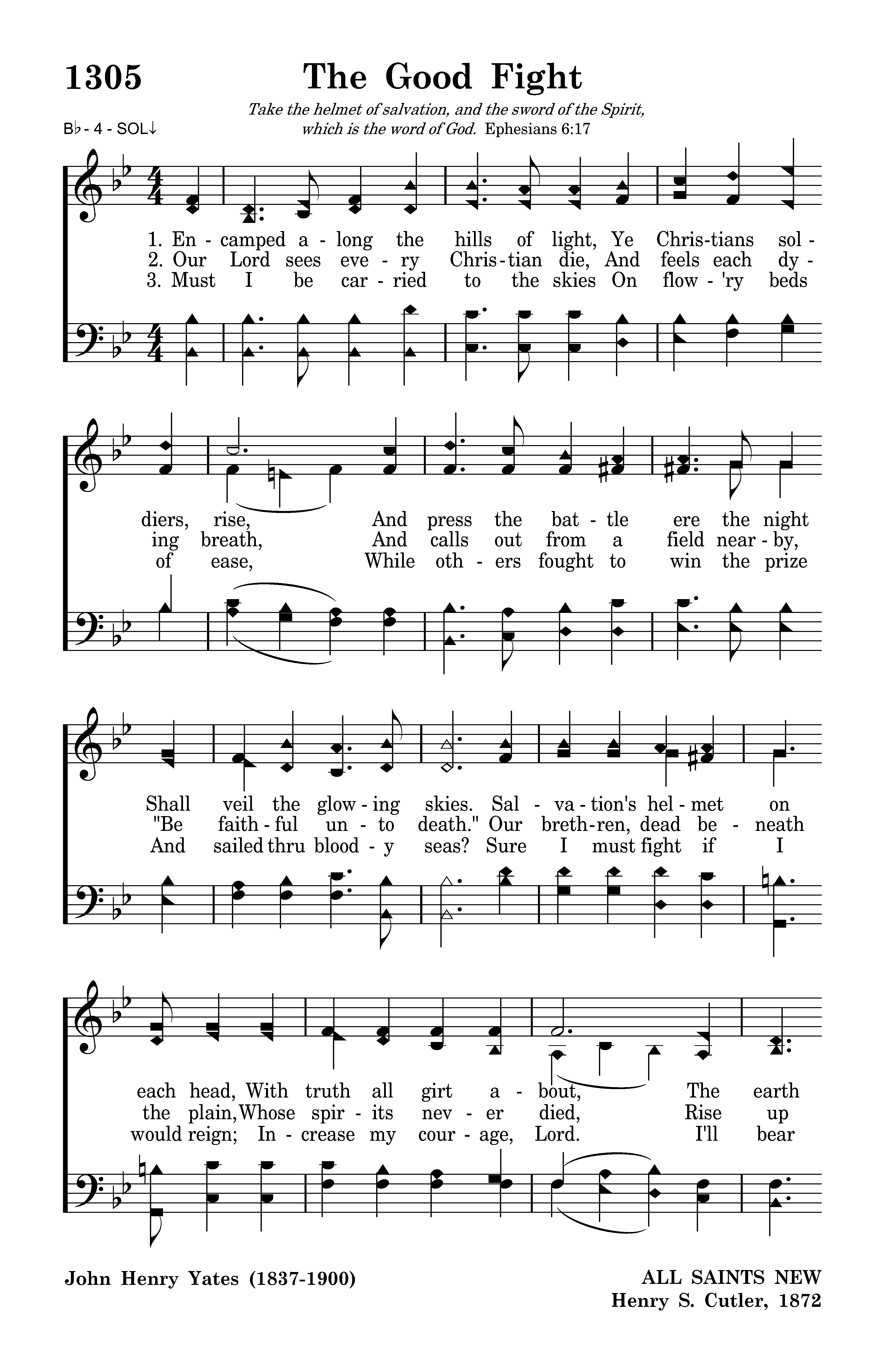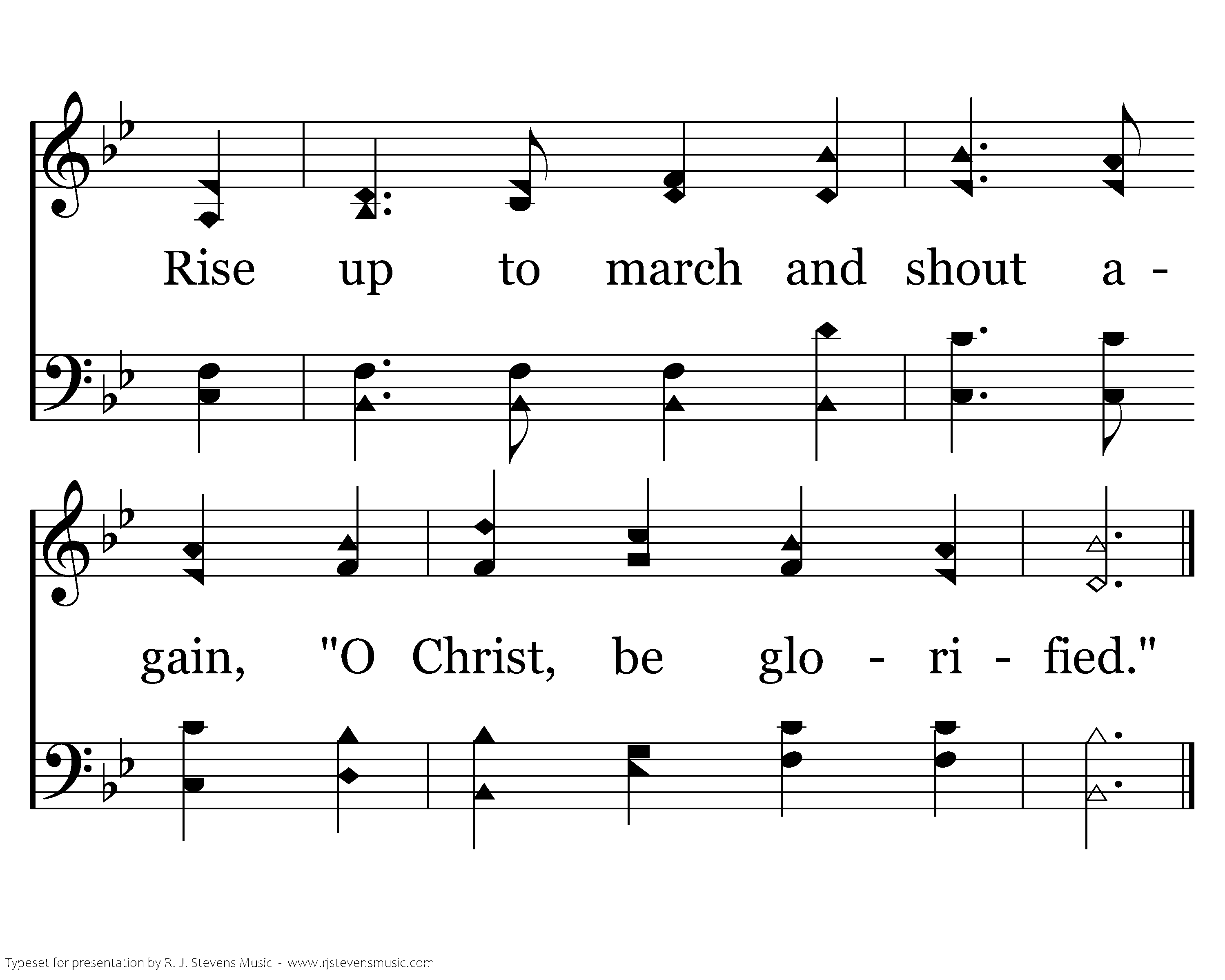 Our Lord sees every Christian die, And feels each dying breath, And calls out from a field nearby, "Be faithful unto death." Our brethren, dead beneath the plain, Whose spirits never died, Rise up to march and shout again, "O Christ, be glorified."