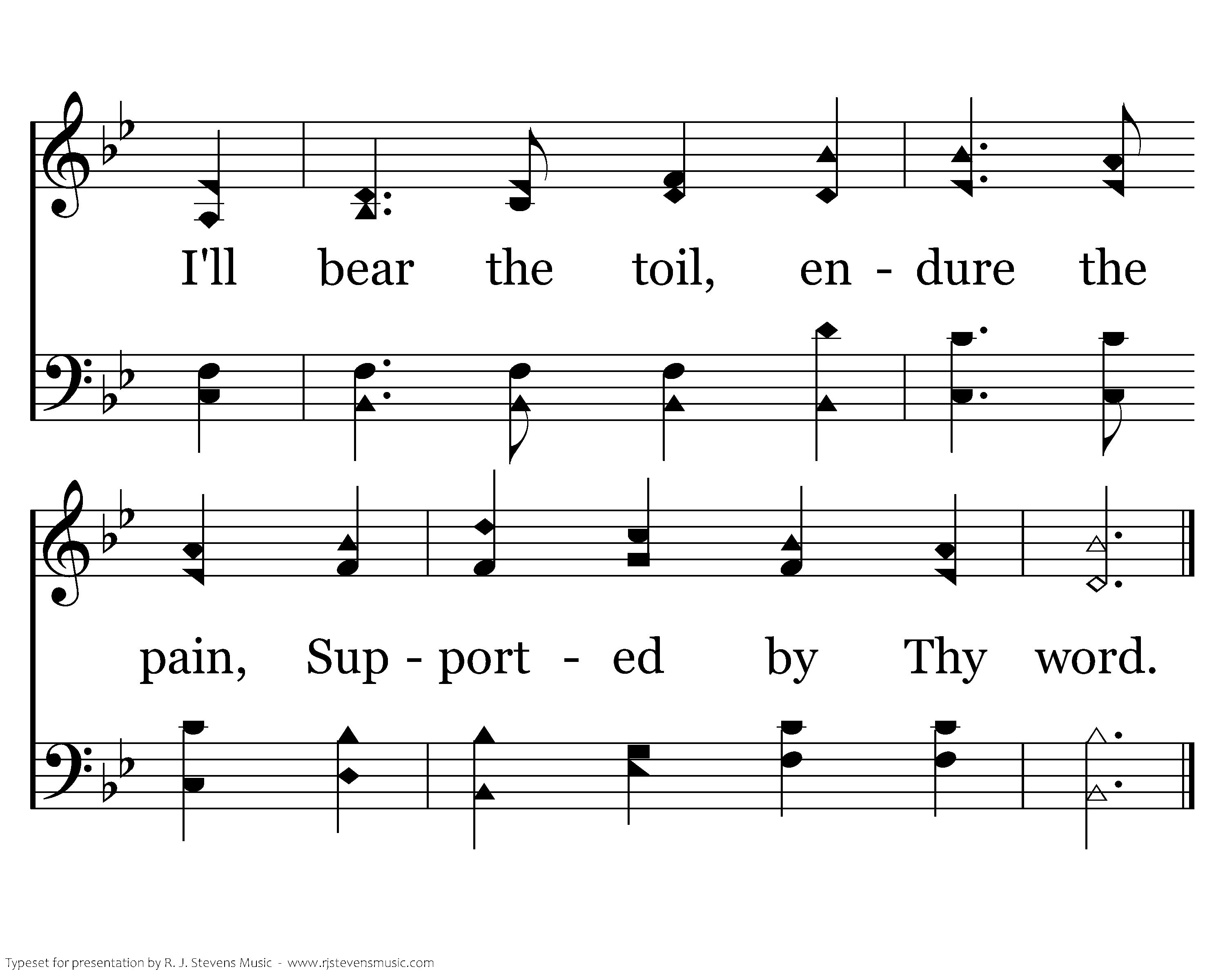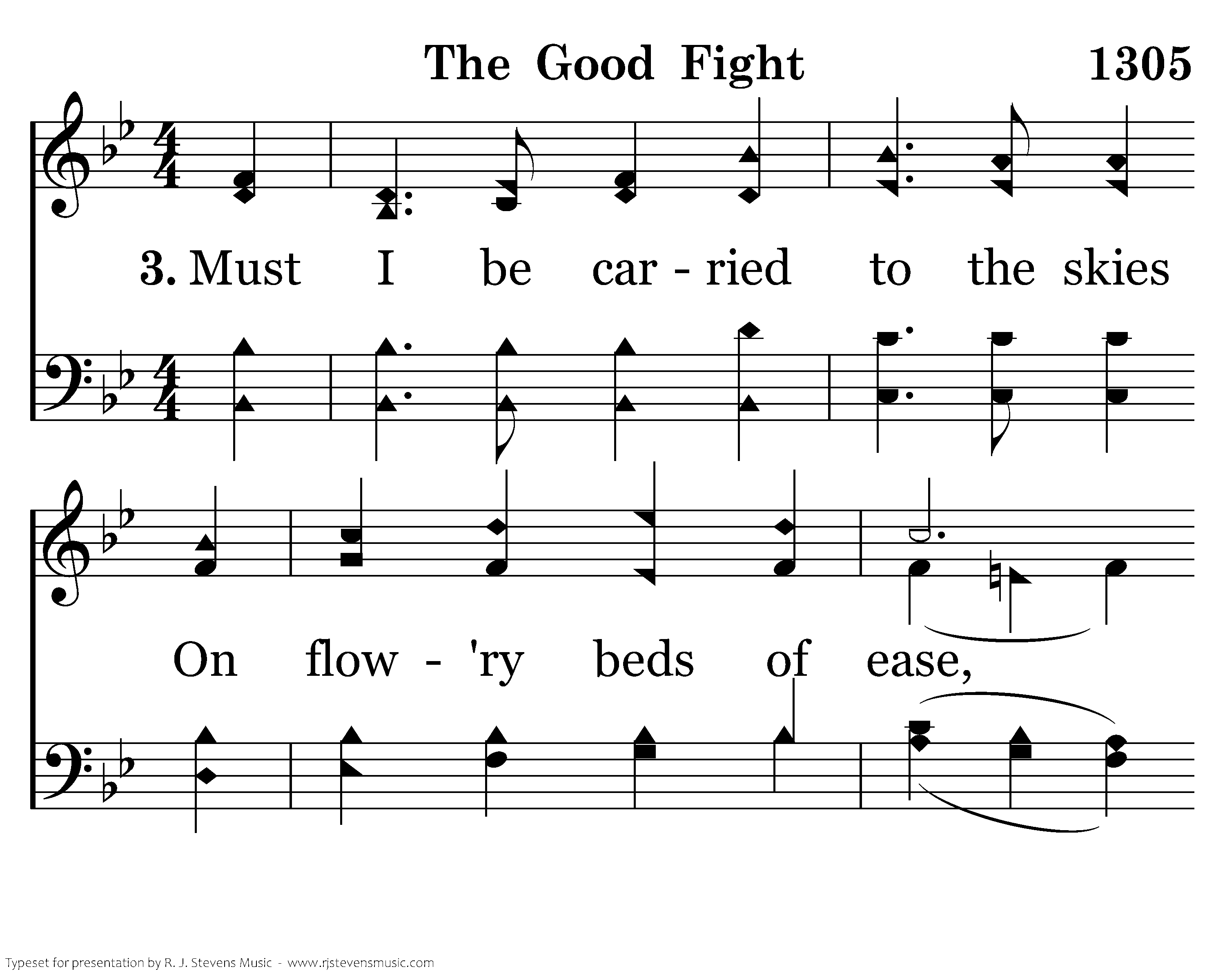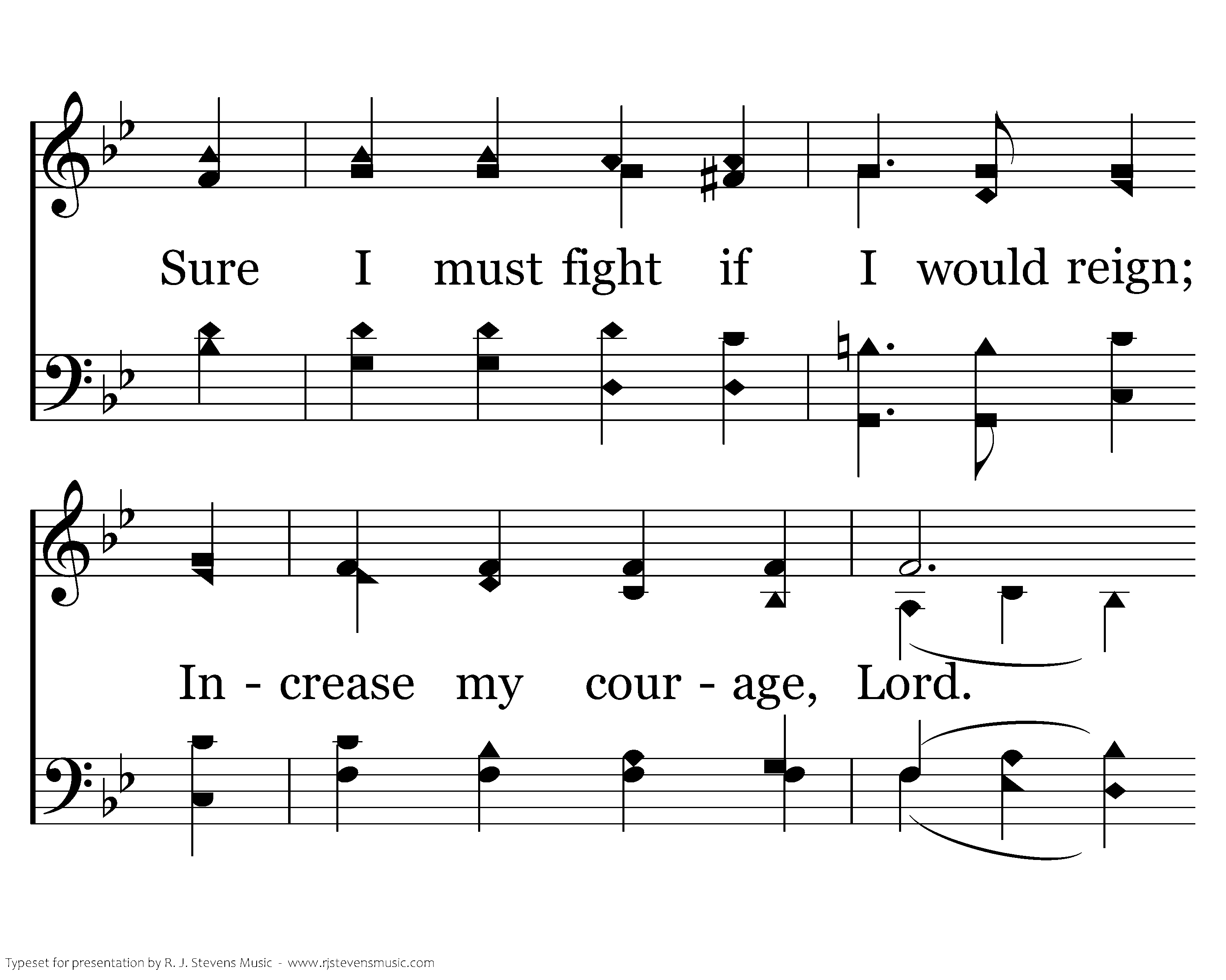 Must I be carried to the skies On flow'ry beds of ease, While others fought to win the prize And sailed thru bloody seas? Sure I must fight if I would reign; Increase my cour-age, Lord. I'll bear the toil, endure the pain, Supported by Thy word.