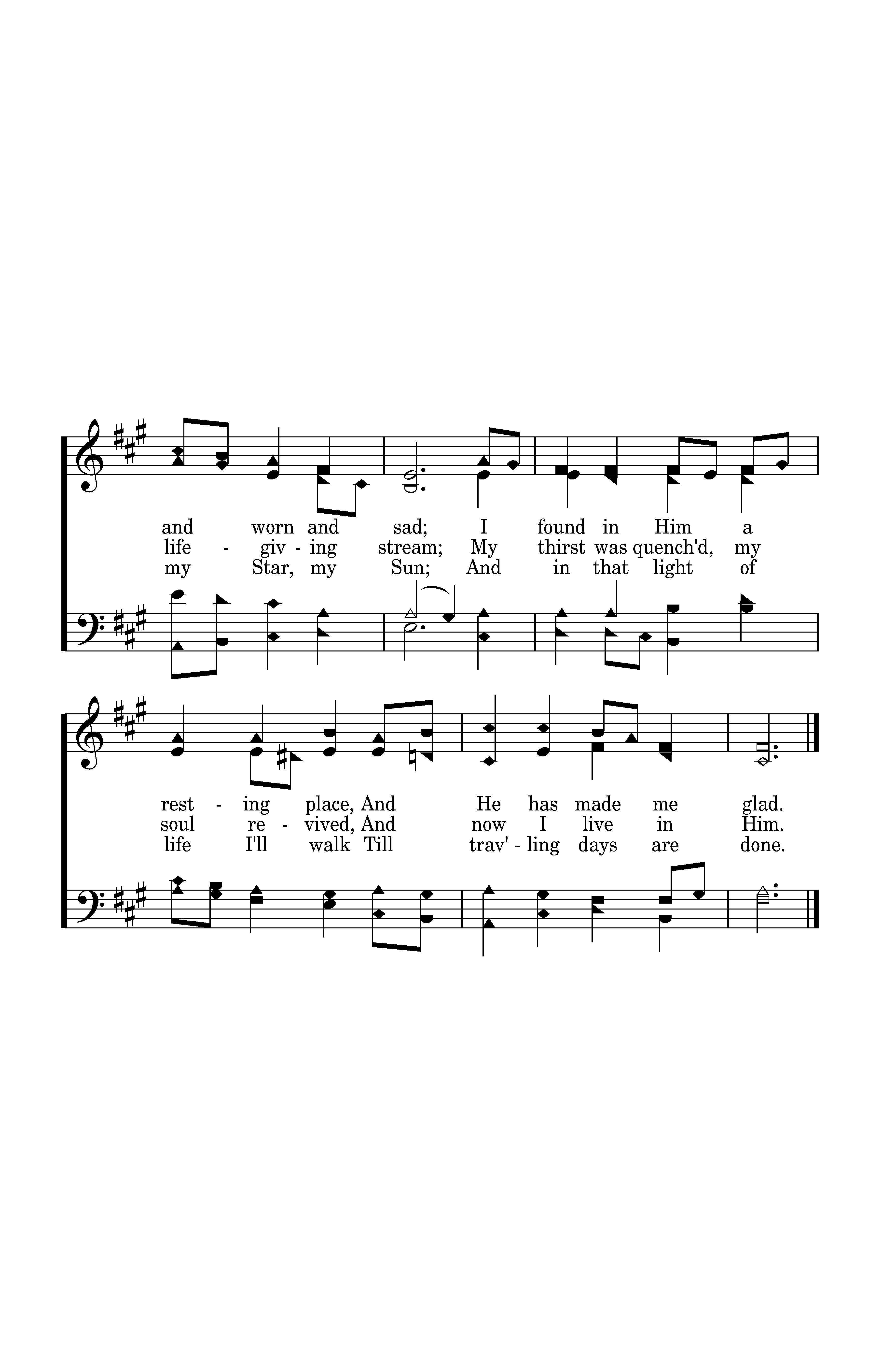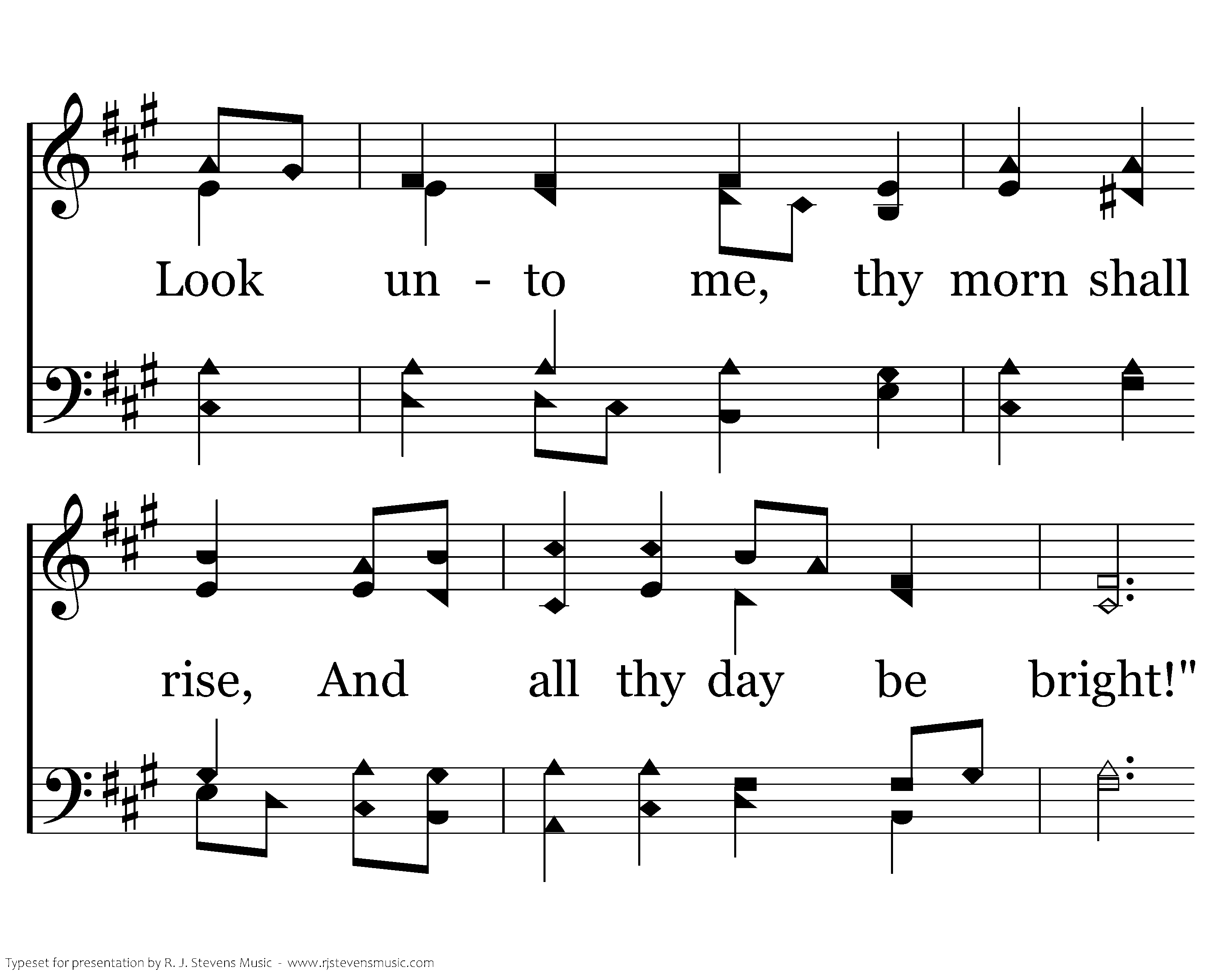 I heard the voice of Jesus say, "I am this dark world's light; Look unto me, thy morn shall rise, And all thy day be bright!" I looked to Jesus and I found In Him my Star, my Sun; And in that light of life I'll walk Till trav'ling days are done.
