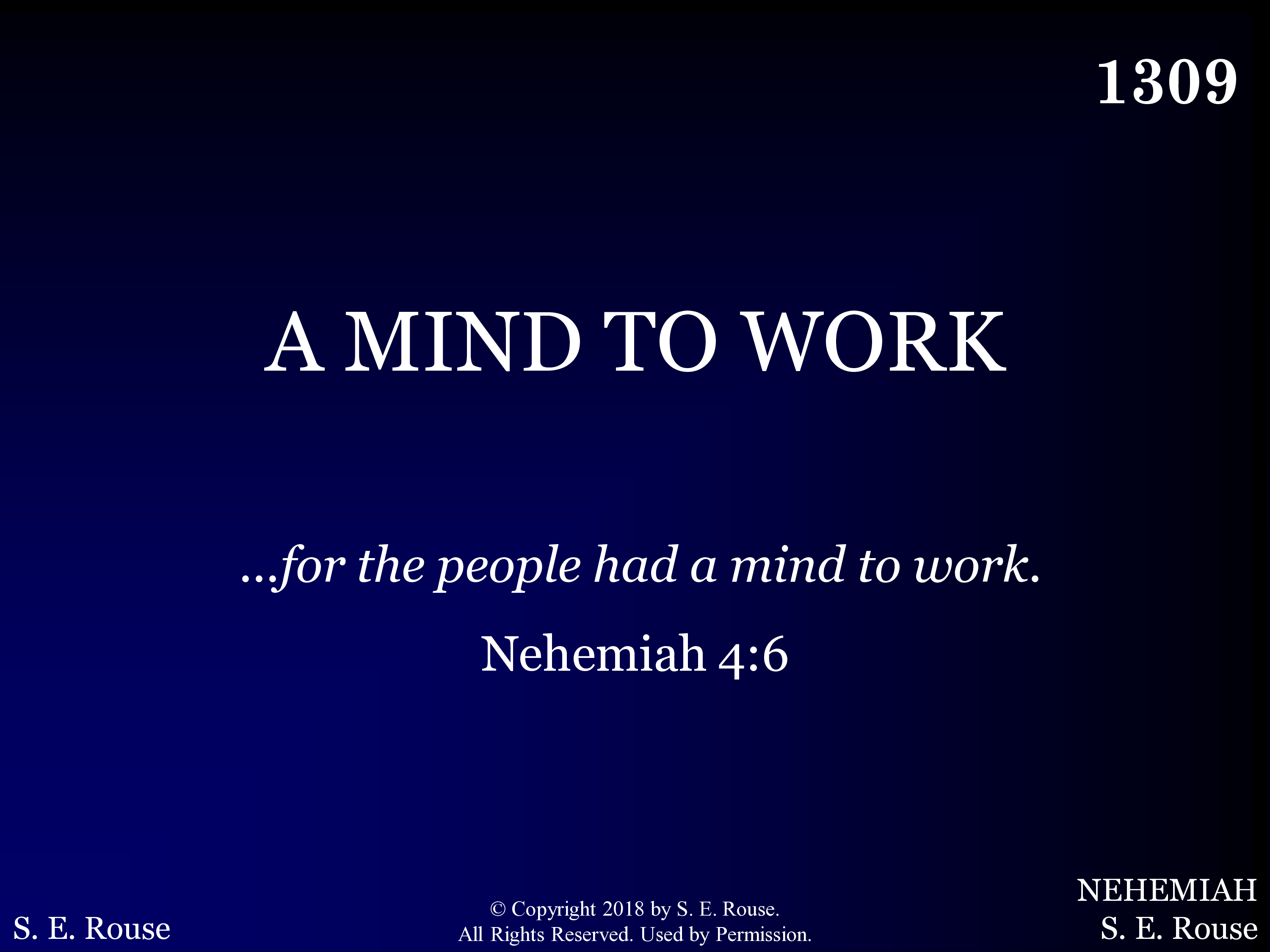 Lord, give us a mind to work, Our life spent in love for You; May we stay on guard And keep working hard, Until Your great work is through.