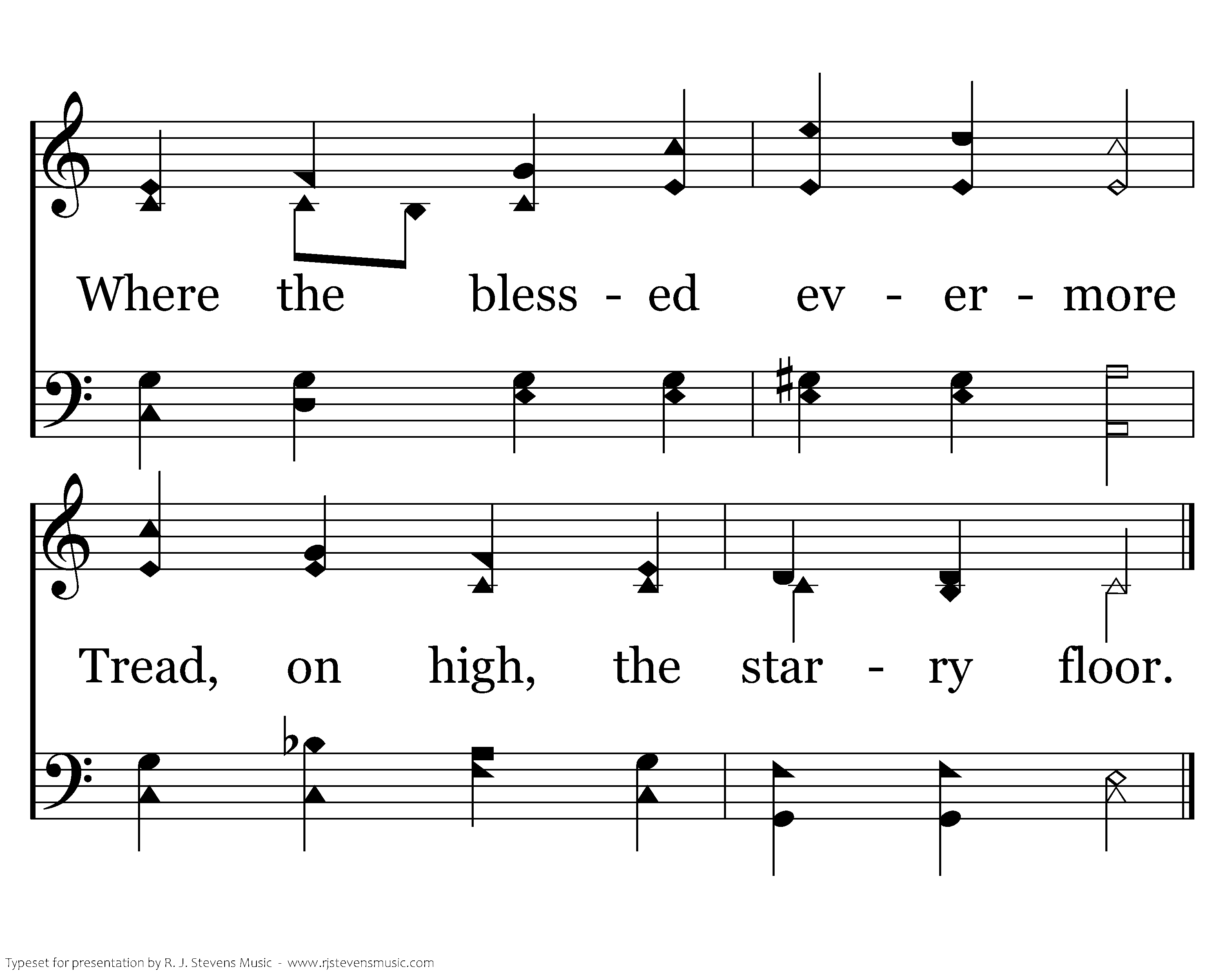 For the souls that overcome Waits the beauteous heav'nly home, Where the blessed evermore Tread, on high, the starry floor.
